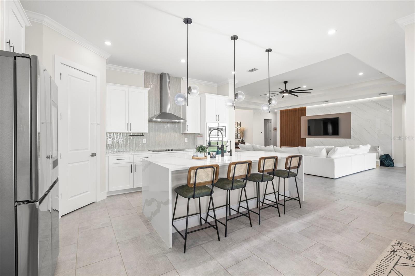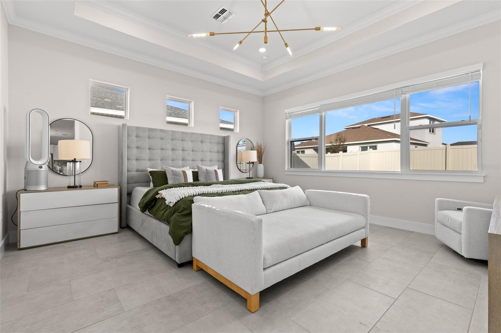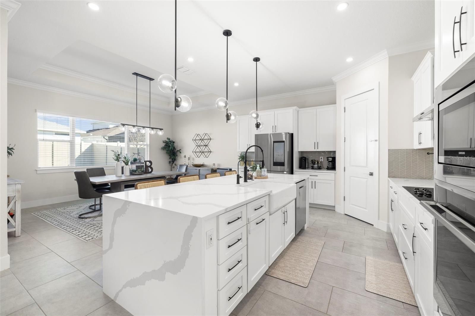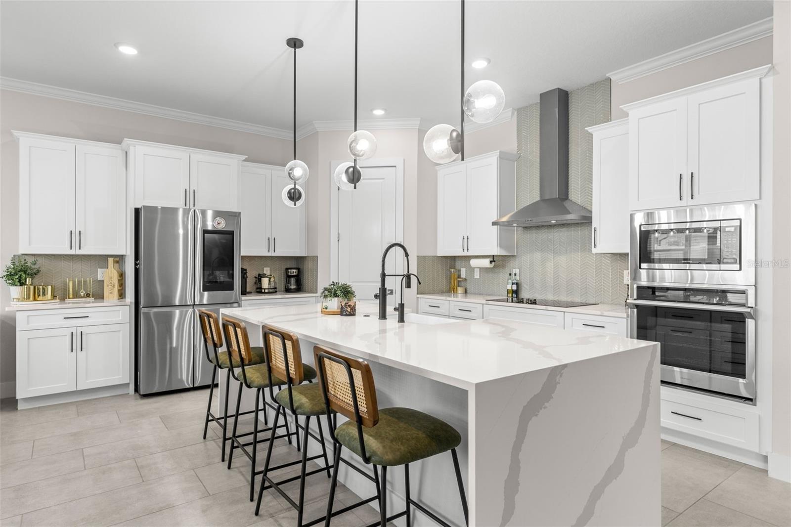 Welcome to this beautifully built, newer home located in the highly sought-after Epperson Lagoon community of Wesley Chapel. Boasting 4 spacious bedrooms, 3.5 luxurious baths, 3,214 square foot of living space, and a 3-car garage, this home is designed with upgraded modern finishes throughout, providing both style and comfort on a generous quarter-acre lot. As you enter, you’re immediately greeted by high ceilings and an open floor plan that seamlessly connects the living room, kitchen, and dining areas. The expansive living room features a custom accent wall that adds a wow factor to the space. Upon entering the living room, you'll discover an additional bonus room, currently set up as a home office, featuring custom built-in cabinets crafted from monkey pod wood imported from Puerto Rico. The chef's kitchen offers pristine quartz countertops, high-end stainless steel appliances, and a large island that opens up to the generous dining area. The master retreat is a true sanctuary, featuring dual walk-in closets, a luxurious soaking tub, and a walk-in shower with sleek finishes. One bedroom includes an en-suite bath, while two additional bedrooms are conveniently located next to a full shared bath. For added convenience, the home features a laundry room that connects directly to the two-car garage. The third garage space is currently being used as a home gym, and all materials for the gym can be included upon request. Step outside to enjoy the private fenced-in backyard, complete with a covered outdoor patio featuring stunning wood paneling from wall to ceiling —perfect for outdoor activities or simply relaxing in the Florida sunshine. The same wood paneling ceilings are located on the floor door entry way. Enjoy the convenience of being directly across the street from Eagle Park, which features a playground, dog park, community center, and extra parking just steps away. From your front door, you'll also have an unobstructed view of the lake and stunning sunsets. Residents of the Epperson community enjoy the benefits of an HOA that covers internet and cable, along with access to exclusive amenities, including the state-of-the-art lagoon—an incredible oasis just minutes from your doorstep. You’ll also find yourself within close proximity to local shops, restaurants, Publix, and more, making it easy to live, work, and play in one of the best areas of Wesley Chapel. This home offers the perfect blend of luxury, convenience, and community—don't miss the opportunity to make it yours! Contact us today for a tour.