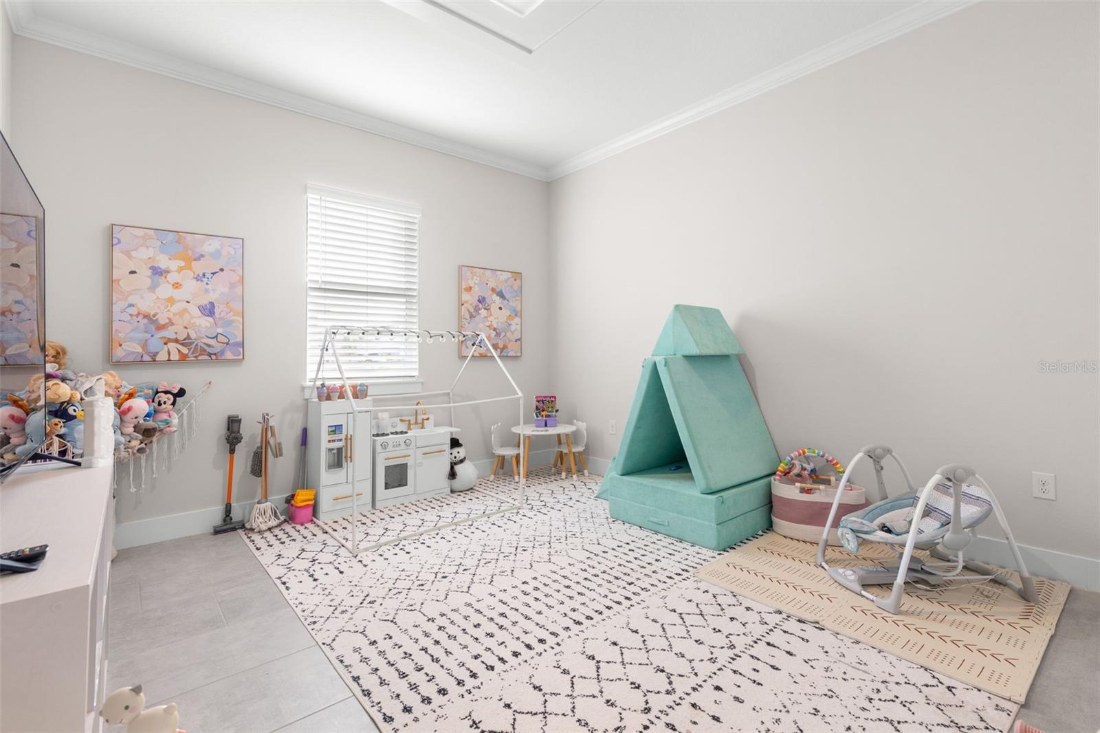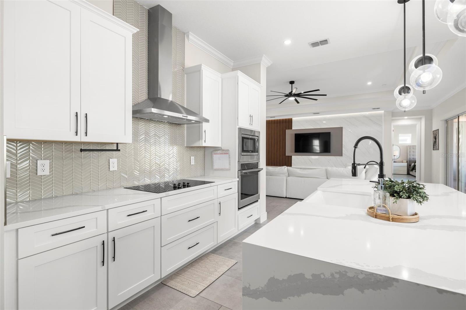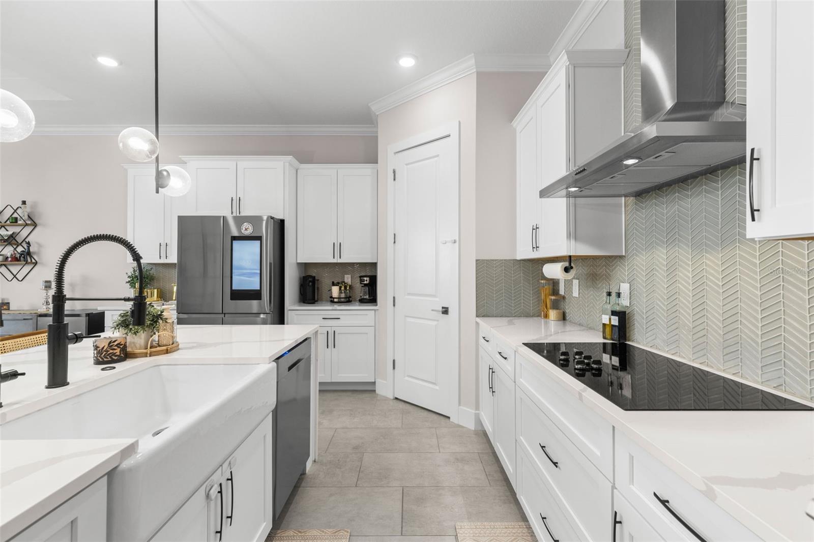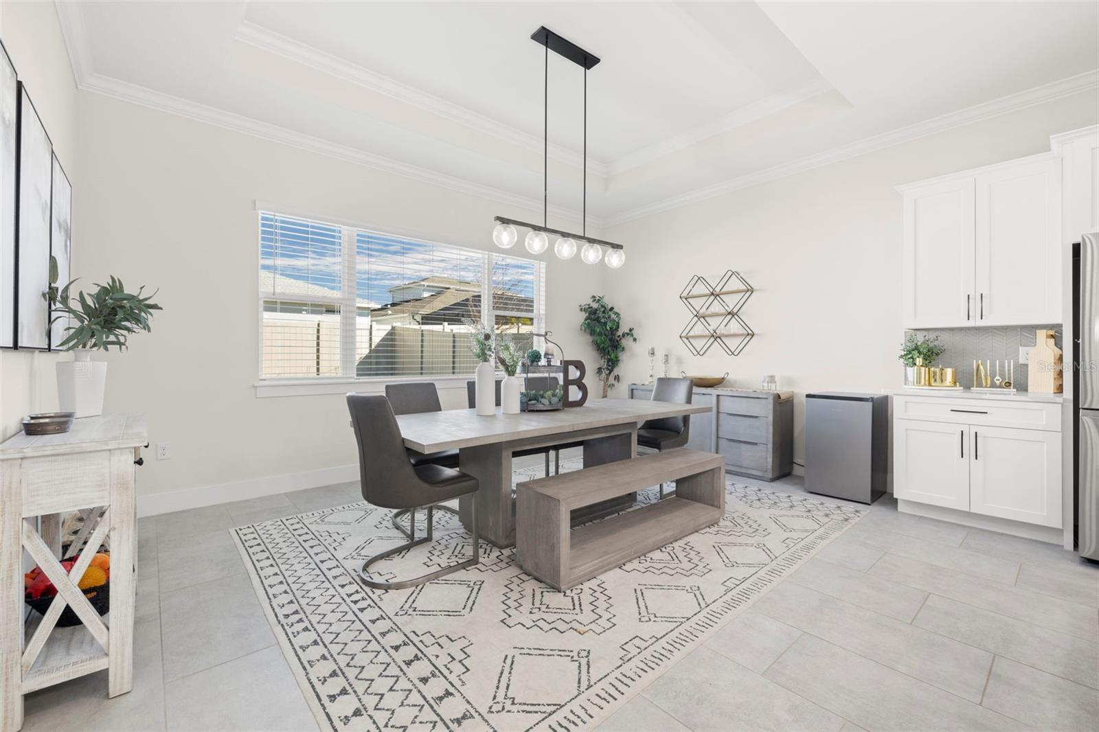 Welcome to this beautifully built, newer home located in the highly sought-after Epperson Lagoon community of Wesley Chapel. Boasting 4 spacious bedrooms, 3.5 luxurious baths, 3,214 square foot of living space, and a 3-car garage, this home is designed with upgraded modern finishes throughout, providing both style and comfort on a generous quarter-acre lot. As you enter, you’re immediately greeted by high ceilings and an open floor plan that seamlessly connects the living room, kitchen, and dining areas. The expansive living room features a custom accent wall that adds a wow factor to the space. Upon entering the living room, you'll discover an additional bonus room, currently set up as a home office, featuring custom built-in cabinets crafted from monkey pod wood imported from Puerto Rico. The chef's kitchen offers pristine quartz countertops, high-end stainless steel appliances, and a large island that opens up to the generous dining area. The master retreat is a true sanctuary, featuring dual walk-in closets, a luxurious soaking tub, and a walk-in shower with sleek finishes. One bedroom includes an en-suite bath, while two additional bedrooms are conveniently located next to a full shared bath. For added convenience, the home features a laundry room that connects directly to the two-car garage. The third garage space is currently being used as a home gym, and all materials for the gym can be included upon request. Step outside to enjoy the private fenced-in backyard, complete with a covered outdoor patio featuring stunning wood paneling from wall to ceiling —perfect for outdoor activities or simply relaxing in the Florida sunshine. The same wood paneling ceilings are located on the floor door entry way. Enjoy the convenience of being directly across the street from Eagle Park, which features a playground, dog park, community center, and extra parking just steps away. From your front door, you'll also have an unobstructed view of the lake and stunning sunsets. Residents of the Epperson community enjoy the benefits of an HOA that covers internet and cable, along with access to exclusive amenities, including the state-of-the-art lagoon—an incredible oasis just minutes from your doorstep. You’ll also find yourself within close proximity to local shops, restaurants, Publix, and more, making it easy to live, work, and play in one of the best areas of Wesley Chapel. This home offers the perfect blend of luxury, convenience, and community—don't miss the opportunity to make it yours! Contact us today for a tour.