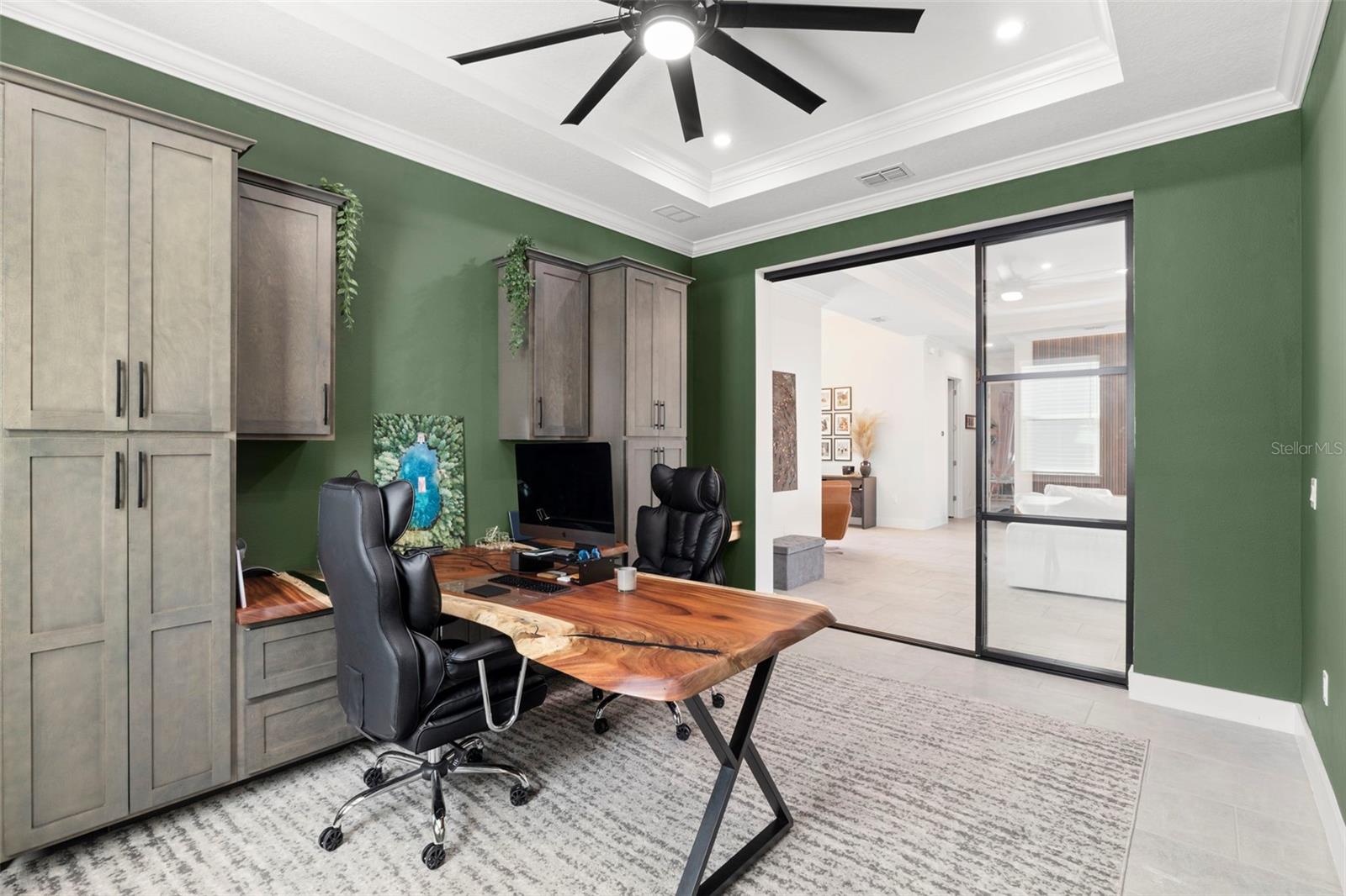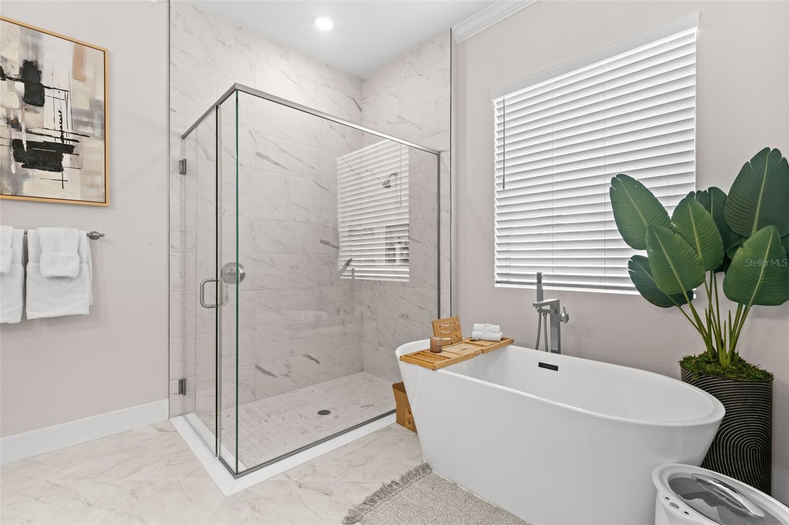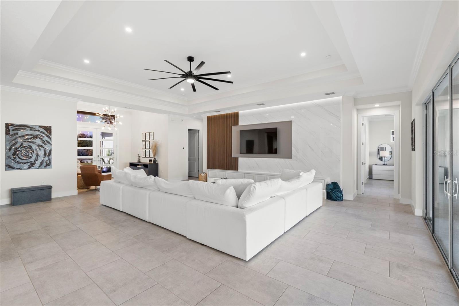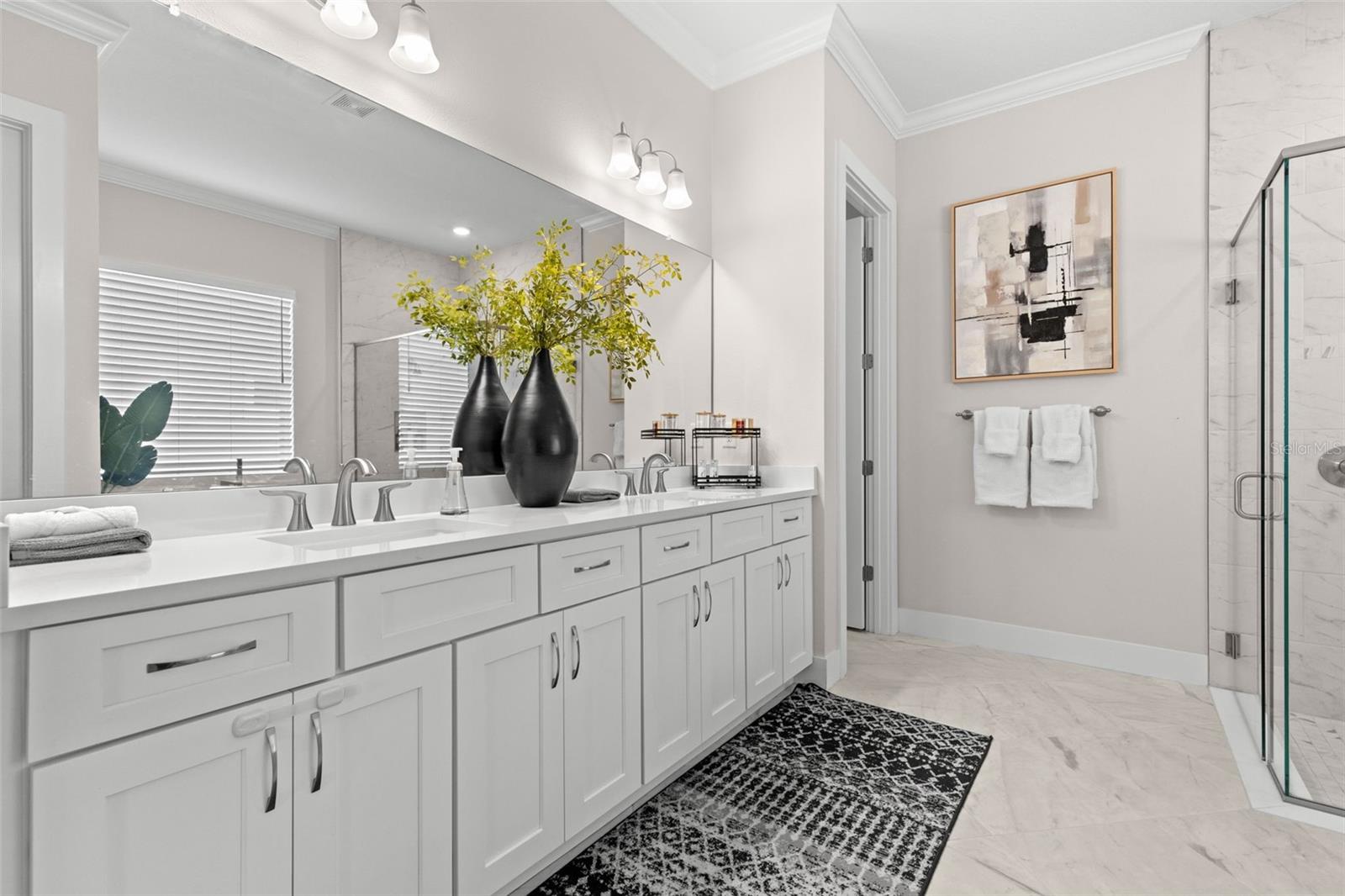 Welcome to this beautifully built, newer home located in the highly sought-after Epperson Lagoon community of Wesley Chapel. Boasting 4 spacious bedrooms, 3.5 luxurious baths, 3,214 square foot of living space, and a 3-car garage, this home is designed with upgraded modern finishes throughout, providing both style and comfort on a generous quarter-acre lot. As you enter, you’re immediately greeted by high ceilings and an open floor plan that seamlessly connects the living room, kitchen, and dining areas. The expansive living room features a custom accent wall that adds a wow factor to the space. Upon entering the living room, you'll discover an additional bonus room, currently set up as a home office, featuring custom built-in cabinets crafted from monkey pod wood imported from Puerto Rico. The chef's kitchen offers pristine quartz countertops, high-end stainless steel appliances, and a large island that opens up to the generous dining area. The master retreat is a true sanctuary, featuring dual walk-in closets, a luxurious soaking tub, and a walk-in shower with sleek finishes. One bedroom includes an en-suite bath, while two additional bedrooms are conveniently located next to a full shared bath. For added convenience, the home features a laundry room that connects directly to the two-car garage. The third garage space is currently being used as a home gym, and all materials for the gym can be included upon request. Step outside to enjoy the private fenced-in backyard, complete with a covered outdoor patio featuring stunning wood paneling from wall to ceiling —perfect for outdoor activities or simply relaxing in the Florida sunshine. The same wood paneling ceilings are located on the floor door entry way. Enjoy the convenience of being directly across the street from Eagle Park, which features a playground, dog park, community center, and extra parking just steps away. From your front door, you'll also have an unobstructed view of the lake and stunning sunsets. Residents of the Epperson community enjoy the benefits of an HOA that covers internet and cable, along with access to exclusive amenities, including the state-of-the-art lagoon—an incredible oasis just minutes from your doorstep. You’ll also find yourself within close proximity to local shops, restaurants, Publix, and more, making it easy to live, work, and play in one of the best areas of Wesley Chapel. This home offers the perfect blend of luxury, convenience, and community—don't miss the opportunity to make it yours! Contact us today for a tour.