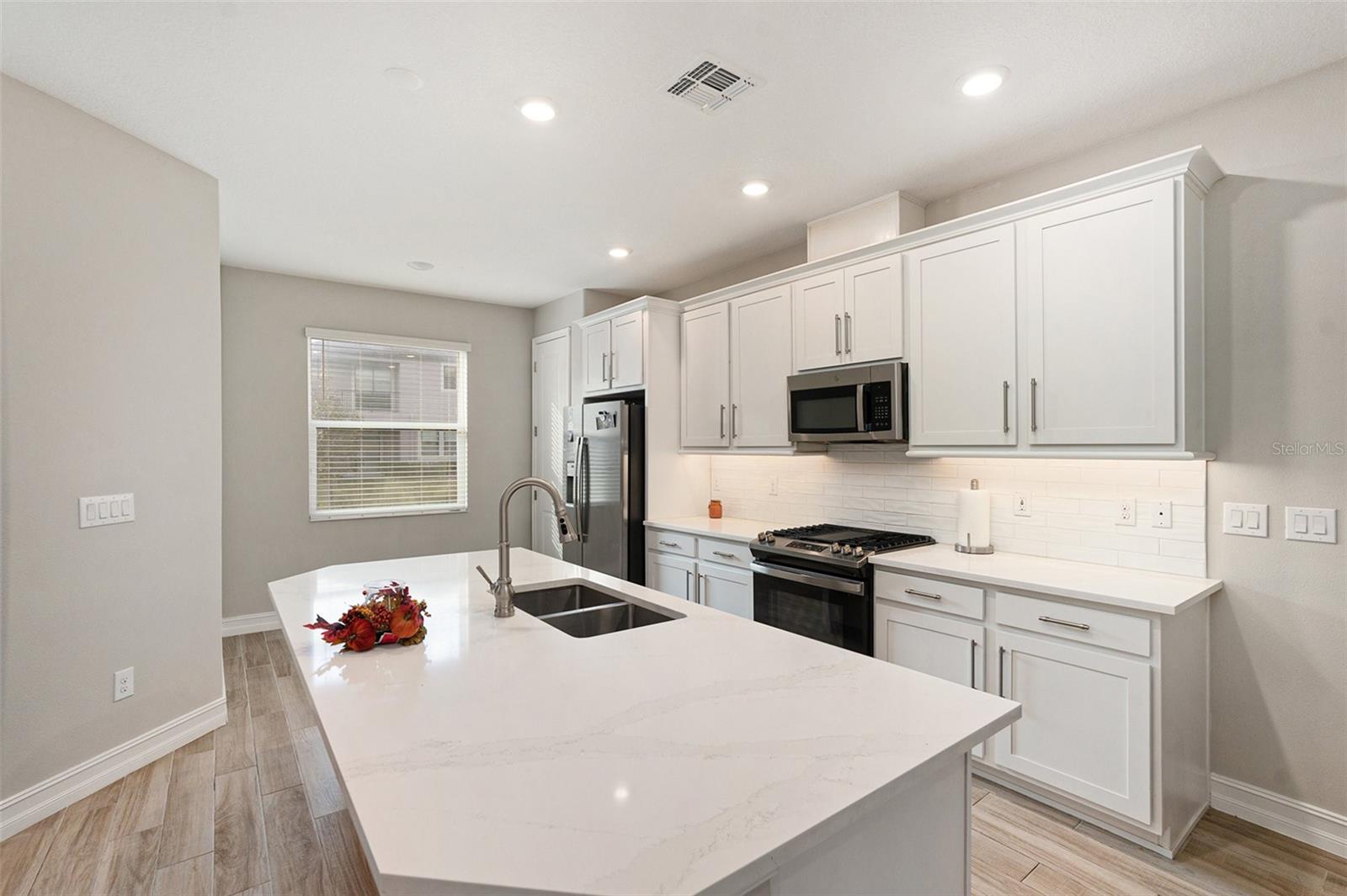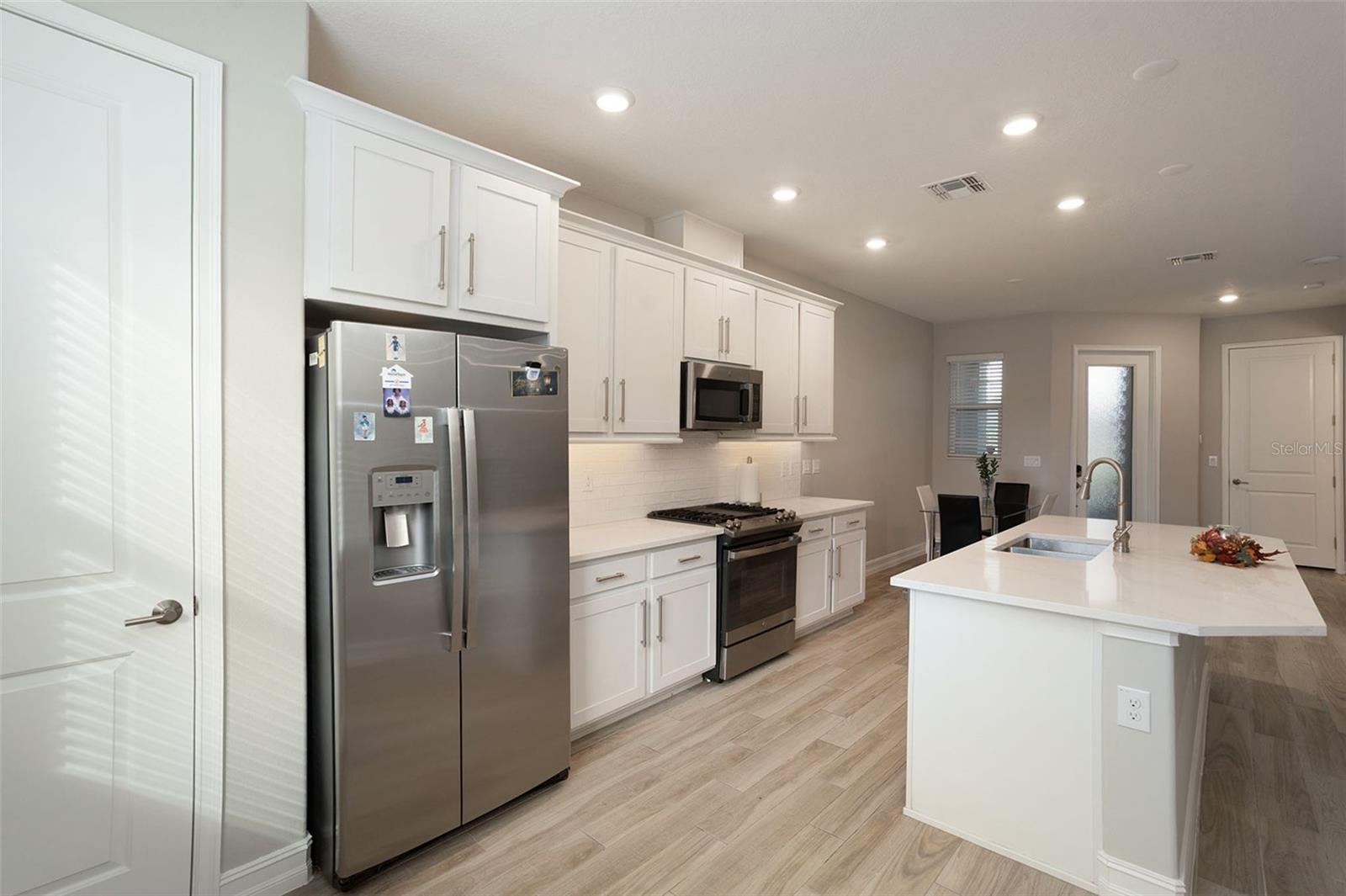 This beautiful two-level townhome, nestled in the desirable Estancia at Wiregrass community in Wesley Chapel, FL with its spacious, modern finishes and functional living design is a must see! Welcome Home to 3 spacious bedrooms, 2-1/2 bathrooms, flexible loft, two car garage/w storage, and covered lanai. The open-concept design is perfect for comfortable living and entertaining. The kitchen boasts quartz counters, cushion-close cabinets & drawers, stainless steel appliances including a gas cooktop/range and pantry. These are just some of the features that create a perfect setting for entertaining and meal prep. High ceilings, recessed lighting, and abundant natural light enhance the inviting ambiance throughout. Sliding doors open to the covered lanai creating the perfect place to enjoy outdoor living in Florida. Stone accents and a paver driveway with additional parking complement the architectural style of the home. The Primary Bedroom offers an ensuite with spa like designer finishes including a fully tiled shower with glass doors, dual vanities, private water closet and a huge walk-in closet. Two other bedrooms, a hall bath as well as large laundry room are on the second floor. Maintenance free living with the exterior painting, roof reserves, landscaping, irrigation water and garbage removal provided through the low monthly HOA, make this home even more appealing. Smart home features include thermostat control, security and access features as well as an on-demand tankless water heater. Epoxy flooring in the garage adds a nice touch to the home. Estancia at Wiregrass, is an amenity rich community with a zero entry, resort style heated pool with lap lanes and tower slide, a fitness center, parks, trails, Clubhouse with events, Tennis, Basketball and Pickel ball courts, playground, dog park and 11 miles of walking trails. The neighborhood is zoned for top-rated schools with bus transportation available. Conveniently located just minutes from top medical professionals and hospitals. Premier retail and dining options at The Shops at Wiregrass and Tampa Premium Outlets are just minutes away. Just 30 minutes from Downtown Tampa, the location offers suburban tranquility with convenient access to I-75 and Florida’s premier Gulf beaches, Disney World and all that Central Florida has available. Estancia at Wiregrass Sortino Townhomes have the perfect blend of lifestyle living for families, professionals, or anyone looking to enjoy the best of everything in Wesley Chapel! High ceilings, recessed lighting, and abundant natural light enhance the inviting ambiance throughout. Located in Estancia at Wiregrass, an amenity-rich community featuring a resort-style heated pool, fitness center, parks, trails, sports courts (Basket-ball, Tennis and Pickleball), a dog park, and 11 miles of walking trails. Zoned for top-rated schools with bus service available, this home is minutes from top medical providers and hospital facilities. As well as Premier shopping & Dining at The Shops at Wiregrass, and Tampa Premium Outlets. With its access to I-75 and conveniently located just 30 minutes from Downtown Tampa and close to Gulf beaches, Disney World, and more, this townhome offers the perfect balance of suburban tranquility and city access. Schedule your private tour today to experience the best of Wesley Chapel living!