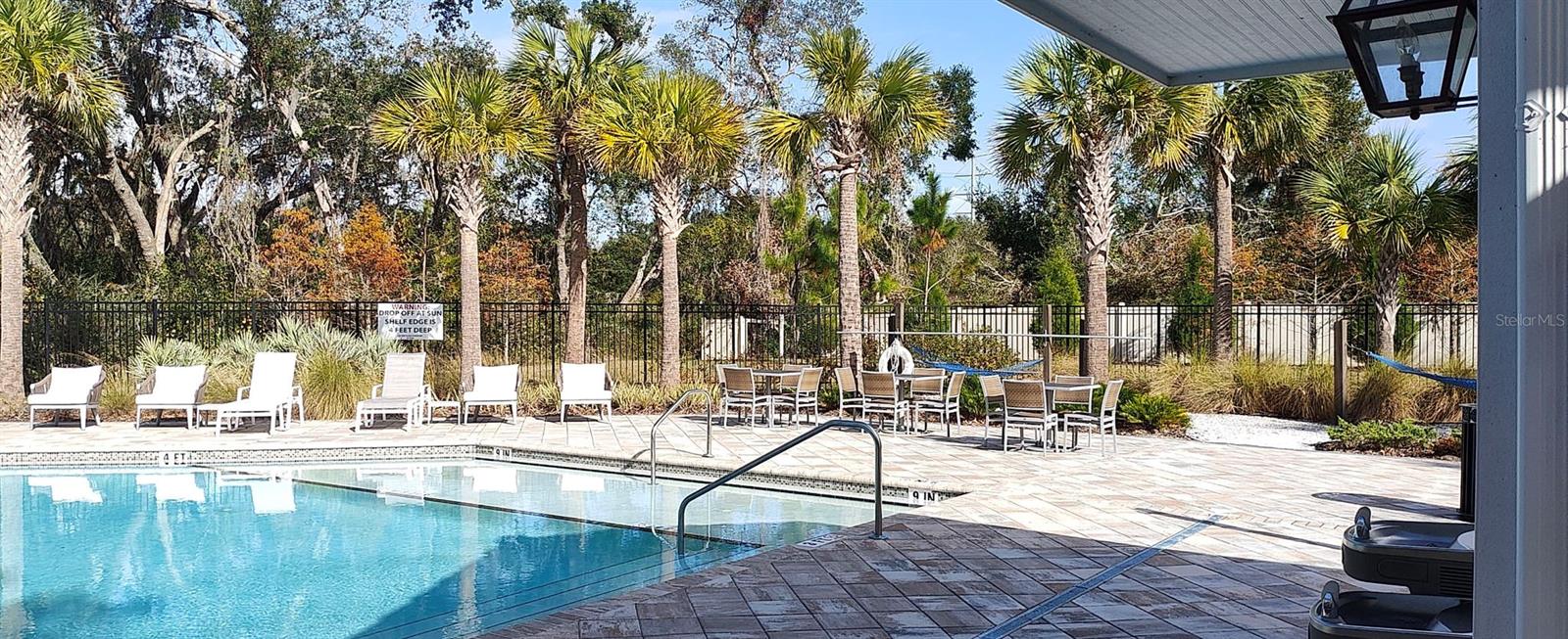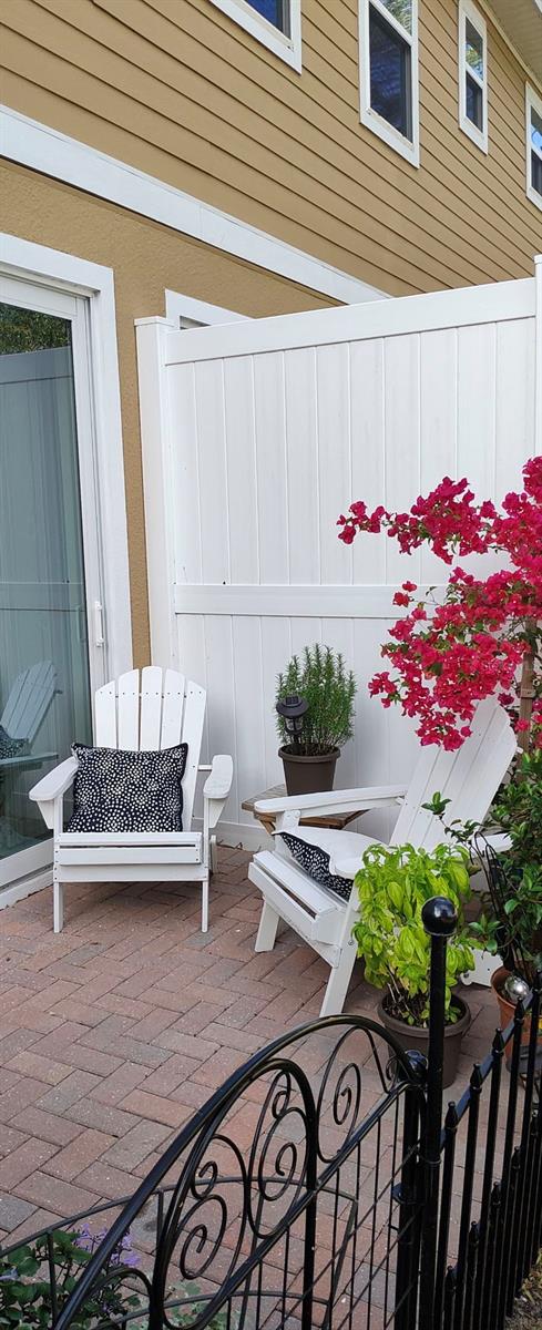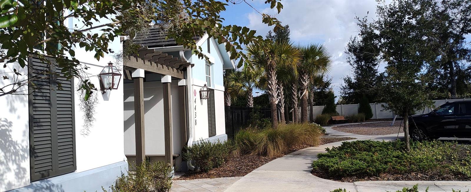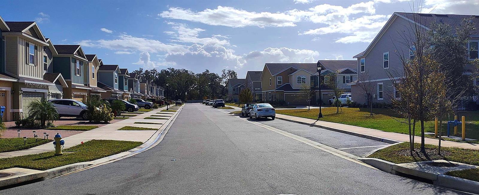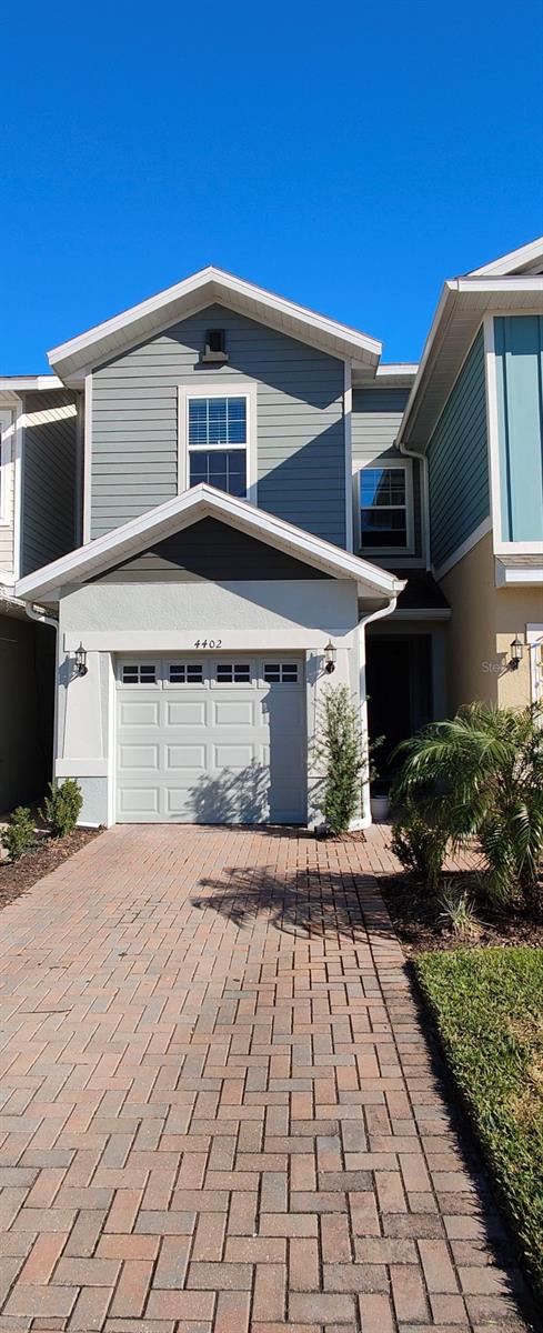 Park Square Homes built Windrush Townhomes. This unit has a Large floorplan and private entrance to your front door, it feels like a single-family home: Private Front Entrance- Not Shared. 3 Bedrooms and 2.5 Bathrooms with one oversized Garage, and the guest bedrooms upstairs give privacy from the master. Front foyer leading to wide and open great room with 17" light tile throughout lower level. Upgrades include the Master bedroom and closet with Lifeproof waterproof laminate wood plank floors, a new custom Zen-like shower, light switches on dimmers. New ceiling fans in Living room and bedrooms. This home is like new and the property appraiser's website says it was built in 2023. The back door has a large 8-foot sliding door that leads to the back patio with brick pavers and landscaped views. The open kitchen plan has granite and white shaker-style cabinets 42" uppers. 9.4" ceilings, and a spacious floor plan. Paver Driveway and walkway to the front door. Trane HVAC. Attic upstairs. No flood Zone X zone, per the County, No CDD, On Cul-de-sac, No rear Neighbor, $131.14 month HOA, Master planned community with Lots of extra Parking Spaces a playground & Amazing Pool, just a few steps away. Curtains do not convey. Keyless entry.