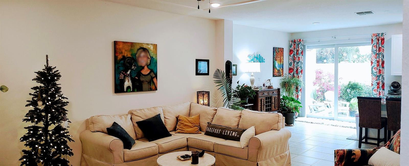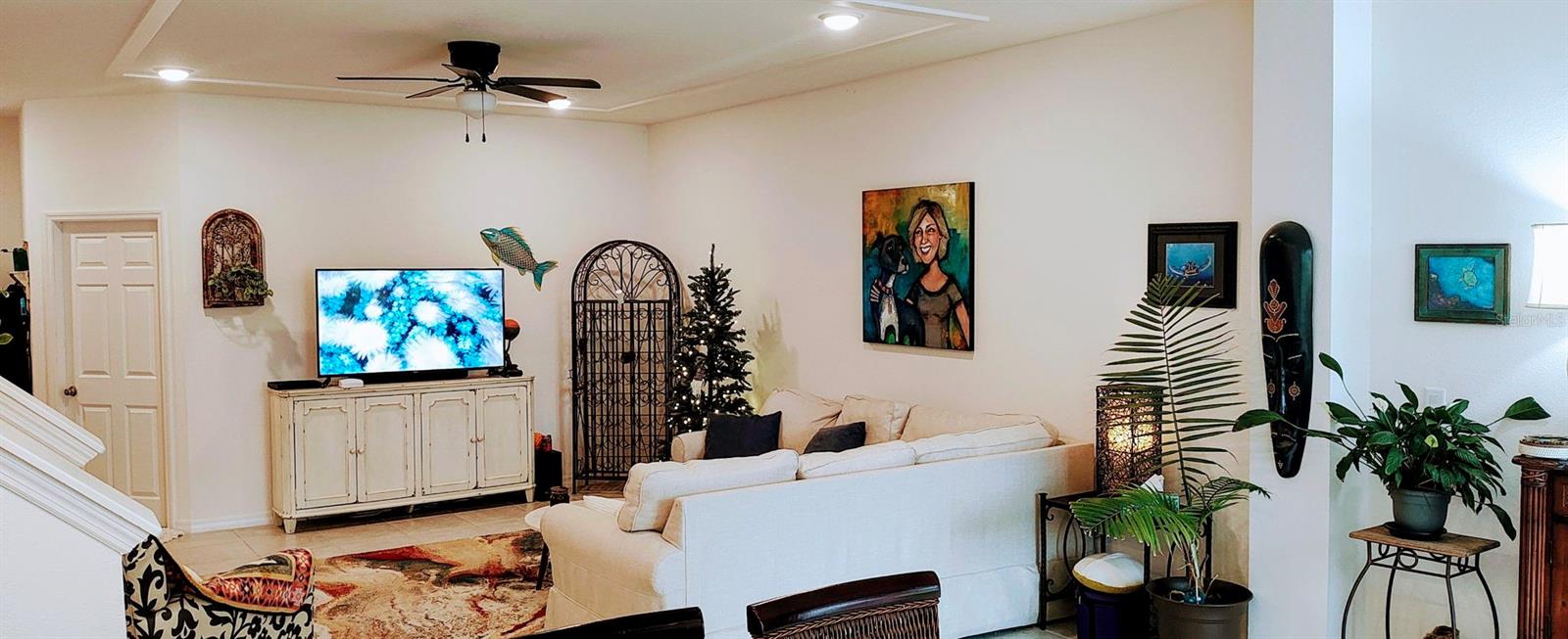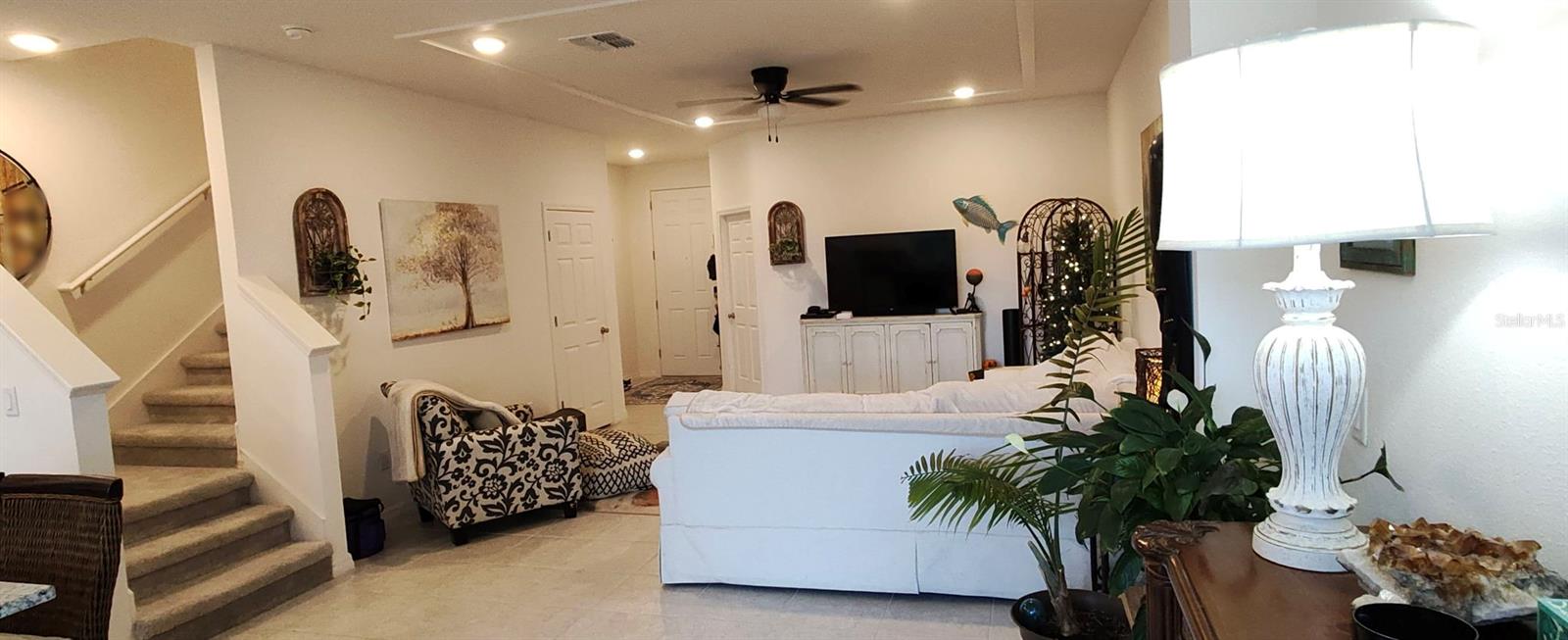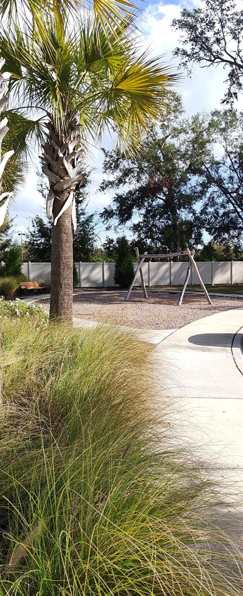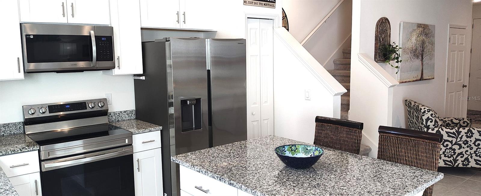 Park Square Homes built Windrush Townhomes. This unit has a Large floorplan and private entrance to your front door, it feels like a single-family home: Private Front Entrance- Not Shared. 3 Bedrooms and 2.5 Bathrooms with one oversized Garage, and the guest bedrooms upstairs give privacy from the master. Front foyer leading to wide and open great room with 17" light tile throughout lower level. Upgrades include the Master bedroom and closet with Lifeproof waterproof laminate wood plank floors, a new custom Zen-like shower, light switches on dimmers. New ceiling fans in Living room and bedrooms. This home is like new and the property appraiser's website says it was built in 2023. The back door has a large 8-foot sliding door that leads to the back patio with brick pavers and landscaped views. The open kitchen plan has granite and white shaker-style cabinets 42" uppers. 9.4" ceilings, and a spacious floor plan. Paver Driveway and walkway to the front door. Trane HVAC. Attic upstairs. No flood Zone X zone, per the County, No CDD, On Cul-de-sac, No rear Neighbor, $131.14 month HOA, Master planned community with Lots of extra Parking Spaces a playground & Amazing Pool, just a few steps away. Curtains do not convey. Keyless entry.