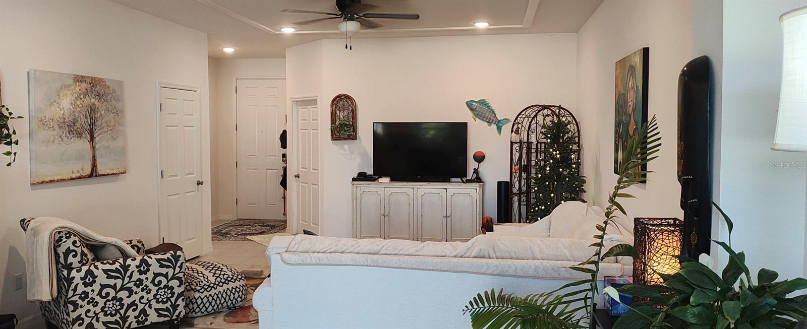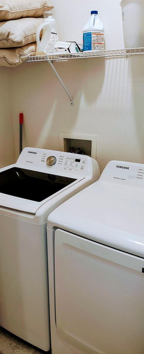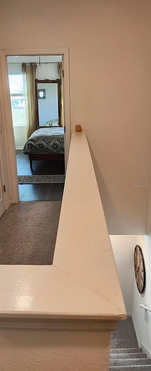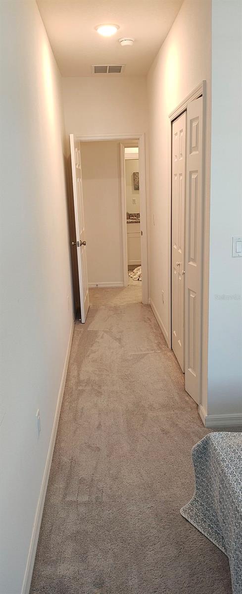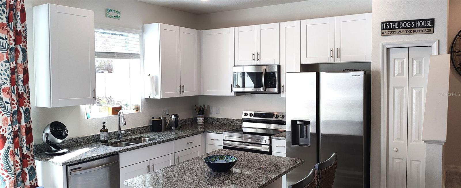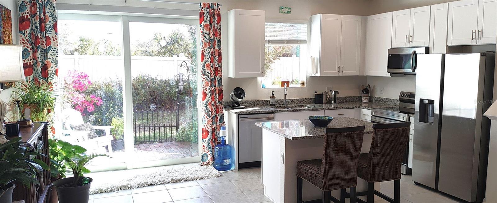 Park Square Homes built Windrush Townhomes. This unit has a Large floorplan and private entrance to your front door, it feels like a single-family home: Private Front Entrance- Not Shared. 3 Bedrooms and 2.5 Bathrooms with one oversized Garage, and the guest bedrooms upstairs give privacy from the master. Front foyer leading to wide and open great room with 17" light tile throughout lower level. Upgrades include the Master bedroom and closet with Lifeproof waterproof laminate wood plank floors, a new custom Zen-like shower, light switches on dimmers. New ceiling fans in Living room and bedrooms. This home is like new and the property appraiser's website says it was built in 2023. The back door has a large 8-foot sliding door that leads to the back patio with brick pavers and landscaped views. The open kitchen plan has granite and white shaker-style cabinets 42" uppers. 9.4" ceilings, and a spacious floor plan. Paver Driveway and walkway to the front door. Trane HVAC. Attic upstairs. No flood Zone X zone, per the County, No CDD, On Cul-de-sac, No rear Neighbor, $131.14 month HOA, Master planned community with Lots of extra Parking Spaces a playground & Amazing Pool, just a few steps away. Curtains do not convey. Keyless entry.