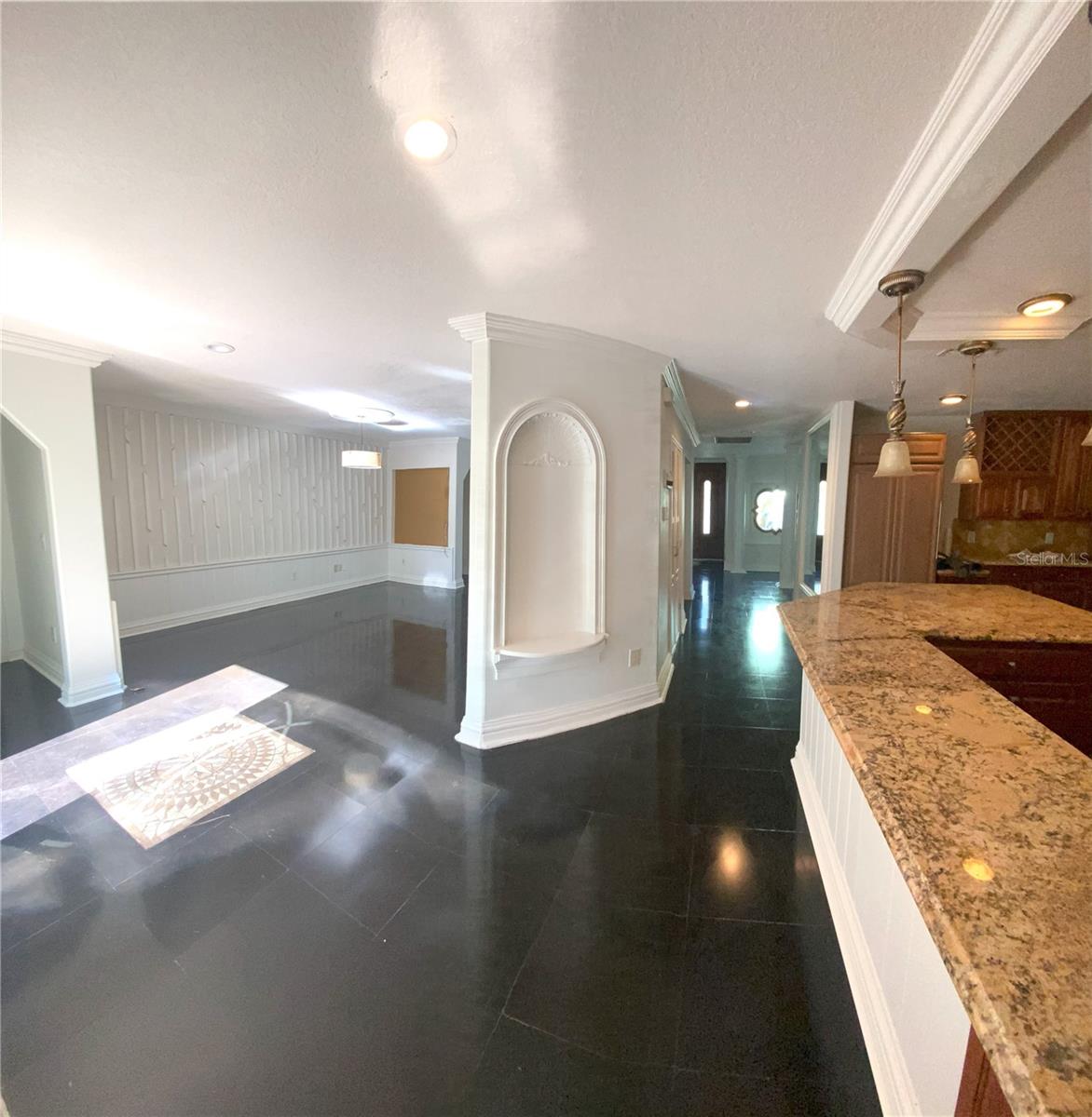 Welcome to your new home in the highly sought community of Quail Hollow Estates. This home has a tile roof and wrought iron fencing. NO HOA and NO CDD! This beautiful single story home features 4 bedrooms, 3 full baths, large back porch with outdoor kitchen with built in grill, and ample backyard space! As you enter the home, you are greeted by a beautiful doorway with a nice sized foyer. The living room is perfectly located in the front of the home along with a generous dining room. There is a separate large family room in the rear, perfectly situated to host any large gathering. The kitchen is the heart of the home and features a large peninsula. The kitchen has plenty of cabinet space and pendant lighting. The large owner’s retreat offers privacy, crown molding, and a tray ceiling and is located off the dining room. There are three additional bedrooms, one of which has it's own bathroom and can be considered a second master. You will enjoy the beautiful stone floors throughout the home. That's not all- this home has a large bonus room that is ready to be utilized as a bedroom, game-room, or in-law suite... the potential is endless. Centrally located with close access to the Tampa Premium Outlet Mall, The Grove of Wesley Chapel, Wiregrass Mall, restaurants, and medical and sports facilities. Easy access to I-275 and I-75 for an easy commute. Access to great public and private schools throughout the area. Orlando within 90 minutes with beaches even closer. Do not miss out on owning this home. Book your showing today! Buyer concession available with contract.