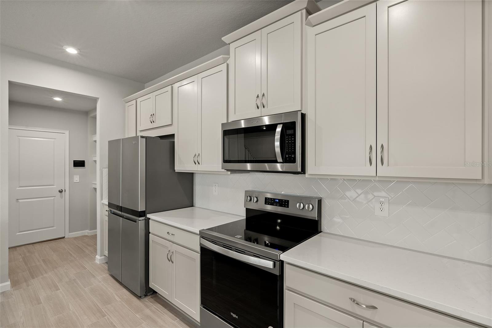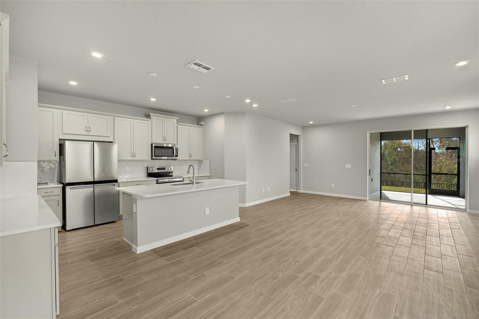 Ready Now! The Award-Winning Venice townhome with a Craftsman exterior design lives like a single-family home. This impressive two-story townhome is 2,574 square feet with 4 bedrooms, 3 baths, and a 2-car garage. This home offers a bedroom on the first level, adjacent to a full bath with a step-in shower. The Venice offers a designer kitchen with abundant cabinet space and a center island. The cabinets are upgraded throughout and include brushed nickel cabinet hardware. This home has quartz countertops color matched to flow with the design features and comes with stainless-steel appliances, including the refrigerator. First-floor common areas are upgraded with wood plank tile flooring. The Dining Area and Great Room naturally flow together and the sliding glass door leads out to the lanai that is completely screened in to invite frequent outdoor living. Upstairs, an amazingly spacious loft is versatile and can be used as your second living space, media room, or play area. The Owner's Bath has been designed with a Super Shower, and a must-see walk-in closet. Two secondary bedrooms share a full bath and feature walk-in closets. A Smart Home Tech package includes an Ecobe Thermostat, Clare Video Door Bell and Touchscreen home panel. The location of this Chapel Crossings community is just a short drive to the local Publix, Home Depot, and Wire Grass or Tampa Premium Outlet Mall. The local public schools for this community will be New River Elementary, Thomas E. Weightman Middle and Wesley Chapel High School as well as local private schools. As for amenities, this community boast a clubhouse and fitness center, pickle ball courts, playground, dog park, and a resort style pool and lazy river! Photos, renderings and plans are for illustrative purposes only and should never be relied upon and may vary from the actual home. Pricing, dimensions and features can change at any time without notice or obligation. The photos are from the home offered for sale.