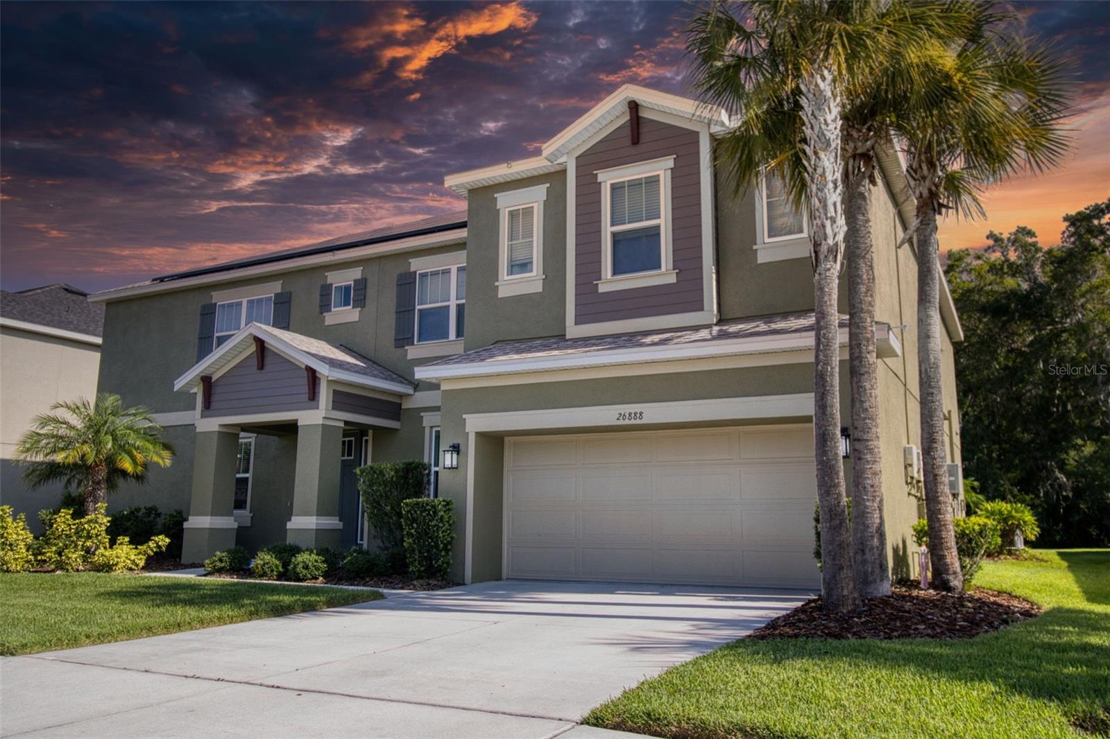 Come see this beautiful 6 Bedroom, 4 Bath Home in Spectacular ARBOR WOODS! Arbor Woods is a gated community with very low HOA fees and NO CDD fee. The 4,830 square foot home sits on an AMAZING LOT that is right on the preserve that backs to the Florida wildlife corridor. It has a true FOREST behind it! The forest is protected by Southwest Florida Water Management and cannot be built on. You will routinely see deer and turkey come through the backyard. Zoned for HIGHLY-RATED SCHOOLS - Denham Oaks Elementary, John D. Long Middle, & Wiregrass Ranch High School. The house features TWO TRUE MASTER SUITES, one on each floor - perfect for multi-generational living. There are four spacious secondary bedrooms with great closet space. Home is Perfect for a large family! Upstairs you'll find a 800 square foot LOFT/GAME ROOM, plus a MEDIA ROOM, OFFICE, and Bedrooms. Every bathroom has their own dedicated linen closet. The Luxurious Kitchen has double ovens, a 36 inch induction cooktop, under cabinet lighting, plus an insane amount of cabinet and counter space for all of your culinary masterpieces. The great room overlooks the forest with a 3-pocket sliding glass door. An extended covered lanai (49x10 feet) perfect for relaxing in the tranquility of the forest. Do not worry about power outages because the house comes with a 11.34 kW solar panel system and 3 power walls. The community during the last hurricane was without power for 4.5 days, except for this truly extraordinary home. The unique setup provided both power and internet during the hurricanes/community power loss of 2024. Unlike most nearby neighborhoods, Arbor Woods does not have to worry about flooding because of the master community layout has proper drainage, which protects from major flooding. Owner does not carry flood insurance and has very low homeower insurance of approximately $2800/year (through State Farm). Very close proximity to major shopping and hospitals, yet only 2 lights to the interstate. Truly a wonderful location - it's doubtful you'll find a comparable home. Come see this one-of-a-kind home before it’s gone. Arbor Woods has luxurious pool w/kitchenette for grilling, community playground, & an extended private nature trail. 5.999% Par Interest Rate Available with Seller buying down the interest rate!