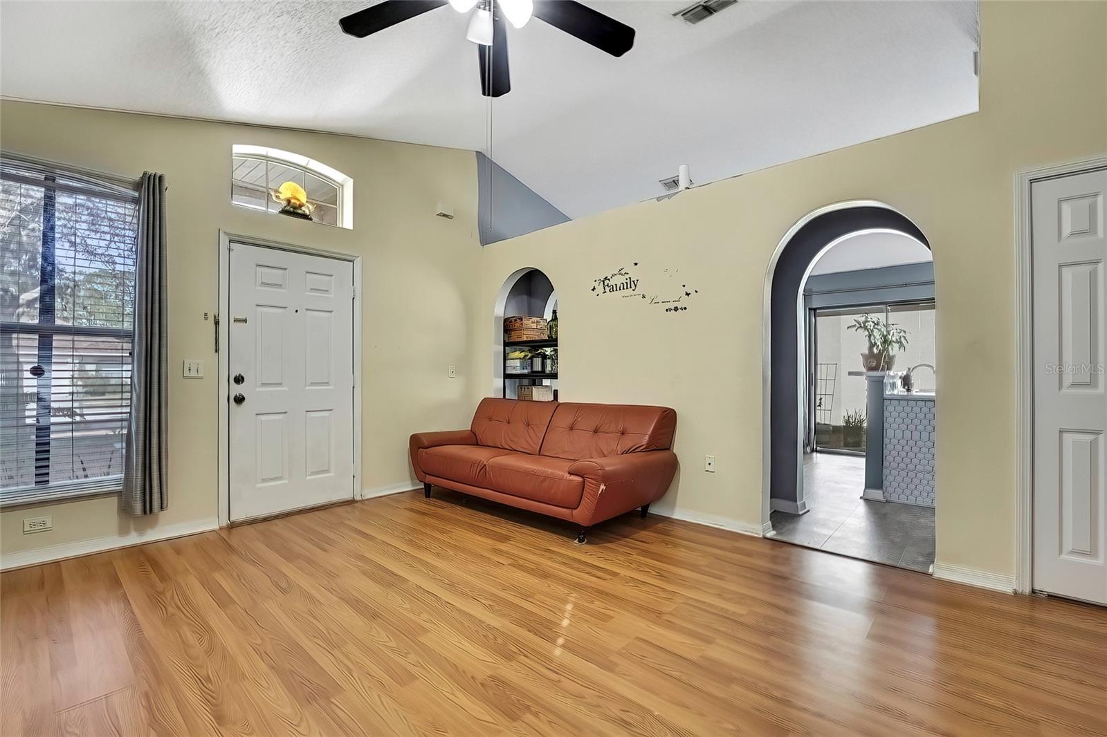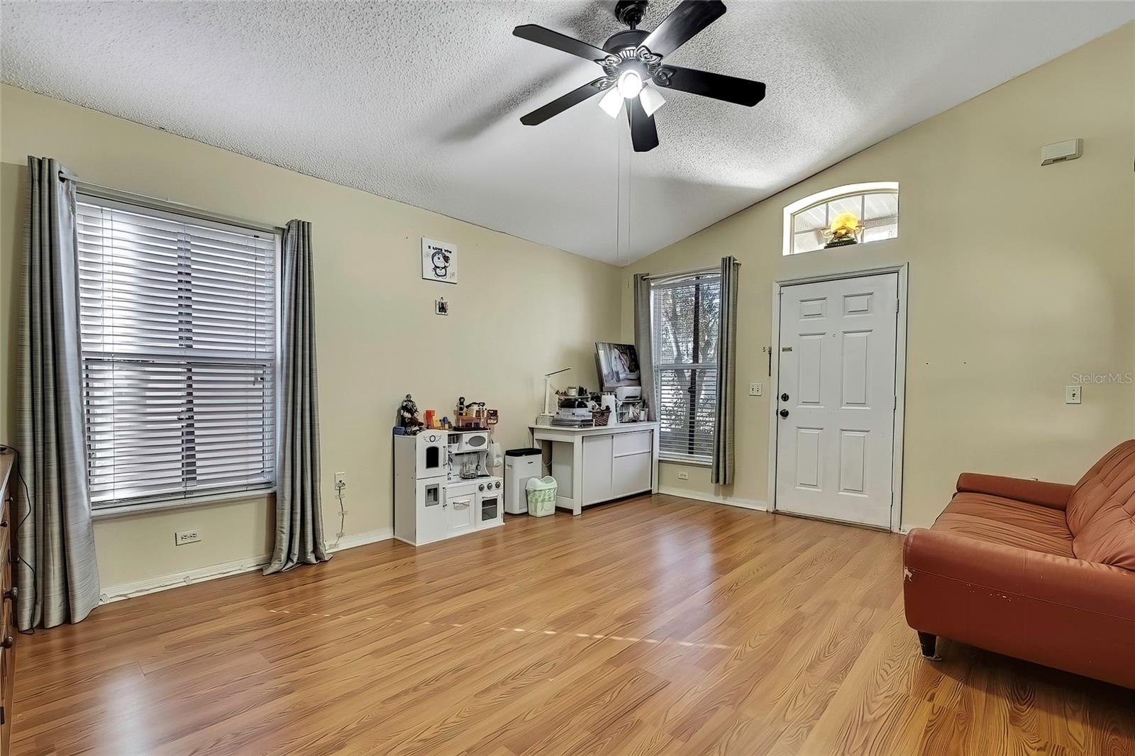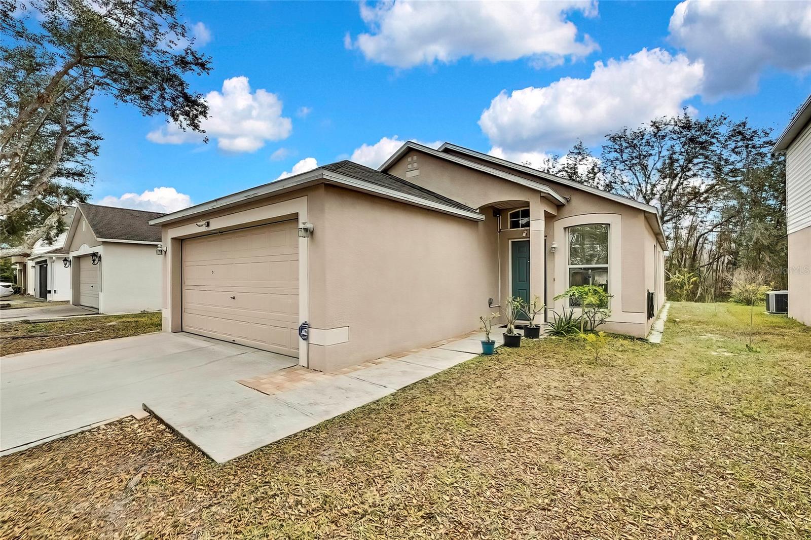 Chapel Pines in Wesley Chapel provides an exceptional opportunity to experience the area's thriving community at an unbeatable price, making it an ideal choice for budget-conscious homebuyers. Wesley Chapel, a rapidly growing suburb celebrated for its modern amenities, top-rated schools, and vibrant atmosphere—this charming 3-bedroom, 2 bath home offers both comfort and convenience. Spanning 1,158 square feet of living space, this residence boasts NO Carpet, NEWER Roof (2018), and NEWER A/C (2018) for peace of mind! As you approach, the front-facing two-car garage with elegant coach lights leads you to a welcoming portico entrance with a transom window. Inside, laminate flooring flows throughout the living areas, enhancing the home's appeal. From the spacious living room, pass through archways to the kitchen and bedrooms. The kitchen features a breakfast bar, pantry, and an inviting dining space, while sliding glass doors open to the rear patio and backyard with an abundance of fruit trees and offers a tranquil wooded view. Down the hallway, a utility closet with washer and dryer hookups adds convenience. The primary bedroom features a deep standard closet, private sliding doors to the backyard, and an ensuite bath with a vanity and shower. Two additional spacious bedrooms come with ceiling fans and built-in closets, providing ample storage. Enjoy NO CDD fees and LOW HOA, all while being 3 minutes from the NEW Publix (2024), minutes from Walmart Supercenter, Wiregrass Mall, Tampa Premium Outlets, KRATE at The Grove, Epperson Lagoon Water Park, ice skating rinks, cinemas, hospitals, medical facilities, and world-class dining. Just five minutes away, Wesley Chapel District Park offers 143 acres of recreation, including athletic fields, a playground, tennis and basketball courts, picnic areas, a fitness trail, and a scenic fishing pond. With easy access to I-75, commuting to downtown Tampa, MacDill AFB, St. Pete, Gulf beaches, and even Orlando’s theme parks (just 1.5 hours away) are a breeze. Don’t miss this opportunity—schedule your showing today and start making memories in your new home!