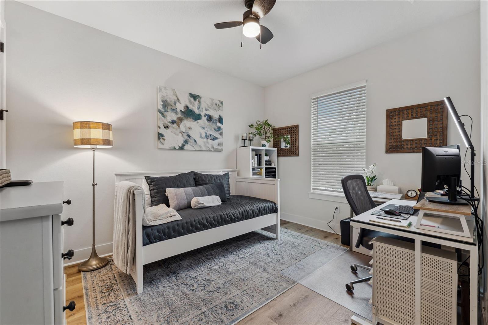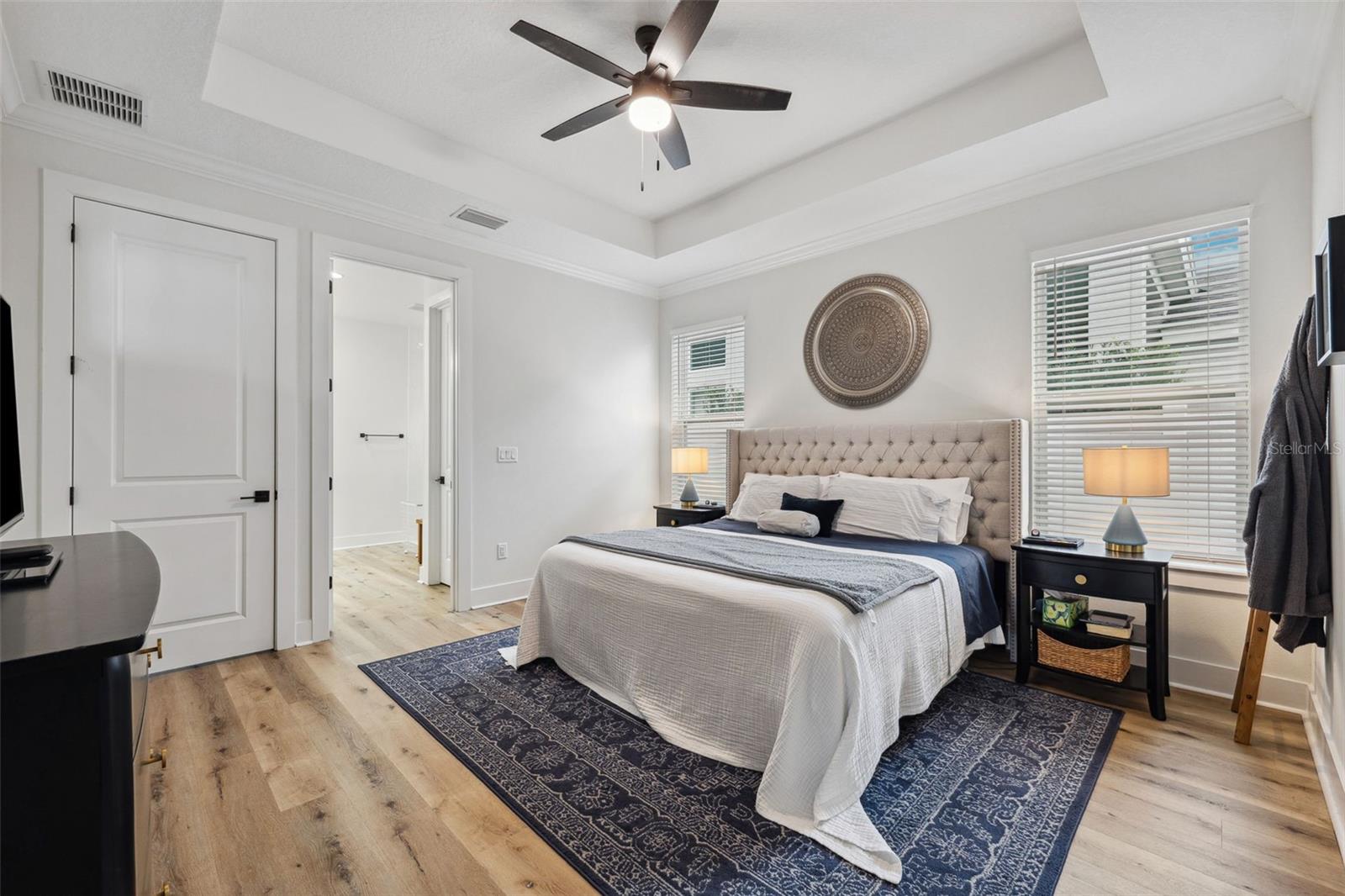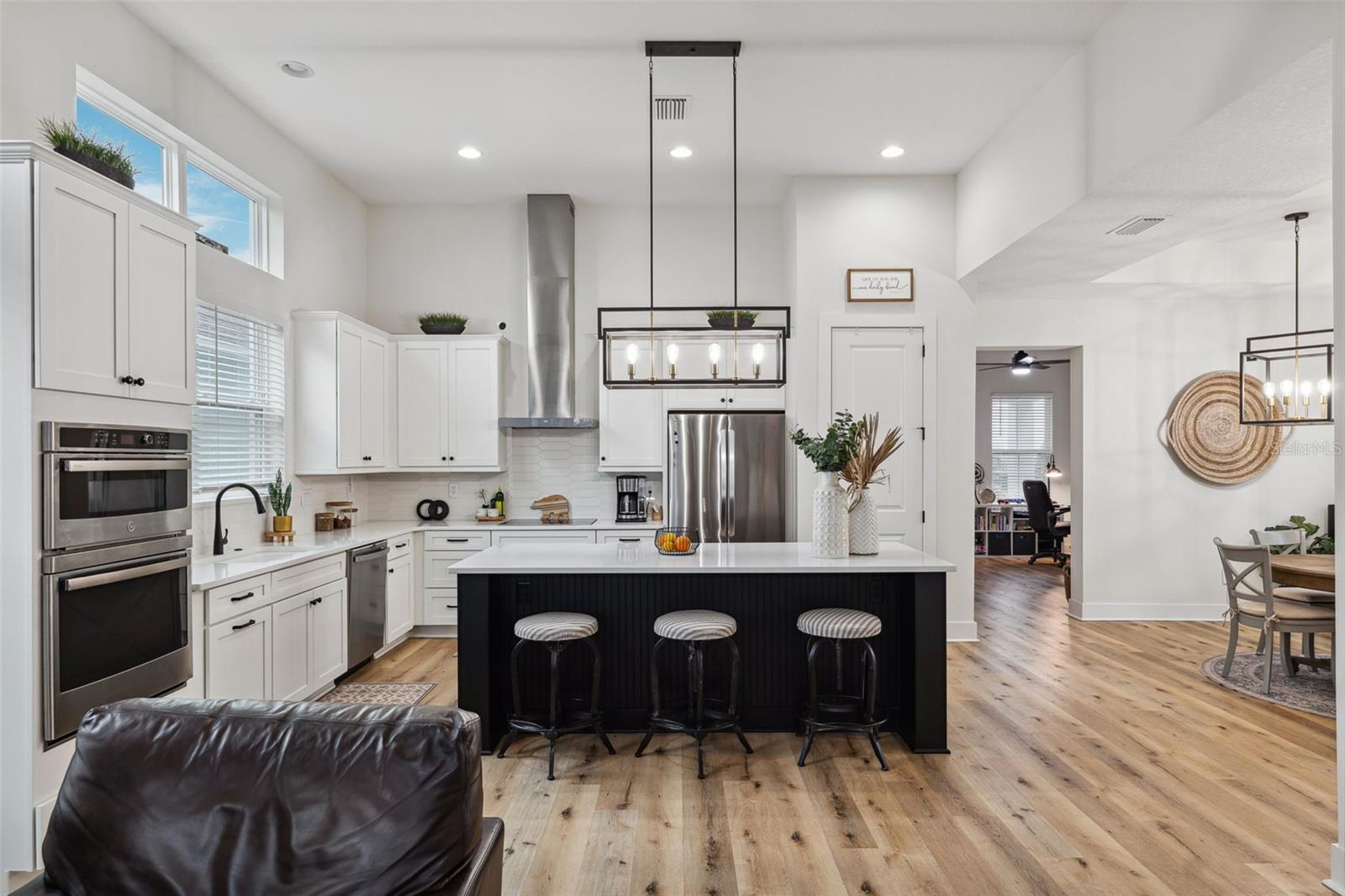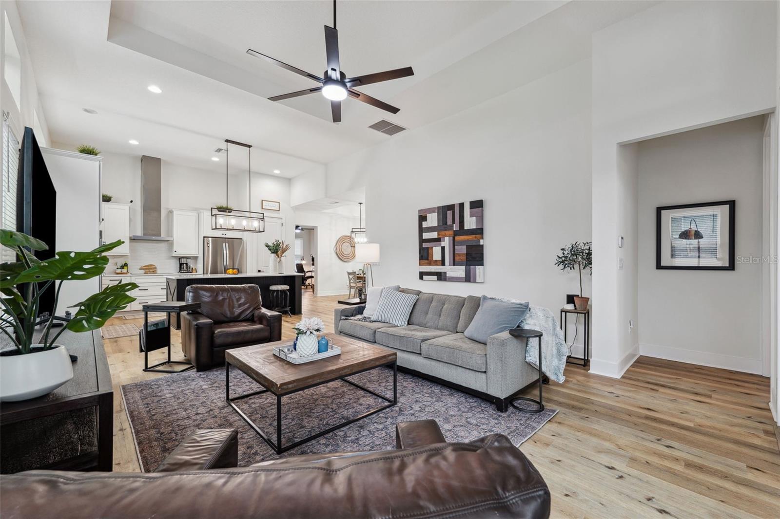 Why wait for new construction? This stunning bungalow, located in the beautiful community of Persimmon Park offers 3 bedrooms, 2 baths, a fully fenced yard, flex-space and so many design upgrades. As you enter you will appreciate the tasteful design with its bright, open and airy feeling. Enjoy creating your favorite meal in the deluxe kitchen with built-in oven, oversized island and stone countertops. This beautiful kitchen is open to the dining and living room, with elegant tray ceiling details, it's a perfect place for sharing that favorite meal, gathering and entertaining. As you walk through the living room into the primary bedroom suite, notice the same high tray ceilings as the living area, creating a feeling of cozy grandeur. In the primary suite's bathroom you will enjoy the beautifully upgraded shower with floor to ceiling tile and spacious walk-in closet. This lovely home offers the new home feel without the wait. Located within the highly sought after Wesley Chapel area, this home is conveniently located to I-75, Wiregrass Mall, many popular restaurants and lots of shopping. Call and schedule a tour today. Priced to sell—don’t miss this opportunity!