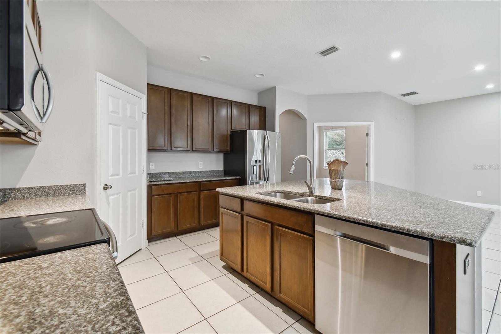Seller Motivated - Bring all offers. Located in the highly sought after Avalon Park West Community in Wesley Chapel, FL. This 1,866 square foot , corner lot gem features 3 Bedrooms, 2 bathrooms & has a separate office/den with French doors, that can easily be used as a 4th bedroom. This home features granite counters in the kitchen with dark shaker cabinets. Ceramic tile floors flow all throughout the home, offering an open concept Living Room/Dinning Room Combo. The kitchen features a grand sized granite Island; making this an ideal space for entertaining family and friends. The Owners Suite features an en suite with dual vanity sinks, granite counters, a shower and separate bathtub. Outside features include a swing on the charming front porch and newly fenced in back yard area. The rear entry garage is accessed by an extra long driveway which is convenient for guests to have ample parking. Enjoy resort style living with this delightful bungalow home. The community boasts a dog park, is centered between two community swimming pools, a playground and is close to Schools. Providing easy access to Shops at Wiregrass, I-75, countless restaurants, grocery stores, fitness centers and more are just minutes away. Disney World, neighboring theme parks and the beautiful Florida beaches are a short drive. Tenant Occupied until 4/1/25, please do not disturb tenants, Call today to schedule your private tour! Rental option also available