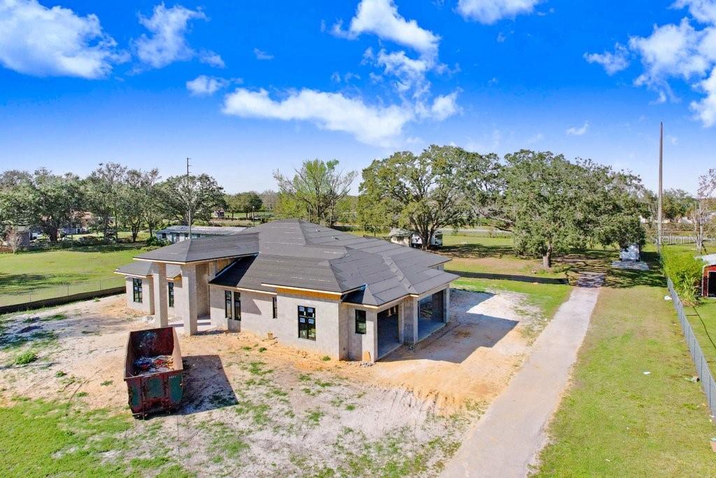 Under Construction. UNDER CONSTRUCTION - Custom Built Home on 1+ Acre Homesite. This property is currently being built by Covenant Homes and is slated to be finished by June, 2025. The property is on a quiet street in the growing Wesley Chapel/Zephyerhills area and is not subject to any CDD or HOAs. Currently on the property there is a storage shed and storage container along with well, septic and RV hook up. All three schools (Elementary, Middle and High) are right around the corner, you could install a gate out the back of your property and the kids could walk 1 block to school. The home was custom designed by the current owner and unforeseen circumstances are causing them to sell before ever occupying. Custom features abound: 3 Bed, 2.5 Bath with Office, 12 foot ceiling in the main living area, 16 foot Foyer ceiling and 10 foot standard ceilings in the rooms. Some of the rooms that got major upgrades in space and amenities are the Primary Bedroom area, particularly the Primary Closet and Bath. The Laundry room, oversized with tons of storage and cabinetry. The walk-in Pantry with tons of space and room to store your appliances to keep your counters clear. The Kitchen and Great Room are Open Concept with natural light pouring in from the 4 door pocket slider. The kitchen features white 42" upper cabinets and white lower cabinets around the perimeter as well a 10 foot natural wood island with sink, dishwater, trash bins, storage and bar seating. Also included are a custom hood and wall oven with microwave/air fryer. Right off the kitchen area facing the backyard is a dinette framed by 2 more sets of sliders. Out the back of the home is a 600 sq/ft covered patio and the home has been pre-wired and pre-plumbed for a future swimming pool. The garage is oversized: a 3 car, 878 sq/ft blank slate ready for a workbench, tools, motorcycles or anything else you can think of. The home sits perfectly on the lot to maximize the backyard and the mature oak trees on the property have been untouched during construction. A 5 zone irrigation system, coupled with the well water, means you will have the best looking lawn in the area. The surrounding area offers everything you will need from shopping to dining and activities. New construction communities are popping up everywhere, however your 1 acre paradise will feel miles away from the hustle. Live Free in Florida in your very own Custom Home.