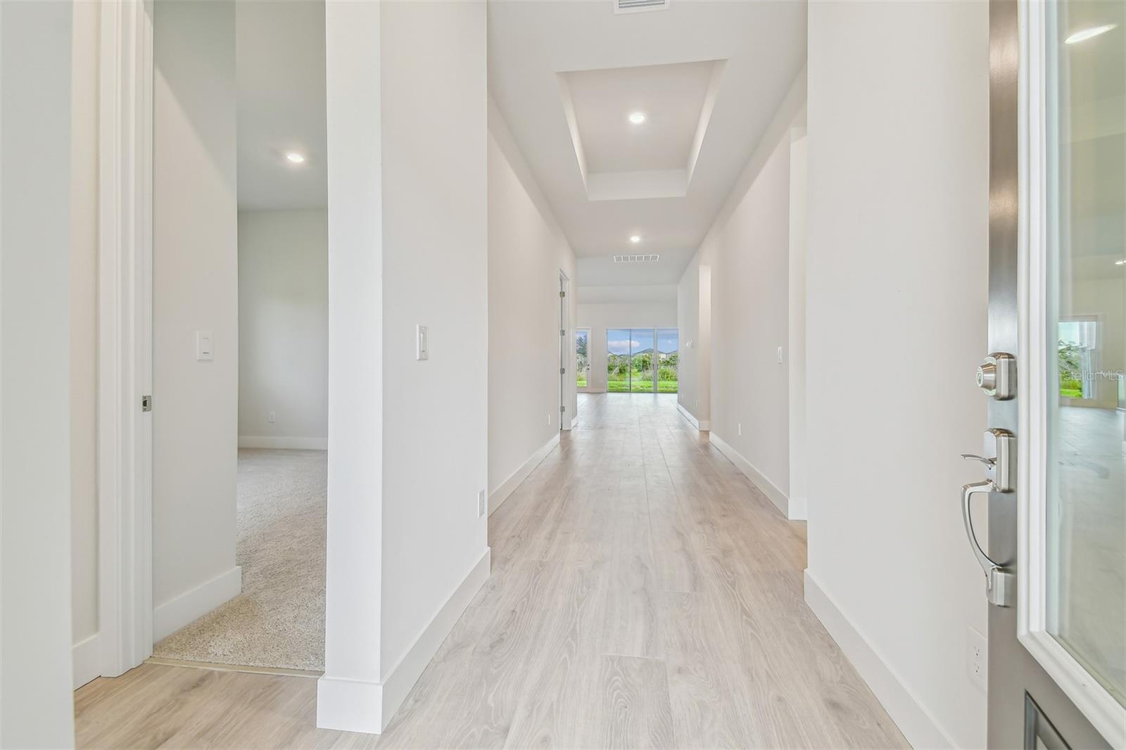 One or more photo(s) has been virtually staged. Welcome to The Colston by David Weekley Homes, an exquisite home nestled in the highly sought-after Chapel Crossings community in Wesley Chapel! This stunning home is located on an oversized lot that backs up to a serene pond and lush conservation area that provides the perfect blend of luxury, tranquility, and convenience. Step inside to discover a thoughtfully designed floor plan that includes a welcoming study, a peaceful lanai, and a versatile TV Room — ideal spaces for relaxation or entertaining. The heart of the home, the kitchen, is a true showstopper, offering cathedral ceilings, a spacious island, ample cabinetry, and a large walk-in pantry, making it a chef's dream. Retreat to your private Owner’s Suite, a luxurious haven featuring a large walk-in closet and a spa-like en suite bathroom, offering ultimate comfort and relaxation. The three secondary bedrooms are perfectly situated for privacy and comfort, ideal for family members or overnight guests. This home also comes with the peace of mind that comes with David Weekley’s industry-leading warranty, ensuring the highest standards of craftsmanship and customer satisfaction. Chapel Crossings offers an incredible array of amenities, including a clubhouse, resort-style pool, lazy river, pickleball courts, dog parks, playgrounds, and walking and biking trails — all within walking distance from your front door. Experience the best in design, choice, and service in Wesley Chapel, FL.