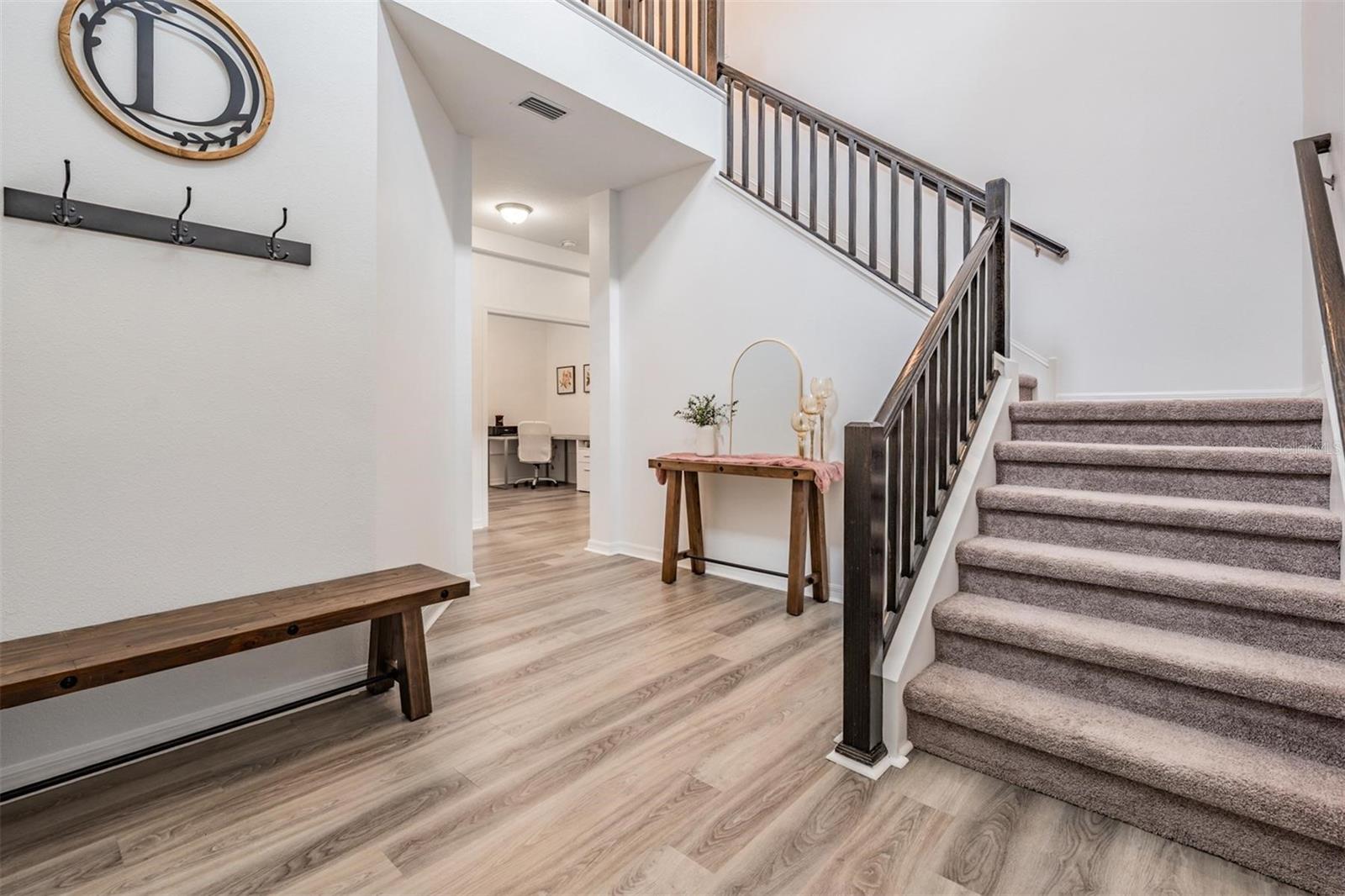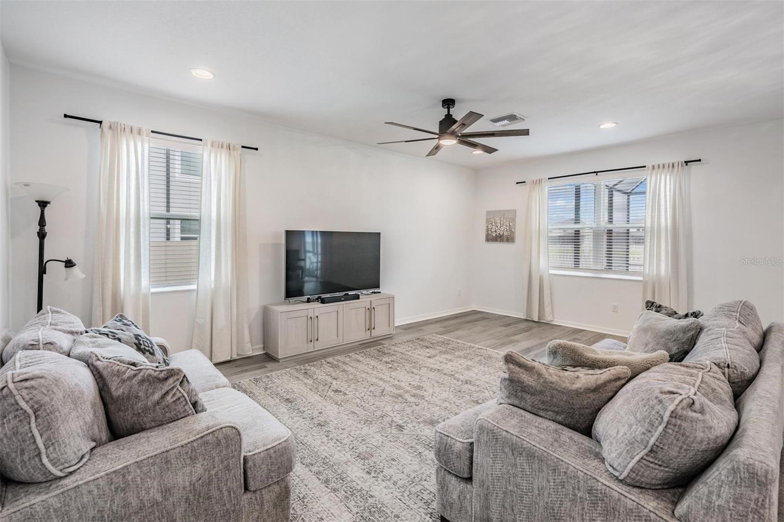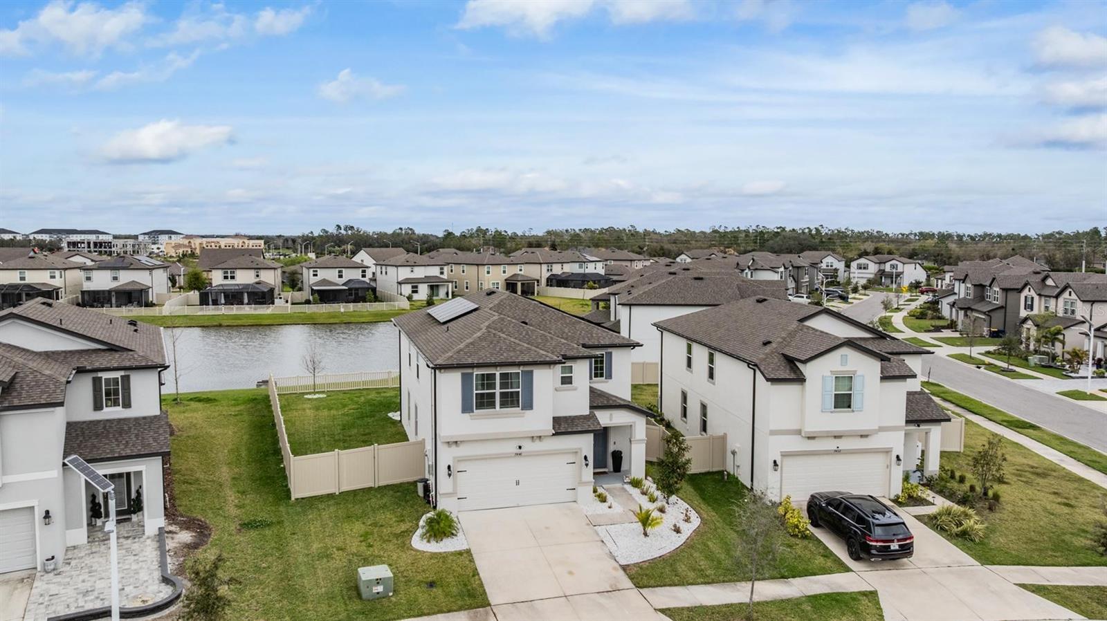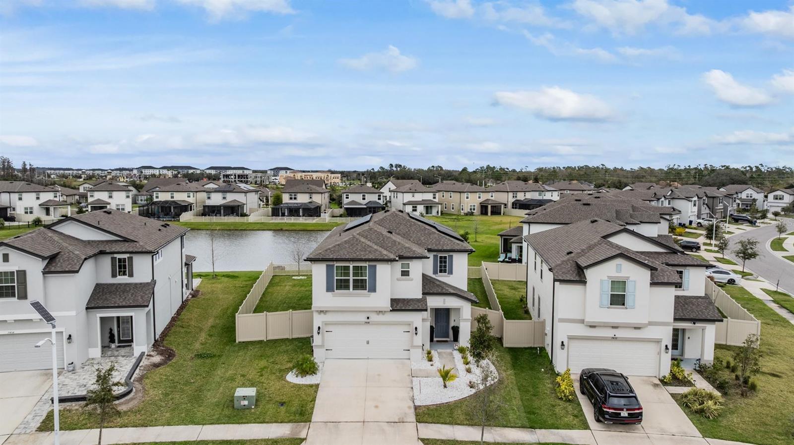Lagoon Home is calling your name! Located in the gated section of the Epperson Lagoon Community, this home comes with Solar Panels (free and clear), a fully fenced yard, an extended lanai with pavers and fully screened. Featuring three bedrooms, a home office, a bonus room, two full bathrooms + a powder bath. The primary bedroom is on the second floor with a large en-suite bathroom featuring double sinks, a walk-in shower and separate water closet. The bonus room and all other bedrooms are also on the second floor. The first floor has vinyl plank flooring throughout, the home office is on the first floor, adjacent to the living room. The gourmet kitchen has a vent hood and glass cooktop with built-in oven and microwave, white cabinets, granite countertops and custom lighting. Through the sliding glass doors there's a large paved lanai with screen and a beautiful sparkly pond view with a fully fenced HUGE backyard. The home is also equipped with a water softener and custom lights and ceiling fans. This home is move-in ready!! Life at the Lagoon is like nothing else... Located in the Epperson South (gated) Lagoon Community, and in close proximity to Publix Plaza at Innovation Springs (you can ride the golf car over), Starbucks and Chick Fil-A (coming soon). The Epperson HOA quarterly fee is only $237 per quarter and includes cable + the fastest internet in the nation, Ultra-Fi. The Crystal Lagoon Membership Fee is $103 per quarter. The closest Elementary Schools are Innovation Preparatory Academy, Kirkland K-8 Charter School & Wesley Chapel Elementary. The closest middle school is Thomas Weightnman Middle School. The nearest high schools are Kirkland Academy of Innovation High School and Wesley Chapel HS. The community features “Street Leaf” (solar streetlights), home of the first Crystal Lagoon, where Residents have access to Elam Park & the dock at King Lake, Paddle Boarding, Kayaking, a Wibit Obstacle Course, Cabanas, AquaBanas, Sandy Beaches, Live Music Events, Swim Up Bar and Resident Only Events. The Lagoon is like an Outdoor Clubhouse. The Holiday/Seasonal Events include Trivia Night, Family Night, Movies on the Lawn, Sounds of Summer (live music series), Karaoke, Pumpkin Patch in November, Golf Cart parades, Cinco de Mayo Resident only celebration, Fourth of July Resident Only celebration and much more. The Epperson Community Amenities include an Eagle’s Nest Part, a dog park, and golf cart paths. This home is located about 10 minutes away from KRATE (the new outdoor mall), 35 minutes north of Downtown Tampa, 45 minutes from Tampa International Airport, and 90 minutes from Orlando and Walt Disney World theme parks. Call Agent to set up a tour! Video tour available on YouTube, search by address.