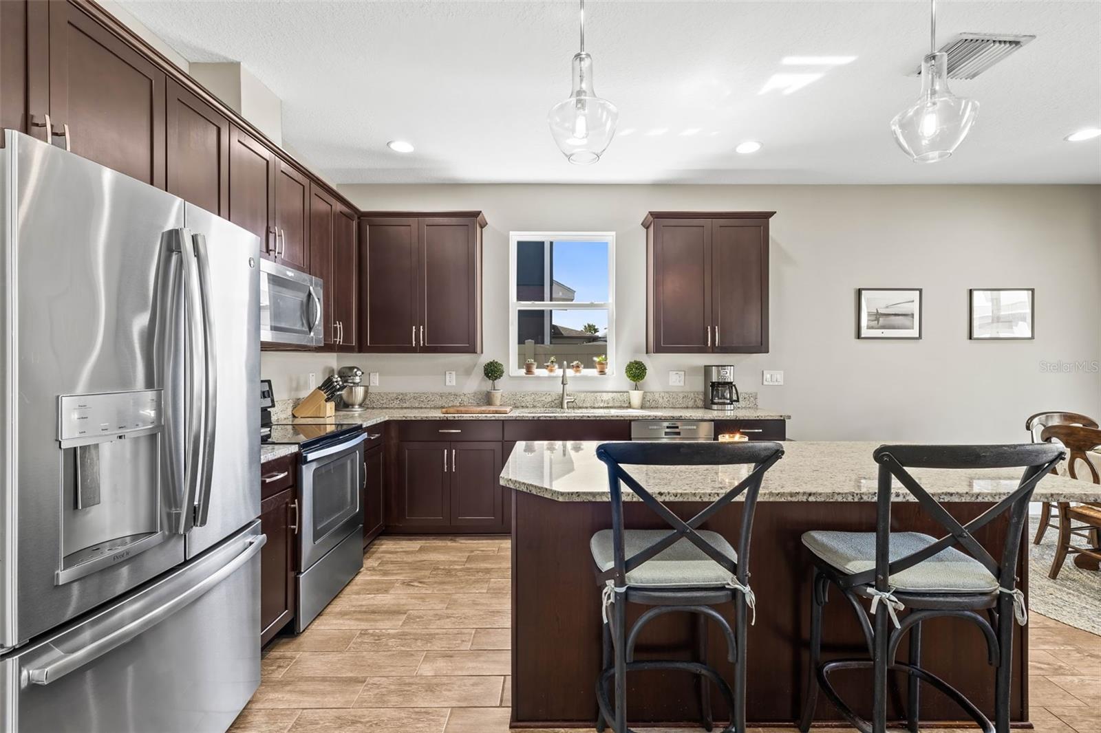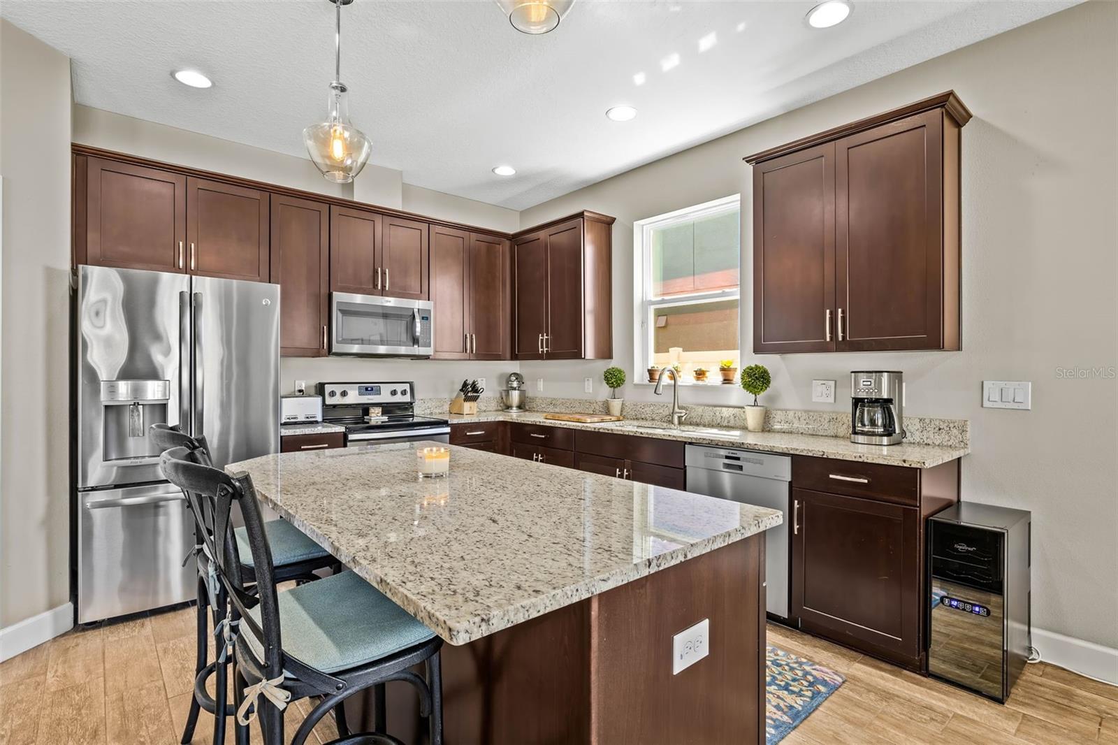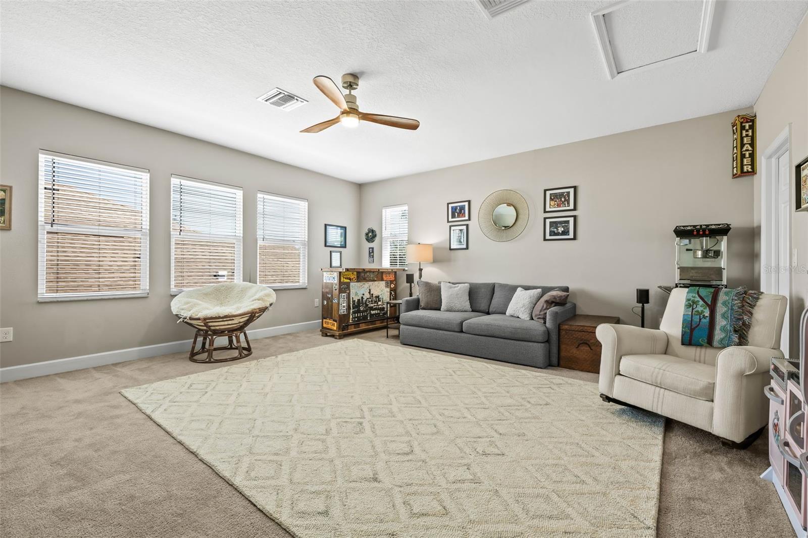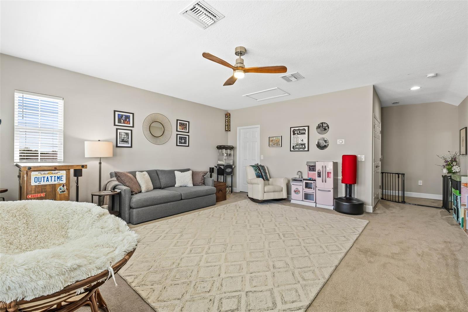 Exceptional Living Starts HERE in Union Park! MOTIVATED SELLER! Welcome home to this 4 bedroom, 2 bath, 2 car garage CalAtlantic home with bonus loft on the second floor! Union Park is a Metro community abundant with amenities & your new home is close to it all! Step into the ceramic tile flooring throughout the main living areas and bright open floor plan. The glass front door is decorative and serves to bring in natural light all day. The bedrooms are on a split floor plan with the primary suite facing the fully fenced in back yard. This house has been freshly painted inside and out and the pride of ownership is evident throughout. Your primary suite has an ensuite bathroom with dual sinks, shower, and walk-in closet. The second bathroom with tub/shower is shared with the 3 additional bedrooms- or use a bedroom as an office space. Your kitchen and living room "great room" space has a dining area perfect for up to 6 seats plus additional at the island. Tired of white? This home has the contrasting wood cabinetry in deep brown and granite countertops to accent the colors in the home. Florida living is about utilizing as much time and space as we can outdoors & this property makes it a hugely enjoyable experience with its pristinely kept manicured landscaping and butterfly garden in the back! Sit outdoors year round on the patio/lanai and watch them flock to you. Need additional space for a flex room, activity or game/media room? The second floor loft is huge with a storage closet to keep all your decorations and recreational items. Currently used as a play/media room this space is ideal for a home theatre or gaming room! Union Park's amenities are where everyone wants to gather- from the pool and clubhouse, to the trails and workout areas throughout Metro developers know how to maximize the enjoyment of a community. Tot lots offer shaded play areas, the splash pad and playgrounds are great for cooling down and never needing to go far for activity. Also close by is the Publix Shopping Center, Wiregrass Mall, access to I-75/major highways, Cooper's Hawk and soon (being completed 2026) will be the new downtown Wiregrass entertainment facility as well as Whole Foods and a new commercial gym + additional retail. This premiere area is also near to Orlando Health (completing scheduled 2026), Advent Health and BayCare Hospitals. Dont miss out on all Union Park and Wesley Chapel have to offer- schedule your showing to see what exceptional living can be!