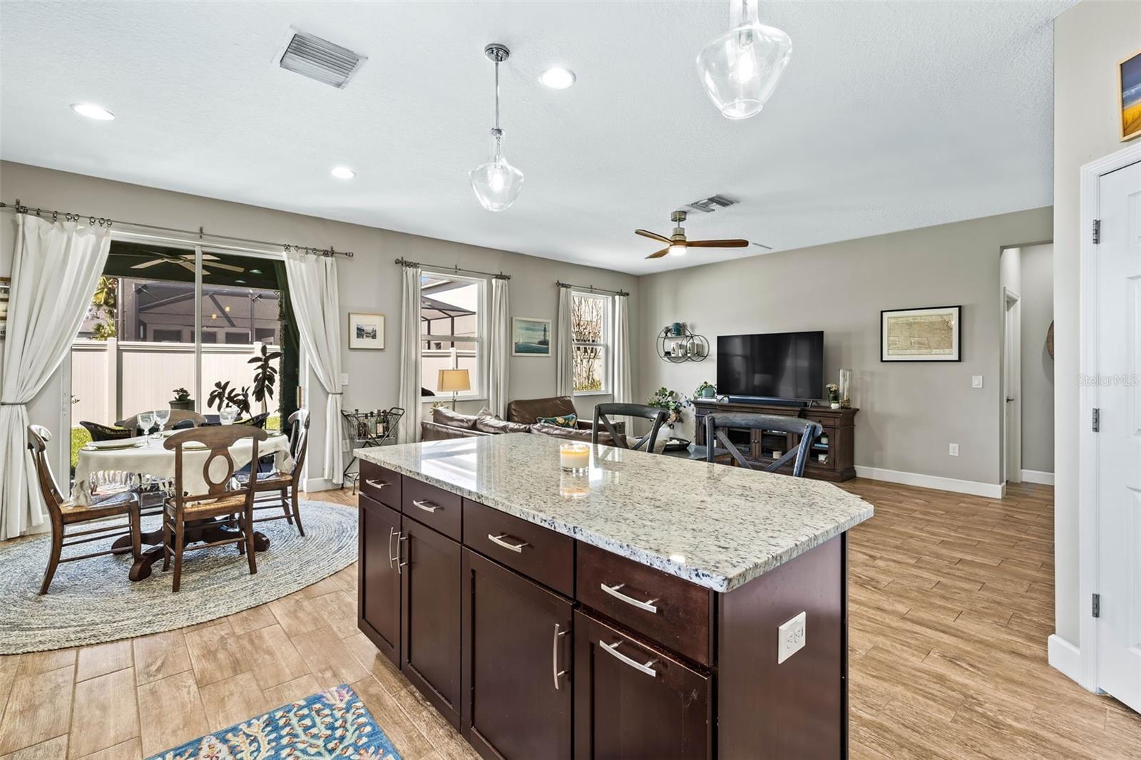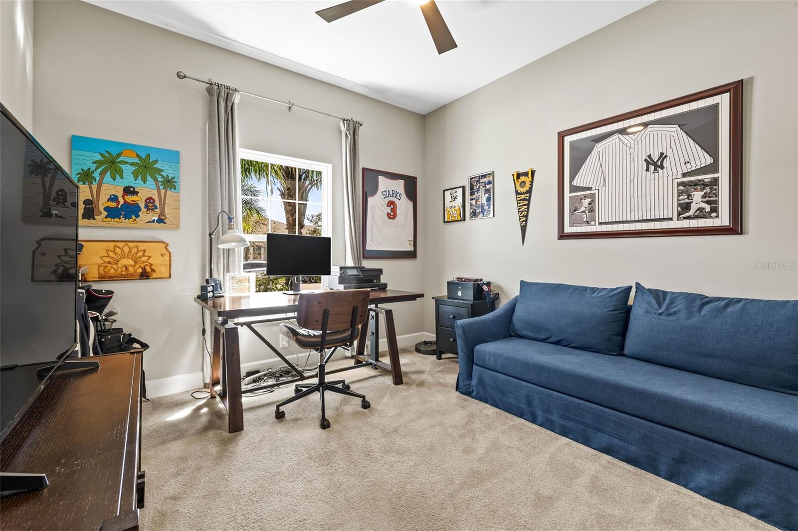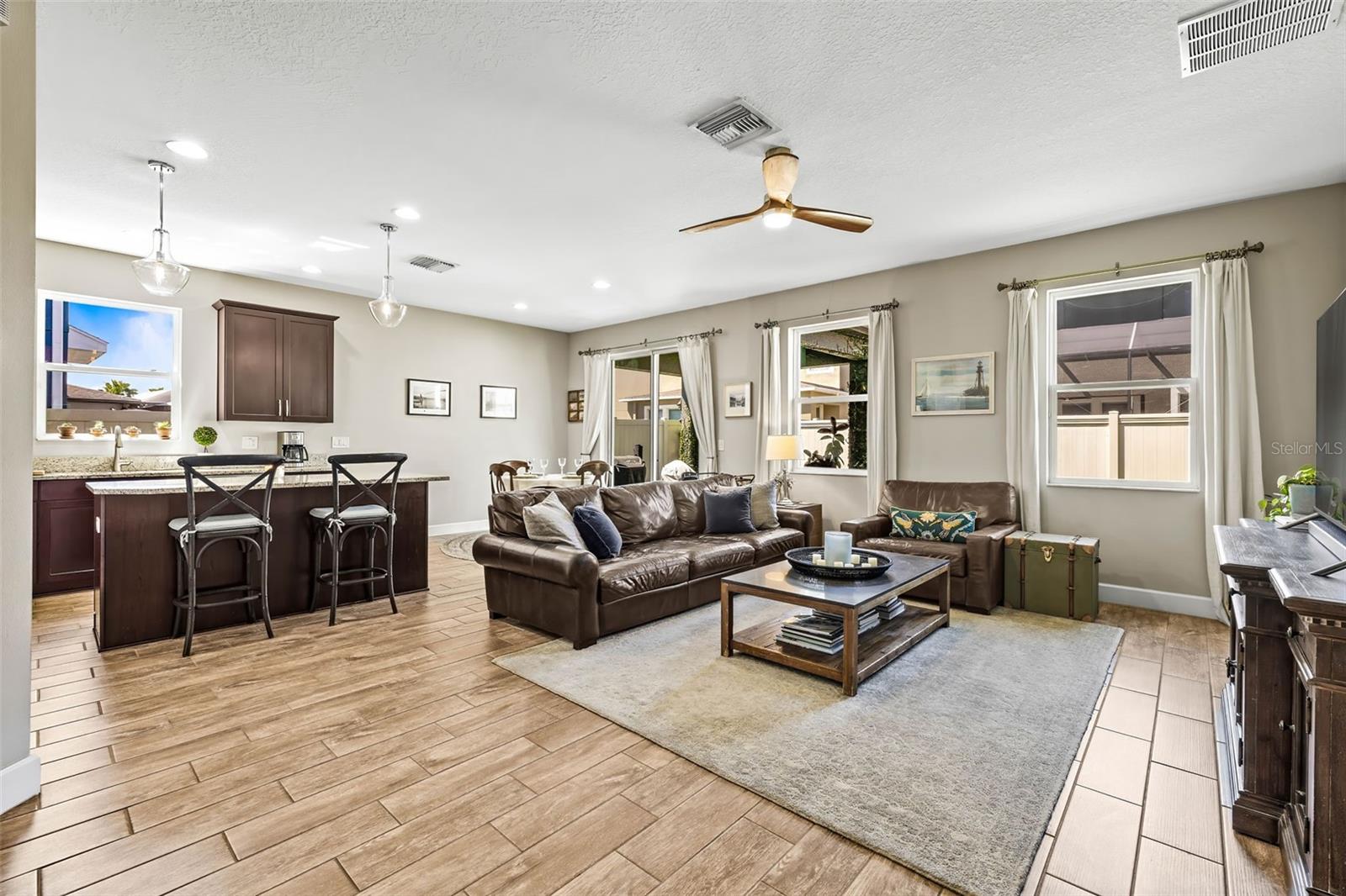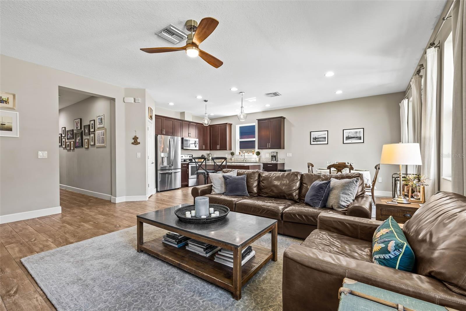 Exceptional Living Starts HERE in Union Park! MOTIVATED SELLER! Welcome home to this 4 bedroom, 2 bath, 2 car garage CalAtlantic home with bonus loft on the second floor! Union Park is a Metro community abundant with amenities & your new home is close to it all! Step into the ceramic tile flooring throughout the main living areas and bright open floor plan. The glass front door is decorative and serves to bring in natural light all day. The bedrooms are on a split floor plan with the primary suite facing the fully fenced in back yard. This house has been freshly painted inside and out and the pride of ownership is evident throughout. Your primary suite has an ensuite bathroom with dual sinks, shower, and walk-in closet. The second bathroom with tub/shower is shared with the 3 additional bedrooms- or use a bedroom as an office space. Your kitchen and living room "great room" space has a dining area perfect for up to 6 seats plus additional at the island. Tired of white? This home has the contrasting wood cabinetry in deep brown and granite countertops to accent the colors in the home. Florida living is about utilizing as much time and space as we can outdoors & this property makes it a hugely enjoyable experience with its pristinely kept manicured landscaping and butterfly garden in the back! Sit outdoors year round on the patio/lanai and watch them flock to you. Need additional space for a flex room, activity or game/media room? The second floor loft is huge with a storage closet to keep all your decorations and recreational items. Currently used as a play/media room this space is ideal for a home theatre or gaming room! Union Park's amenities are where everyone wants to gather- from the pool and clubhouse, to the trails and workout areas throughout Metro developers know how to maximize the enjoyment of a community. Tot lots offer shaded play areas, the splash pad and playgrounds are great for cooling down and never needing to go far for activity. Also close by is the Publix Shopping Center, Wiregrass Mall, access to I-75/major highways, Cooper's Hawk and soon (being completed 2026) will be the new downtown Wiregrass entertainment facility as well as Whole Foods and a new commercial gym + additional retail. This premiere area is also near to Orlando Health (completing scheduled 2026), Advent Health and BayCare Hospitals. Dont miss out on all Union Park and Wesley Chapel have to offer- schedule your showing to see what exceptional living can be!