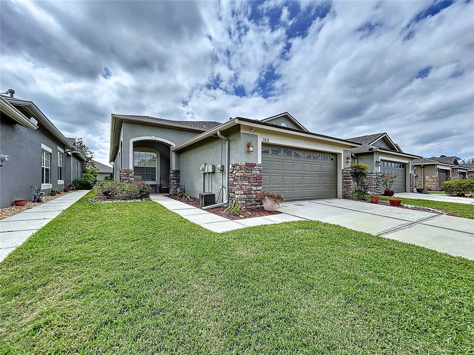 WHY RENT WHEN YOU CAN BUY? This is a GREAT BUY for the new Owner - Priced below the comps and includes a $5000. carpet allowance. Enjoy Main-floor, Maintenance-free living in a Gated Community - 2 bedroom | 2 bath home with an OFFICE | 2-car Garage. NEW ROOF (2021) | NEW HVAC (2017) | NEW WATER HEATER (2017)| Property under Termite Bond This desirable MeadowPointe III villa offers curb appeal galore with a split floor plan for privacy. The large, open owner's suite is located at the opposite end of the home and has plenty of room for your furniture with an ensuite that offers a walk-in closet, a separate shower, a garden tub for soaking, and 2 sinks. The versatile office space could serve as a guest room, a play area, a sewing or hobby/crafts room, or a place to work from home. Your GENEROUS kitchen has a breakfast bar and a bright, eat-in area located off the garage and leading to a ROOMY GREAT ROOM. Longing for Florida Outdoor Living? You will love the 2 porches, including a screen lanai and BBQ pad. Bonus Perks include an owned security system from ADT and Plantation Shutters in many of the windows. Make this home your own. The Seller is motivated and ready to move on to the next chapter. She says, "Sell". Ample Meadow Pointe III amenities offer Pickle Ball, Tennis Courts, a beautiful swimming pool, and clubhouse with a fitness center and friendly staff. Need more? Meadow Pointe II amenities are available to MP III residents for an extra $75 per year. This home has been pre-inspected and comes with a clean 4-Point - Close to Orlando and Beautiful Gulf Beaches, nearby shopping, dining, and attractions. Maintenance includes-Paint, Roof, Lawn, and Trash Pickup- LOW HOA! Buyer/Buyer's Agent is responsible for verifying all items important to them.