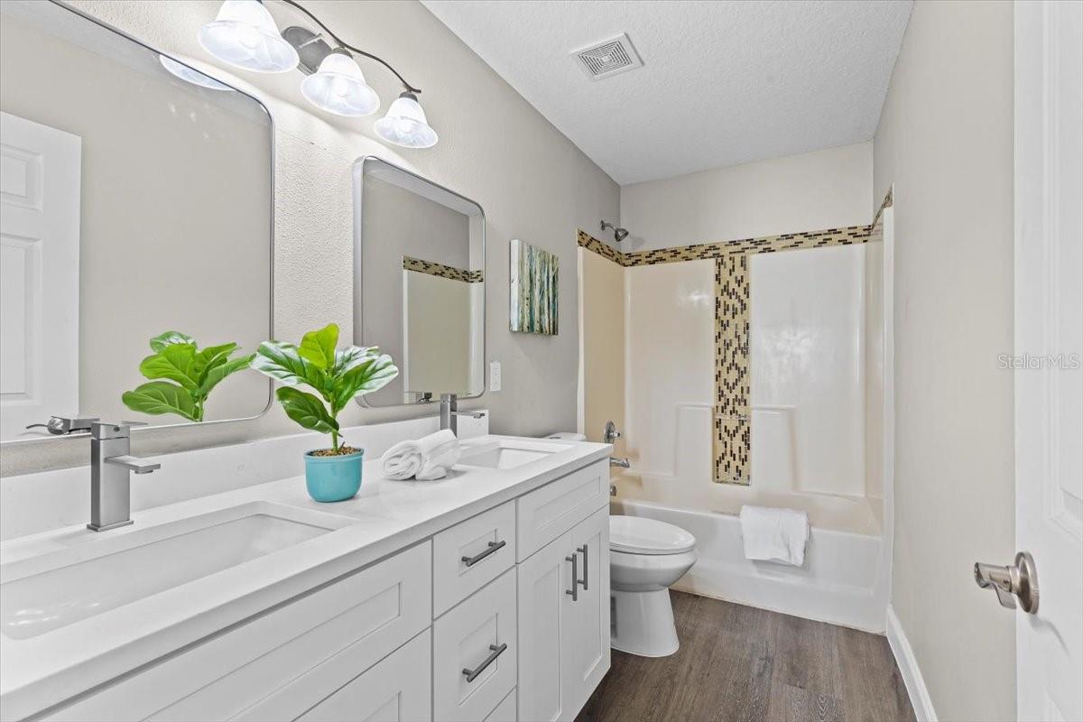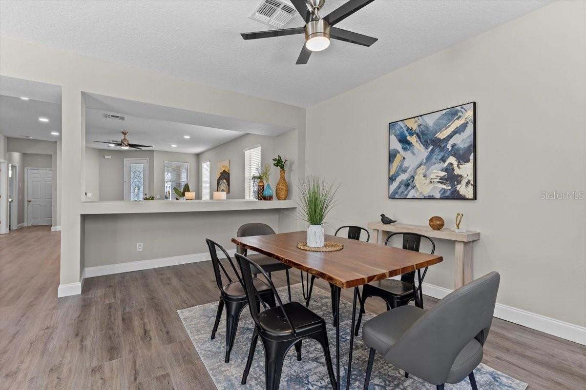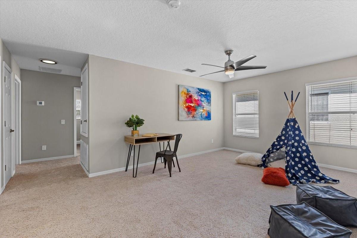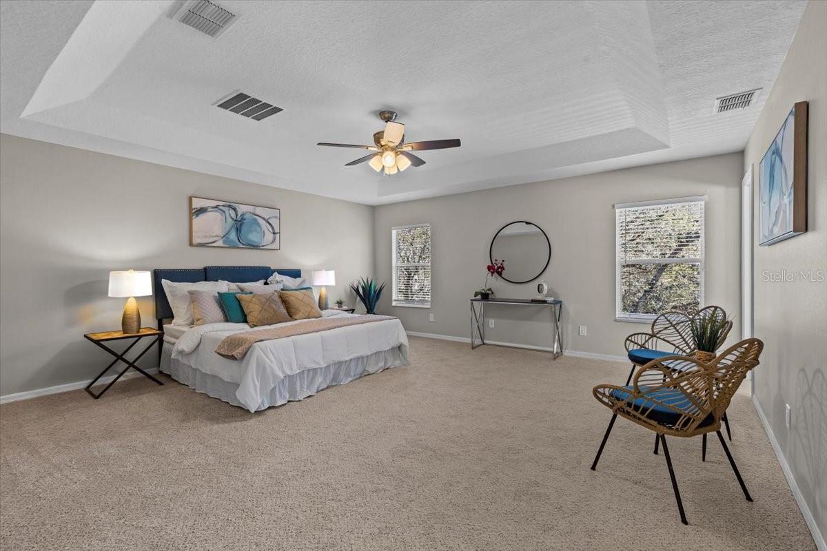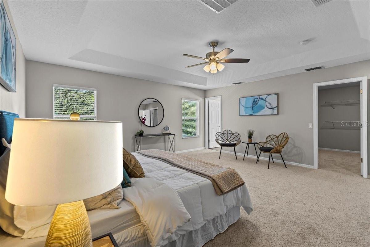 SELLER WILL REPLACE ROOF WITH AN ACCEPTABLE OFFER! Welcome home to this expansive 4-bedroom, 3-bathroom 2-car garage, pool home retreat in the sought-after Seven Oaks community. Nestled on a serene conservation lot with picturesque pond views, this home offers the perfect balance of comfort, style, and nature. From the moment you arrive, you’ll be welcomed by fresh landscaping and a covered tile entryway that invites you inside. Step into the spacious living room, where natural light pours in through large windows, highlighting the warm luxury vinyl flooring and all-new updated fixtures that create a cozy and inviting atmosphere. The heart of the home is the beautifully updated kitchen, thoughtfully designed with modern touches that make cooking and entertaining a delight. Crisp white shaker cabinets, quartz countertops, brand-new stainless steel appliances, and a large island provide plenty of prep space while offering stunning views of the pool and tranquil pond just beyond the sliding glass doors. The kitchen seamlessly connects to a bright dining area and a cozy seating nook, making it the perfect place for gathering with loved ones. Just beyond the kitchen and dining area, a spacious first-floor bedroom offers flexibility as a guest suite or home office, complete with a spacious closet. Nearby, a stylishly updated full bathroom with a quartz-topped vanity and chic luxury vinyl flooring provides convenience for guests. Thoughtful storage solutions throughout the first floor ensure everything has its place. Venture upstairs to find a versatile loft space, ideal for a home office. The inviting Primary Suite is a true retreat, offering breathtaking views of the conservation area and pond. Wake up to peaceful scenery and unwind in the primary bathroom, featuring a new double vanity with quartz countertops, a garden tub, and a walk-in shower. A spacious walk-in closet provides ample storage for all your needs. Two additional generously sized bedrooms, each with large walk-in closets, and a third full bathroom with modern updates complete the second floor. A conveniently located laundry room adds to the home’s practical charm. Step outside to your own backyard oasis. The screened-in pool area is perfect for relaxing or entertaining, offering stunning water and conservation views. Whether you're enjoying a morning coffee on the patio or taking an evening swim, this outdoor space is designed to be your personal retreat. Beyond the home, the Seven Oaks community offers an array of resort-style amenities. Enjoy the sun deck with private cabanas, swim in the Junior-Olympic lap pool with a thrilling double-loop waterslide, or let the splash park bring out your inner child. Sports enthusiasts will appreciate the tennis courts, sand volleyball court, softball and soccer fields, and a fully-lit basketball court. The welcoming clubhouse features a fitness center, locker rooms with showers, a multi-tiered theater with a projection screen, gathering spaces, and a café for your convenience. Located near top-tier shopping and dining options like The Shops at Wiregrass, Tampa Premium Outlets, you'll have everything you need just moments away. With premier medical facilities such as Advent Health of Wesley Chapel and BayCare-Wesley Chapel. This isn’t just a house—it’s a place to call home. Schedule your private tour today and discover the comfort and lifestyle that await you in Seven Oaks. For a virtual tour, click the provided link.