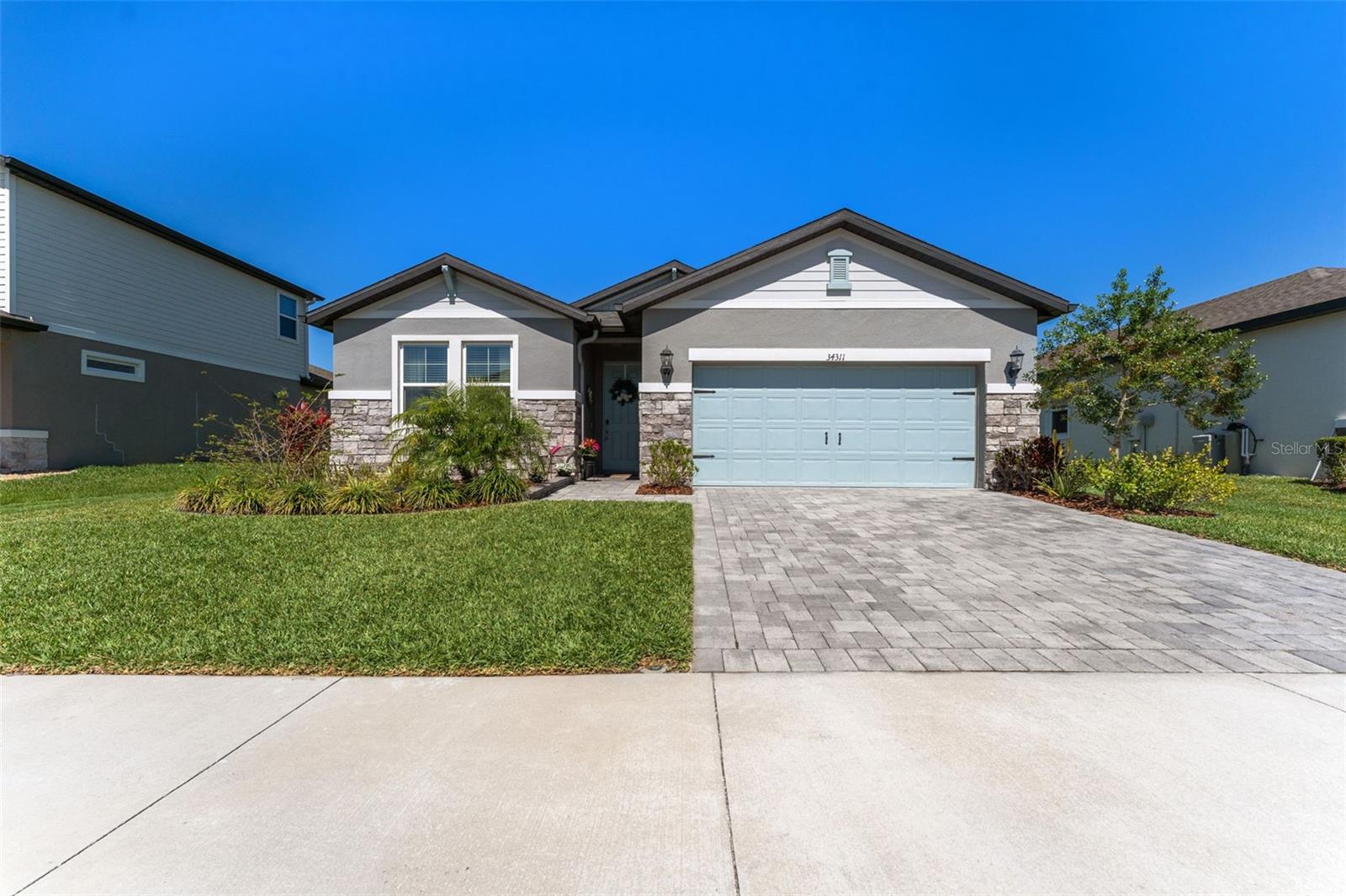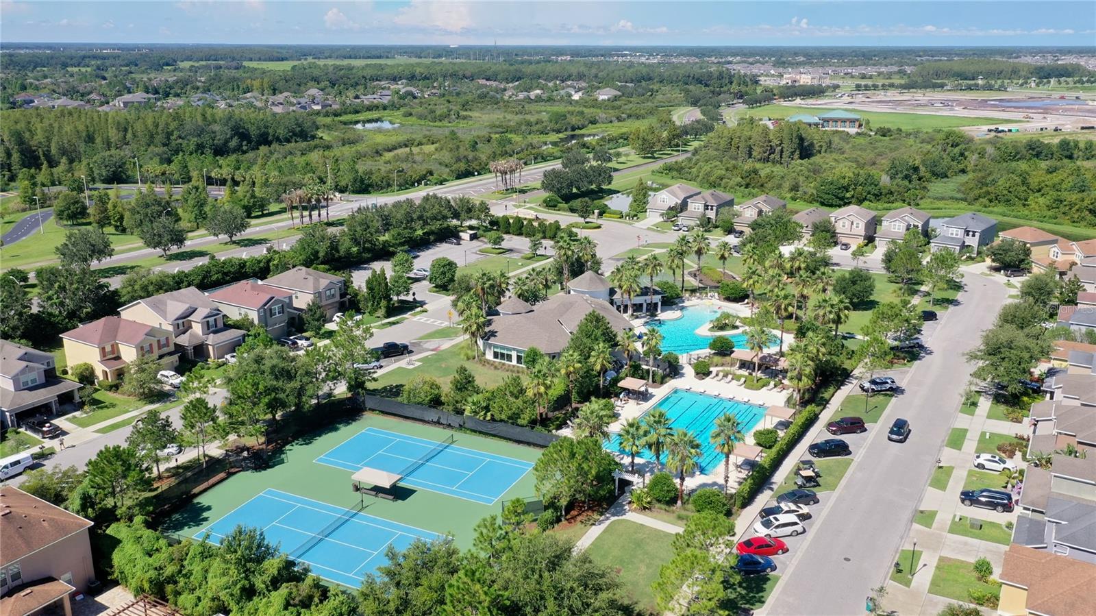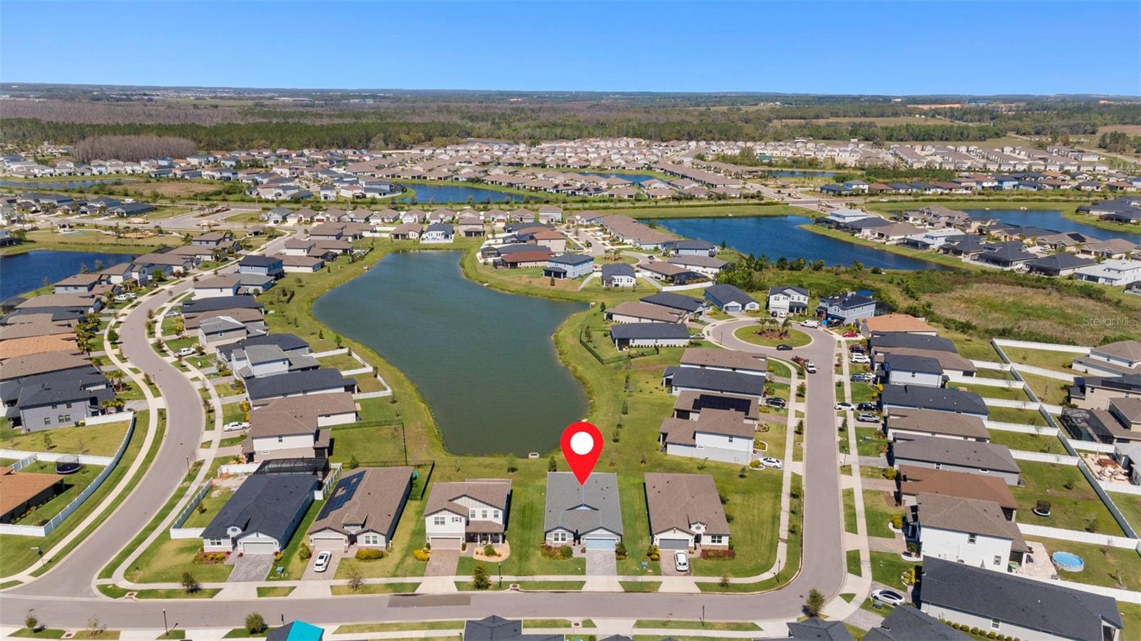Discover the perfect blend of modern living and elegance in this meticulously maintained home, built in 2022, located in the desirable Watergrass community. This move-in-ready residence offers an open and airy floor plan, perfect for everyday living and entertaining. With four spacious bedrooms and three bathrooms, this energy-efficient home is designed with your comfort and well-being in mind. The home is equipped with Spray Foam insulation for noise reduction, meets or exceeds the EPA’s Indoor airPLUS standards, and includes high-performance MERV 13 filters to help reduce allergens, bacteria, and some viral particles. Additional energy-efficient features include Low-E windows, sealed air-conditioned ducts, and an air-conditioned attic. The charming front yard is beautifully landscaped and complemented by a zoned irrigation system for the front yard. Inside, you'll find Ashfield Plank Ivory Oak luxury vinyl plank flooring throughout the main living areas, while plush carpeting adds comfort to the bedrooms. The kitchen is a chef’s dream, featuring stunning Cotton White granite countertops, a beautiful Geoscape hexagon light gray mosaic backsplash, shaker-style cabinets, stainless steel appliances, and a spacious 9-foot island with seating for four. The large great room offers an open, inviting space to relax or entertain. The primary suite, located at the rear of the home for added privacy, features a large walk-in closet and an en-suite bathroom with a frameless shower for a spa-like experience. Step outside to the screened-in lanai, which overlooks a picturesque pond and provides a serene setting to enjoy the outdoors. The oversized lot offers plenty of space for future additions, all while maintaining privacy and a peaceful atmosphere. Additional features include a whole-house water filtration system, a water softener, and a generously sized laundry room with ample storage. The Watergrass community offers access to parks, playgrounds, and community pools, while being conveniently located just 2.8 miles from Publix, restaurants, and Home Depot. Watergrass Elementary School and a Fire Department are within the community, making it a truly family-friendly neighborhood. Shopping, dining, and the outlet mall are just minutes away, and downtown Tampa and Tampa International Airport are only 45 minutes away. Plus, a new Chick-fil-A is coming soon, adding even more convenience to your dining options. This exceptional home is ready for you to move in and start making memories today!