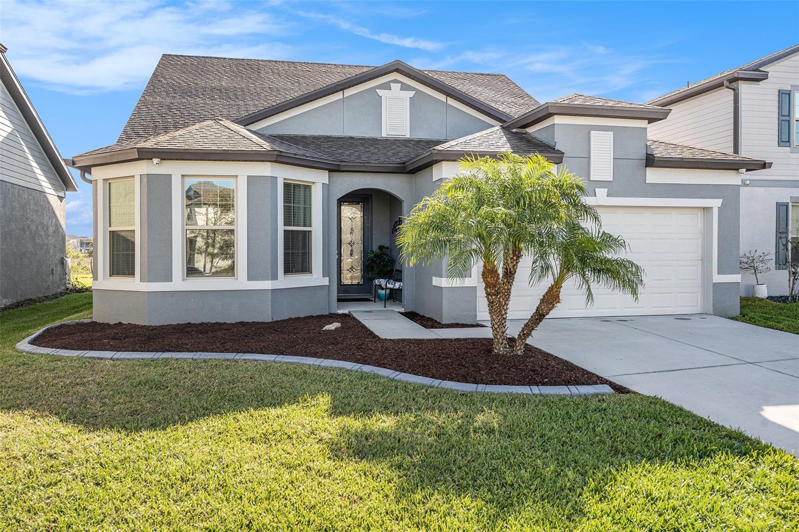 Buyer Incentive! Offering 10k to Buyer closing cost. Welcome to this stunning 4-bedroom, 3-bathroom, plus an office home in the sought-after Epperson Ranch gated community in Wesley Chapel, Florida! This beautifully designed home offers a modern and spacious layout, with vinyl wood flooring throughout the living spaces and cool gray carpet in the bedrooms. The heart of the home features a bright, open living room with stackable sliding glass patio doors that seamlessly lead to a large screened-in porch – perfect for enjoying Florida's beautiful weather. The kitchen boasts stainless steel appliances, elegant wood cabinets, granite countertops, and a kitchen island with seating, making it ideal for both cooking and entertaining. The formal dining room provides a elegant space for gatherings, while the spacious living room offers plenty of room for relaxation. The security system, Yamaha surround sound system, Dual HVAC systems and solar panels add some practical benefits -providing additional cost savings and peace of mind. The primary bedroom is conveniently located on the first floor and includes an en-suite bathroom with dual sinks, a shower, and a walk-in closet for ultimate comfort and convenience. Additionally, the first floor includes two other bedrooms, a full bathroom, and a dedicated office space. Upstairs, you'll find a large loft area currently used as a game room, but it can easily be transformed into a playroom or home theater. The fourth bedroom, also on the second floor, has its own full bathroom, offering privacy and space for guests or family. This home is ideally located for easy access to the beaches, downtown Tampa, and major highways, making commuting a breeze. Epperson Ranch offers resort-style living with access to the exclusive Metro Lagoon, which hosts unique community events. Enjoy eco-friendly street lights, Eagle Park with walking trails and picnic areas, and the Lake House featuring a fitness center, social spaces, and stunning lake views. The community also includes a dog park, butterfly park & garden, tot lot playground, and golf cart paths. Plus, the HOA covers cable and ultra-high-speed internet, adding extra value and convenience to your new home. Don't miss your chance to live in this incredible community with everything you need right at your doorstep!