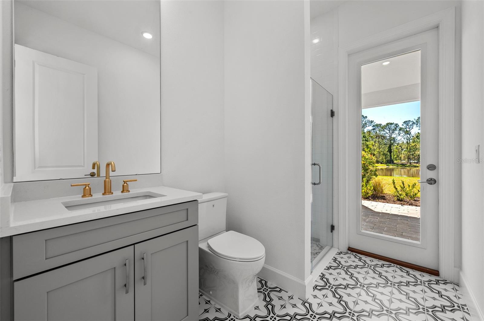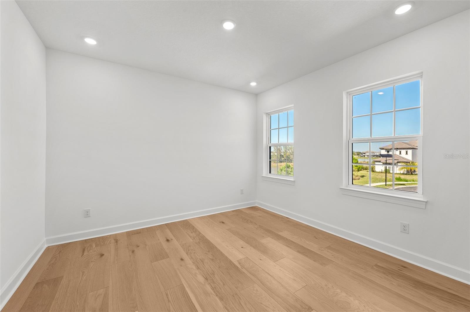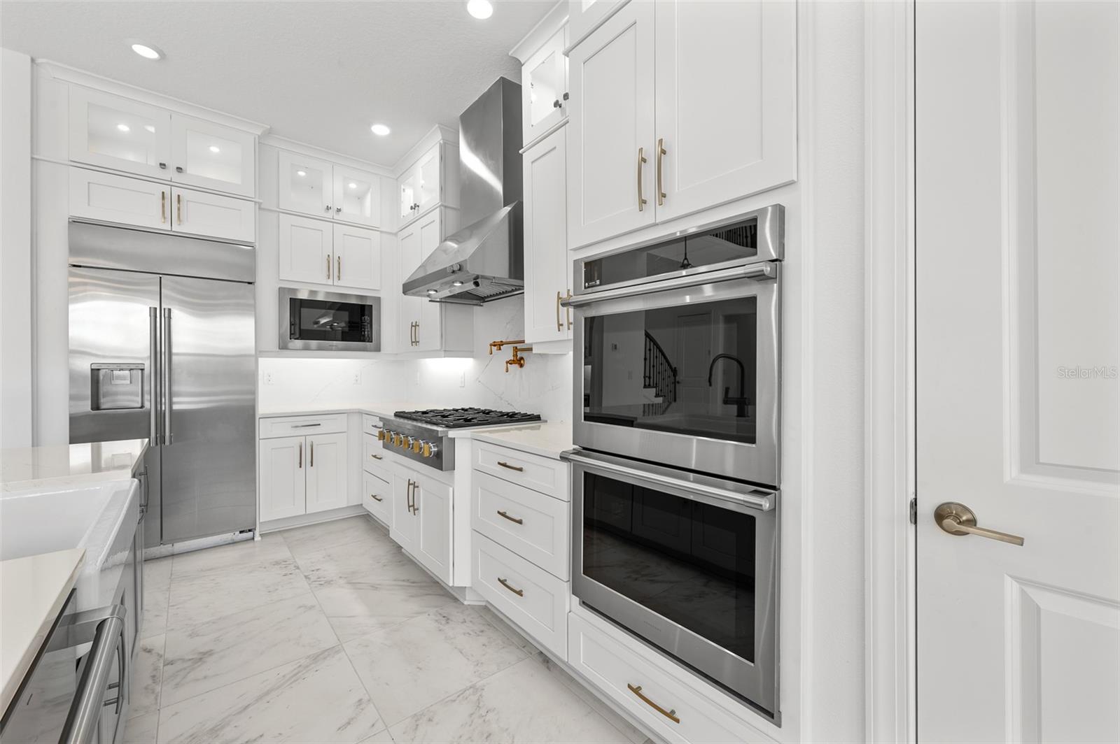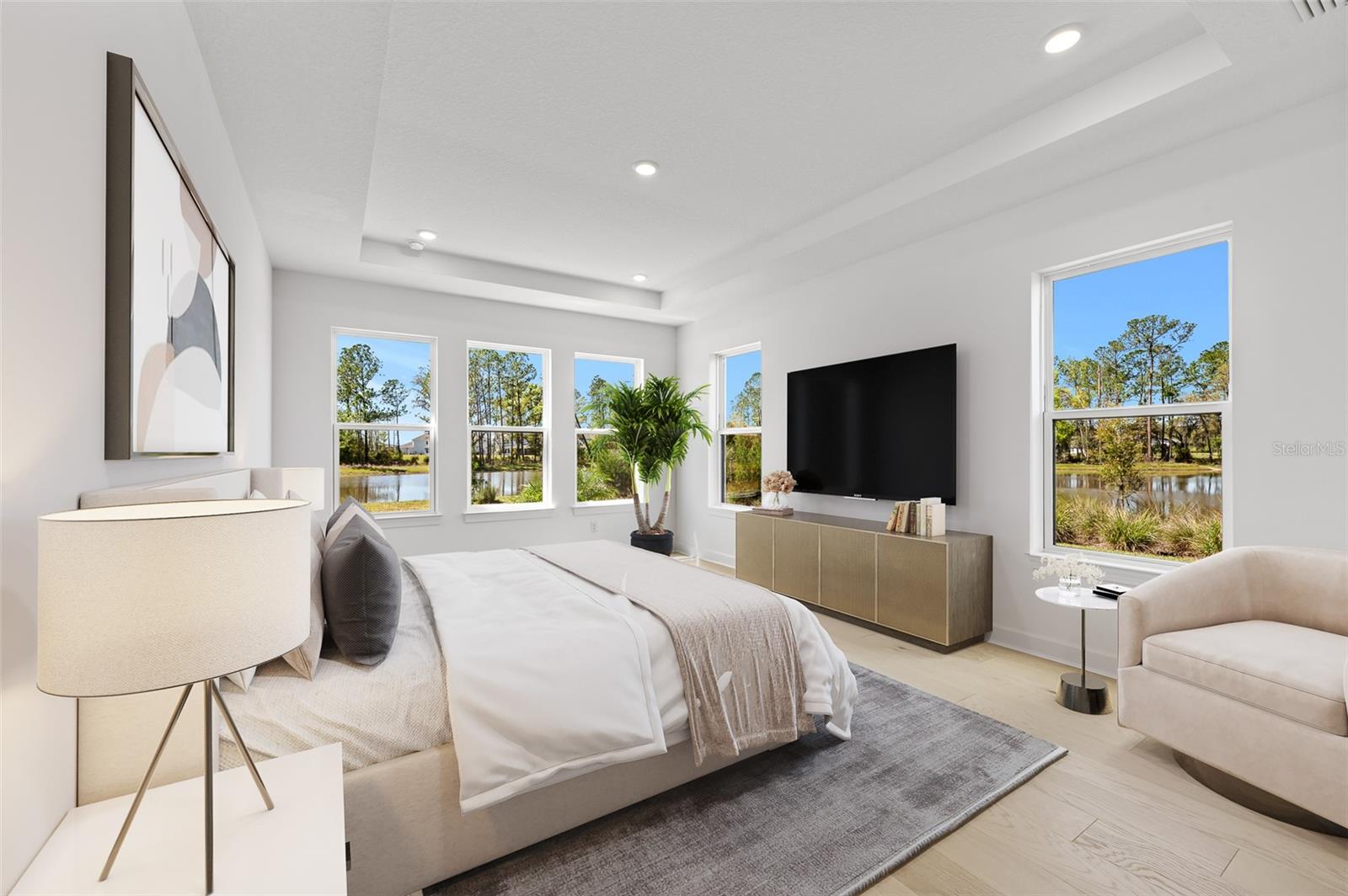 Introducing an unparalleled residence in the exclusive gated community of River’s Edge. This exquisite new construction property offers six bedrooms, 4.5 baths, oversized three-car garage, dedicated office, theater room, bonus loft with wet bar, formal dining room with butler’s pantry and second-story balcony overlooking panoramic pond views. This exclusive home offers unparalleled luxury, comfort, and an elevated sense of privacy as it rests on a premium corner lot within a tranquil cul-de-sac and features ideal minimal neighboring homes. This Taylor Morrison Forsyth floor plan boasts breathtaking western pond views, creating a serene and picturesque backdrop for sunsets and everyday living. From the moment you step inside, you'll be captivated by the grandeur of the open two-story foyer and living room, accentuated by soaring ceilings and 8-foot doors, radiating an aura of spaciousness and elegance. The thoughtfully designed interior features a formal dining room ideal for entertaining alongside the butler’s pantry with direct access to the breathtaking kitchen. You will also find a designated office space with glass French doors, and a separate media room with built-in surround sound speakers and a vaulted ceiling optimized for projector viewing. Large format tile flows seamlessly throughout the main living area, leading to an amazing open kitchen that is a chef's dream. Equipped with upgraded Monogram stainless steel appliances, a large center island with beautiful pendant lighting, a pot filler, farmhouse sink with a touchless faucet and large walk-in pantry, this kitchen is as functional as it is exquisite. The primary suite features idyllic views of the water and includes an en-suite bath with an elegant frameless glass walk-in shower complete with additional rainfall shower head, a freestanding deep-soaking bathtub and a private water closet. Tray ceilings in the primary suite, dining room and office add a touch of architectural sophistication. Step outside through the pocket sliding doors to discover an extended covered lanai and full outdoor kitchen, ideal for alfresco dining and entertaining. A convenient pool bath and bonus room enhances the outdoor living experience. The second level is thoughtfully designed with dual guest bedroom wings, each offering shared baths, ensuring privacy and comfort for family and guests. A bonus loft area completes the upstairs living experience with a full wet bar and adjacent half bath, plus access to the covered rear balcony. Practical features abound, including multi-zoned air-conditioning systems, a Culligan water softener system, indoor/outdoor audio system, and a tankless gas water heater, ensuring optimal comfort and efficiency. The oversized three-car garage, complete with an additional golf cart parking space, caters to all your storage needs. The property is also pre-plumbed for a pool addition, offering potential for further customization. Residents of River’s Edge enjoy access to a first-class clubhouse, resort-style pool and hot tub, fitness center, playground, dog park, soccer field, basketball court, tennis and pickleball courts, and peaceful recreational trails. Nearby, there is also access to many shopping, dining and entertainment options including The Shops at Wiregrass, Cooper’s Hawk Winery & Restaurant, Tampa Premium Outlets and ideally close to major roadways making travel to Tampa and Tampa International Airport convenient.