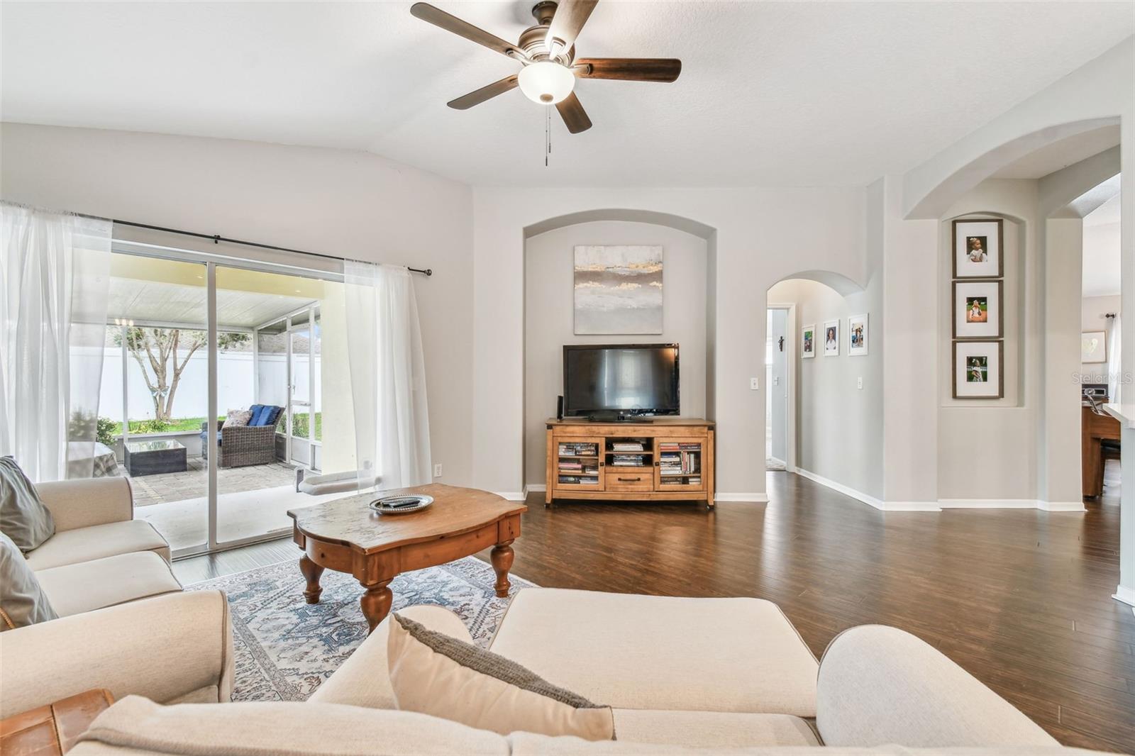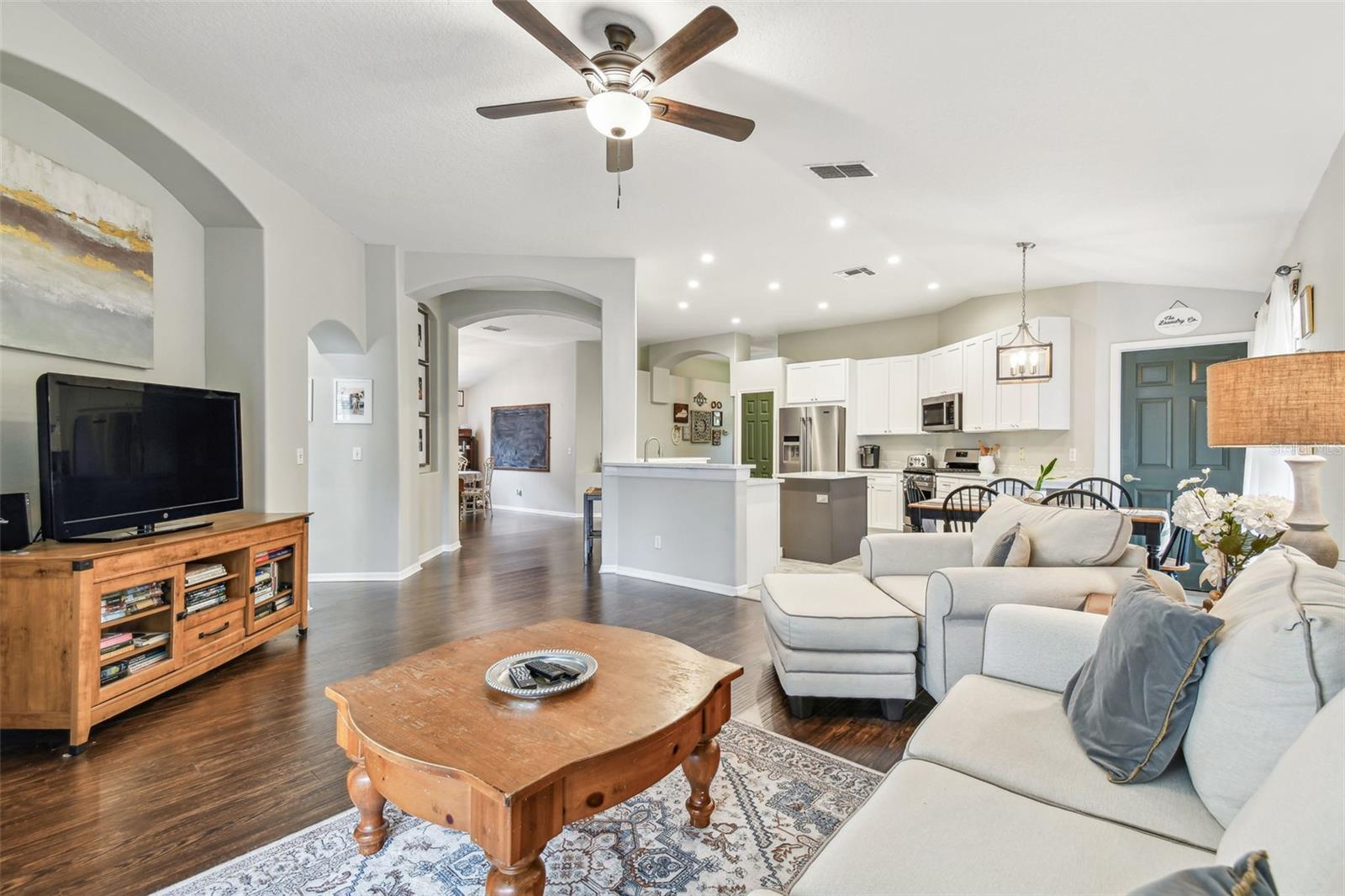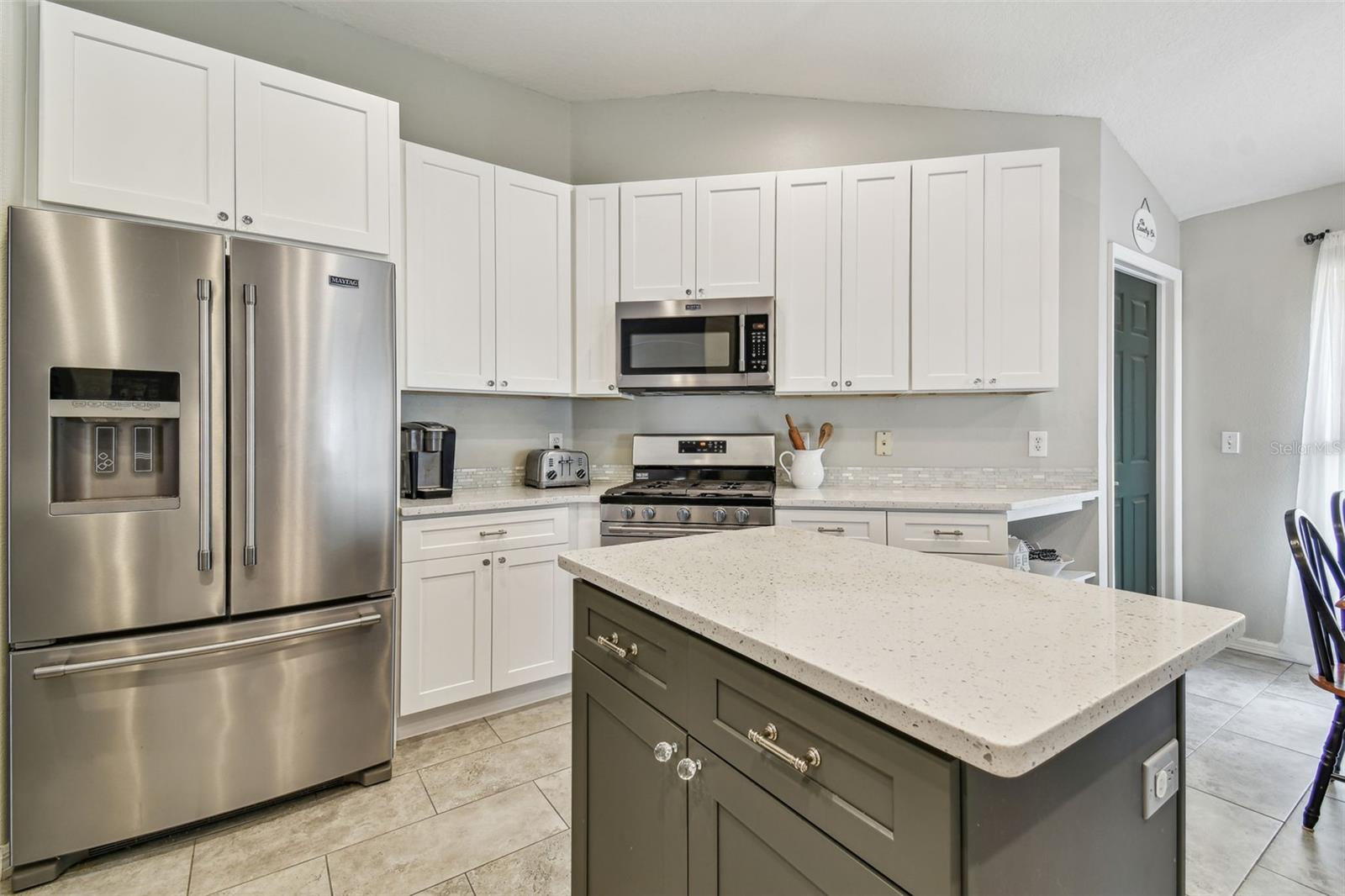 Beautiful, sought-after three bedroom PLUS den home in popular Meadow Pointe. Open floor plan with tall ceilings and plenty of windows create a light and bright atmosphere. The large kitchen has been fully renovated and upgraded to feature white 42" shaker-style cabinetry, quartz countertops, tile backsplash, stainless steel undermount sink with one touch faucet, Maytag stainless steel appliances to include French door refrigerator, built-in microwave, dishwasher and five burner gas range. The kitchen also includes a large breakfast bar that can seat six, spacious casual dining area, recessed lights and pantry. Other upgrades to this lovely home include: 12x24 ceramic tile in kitchen, casual dining and second bathroom, quality laminate flooring in the great room, dining room, den/study, entry and hallway, upgraded vanity and shower tile in the second bathroom, decorative arches and niches and more. The primary bathroom features a double vanity, garden tub, walk-in shower, private water closet and spacious walk-in closet. Sit out on the enlarged and pavered lanai overlooking the private and fenced yard. Meadow Pointe is the Bay areas largest master-planned community featuring tremendous amenities including a swimming pool with water slide, splash pad, gym, playground, courts, sand volleyball plus walking, running and biking trails throughout the community. A-rated elementary, middle and high school within walking distance. A short drive to shopping, dining, recreation, USF, several area hospitals, Shoppes at Wiregrass, Premium Outlet Mall and a 30 minute drive to downtown Tampa. Pride of ownership is evident. Hurry!