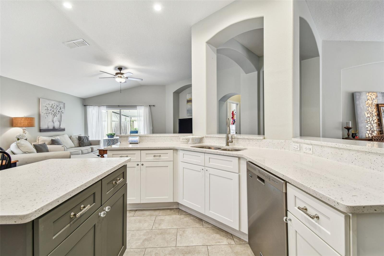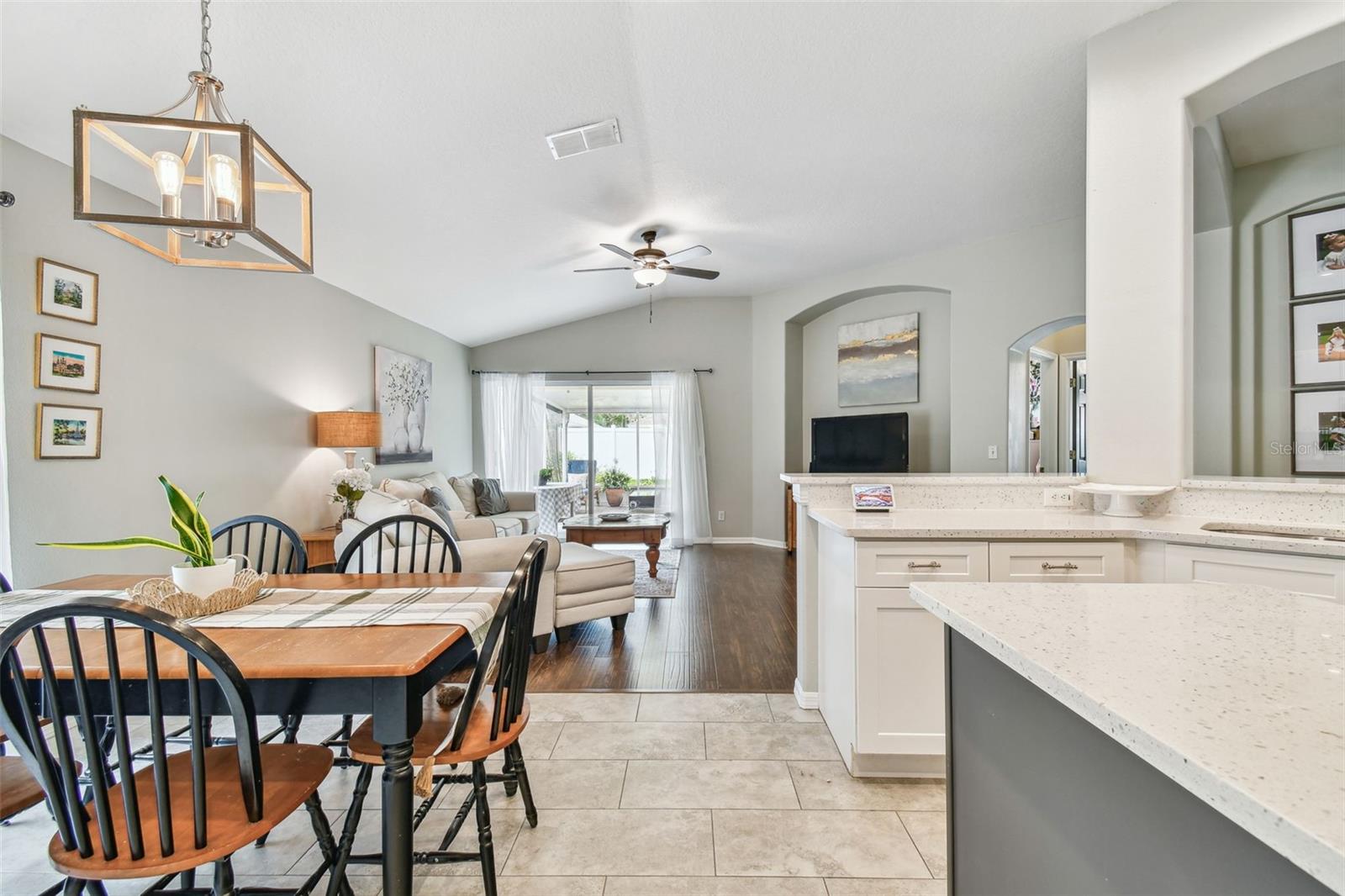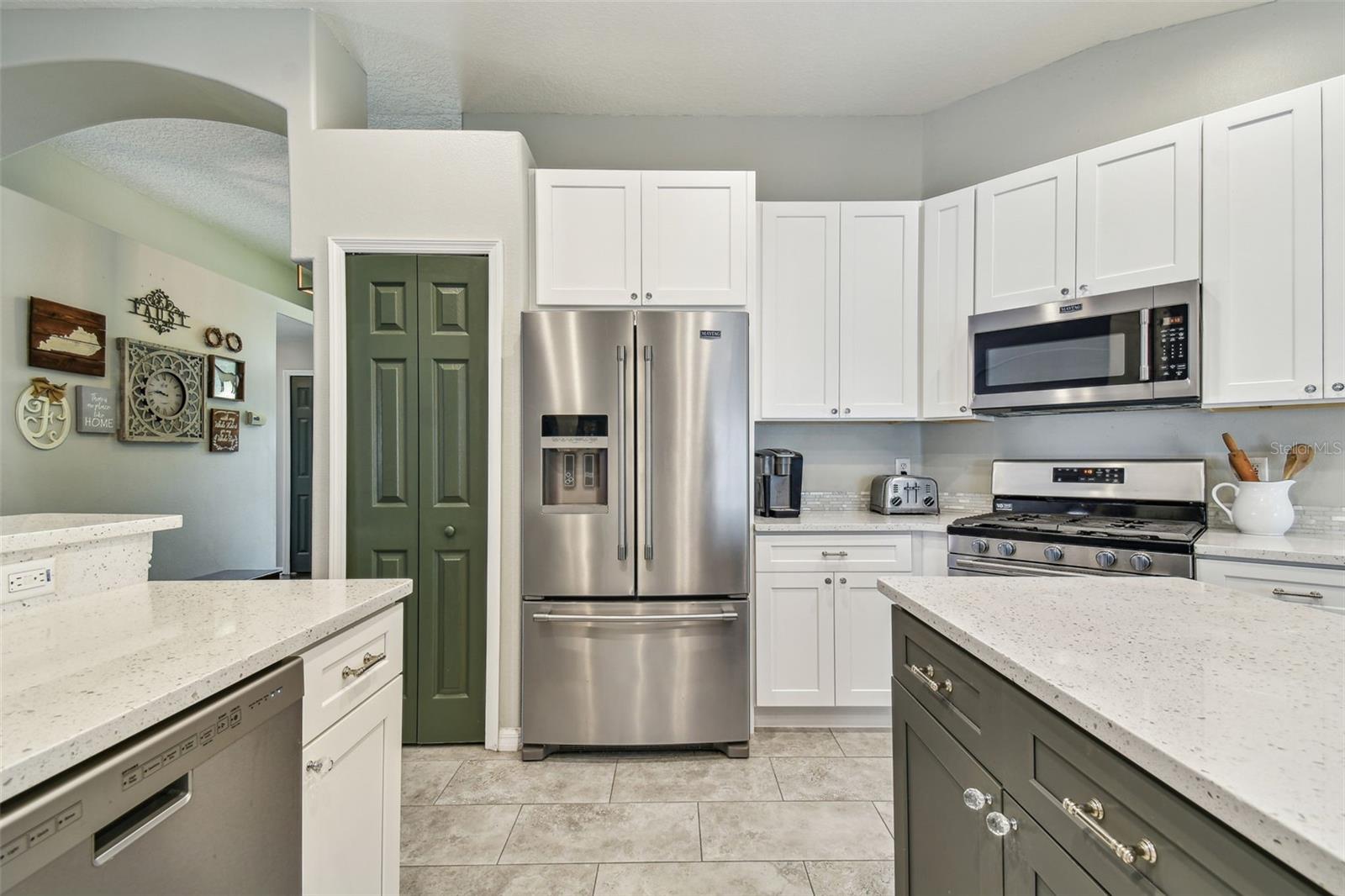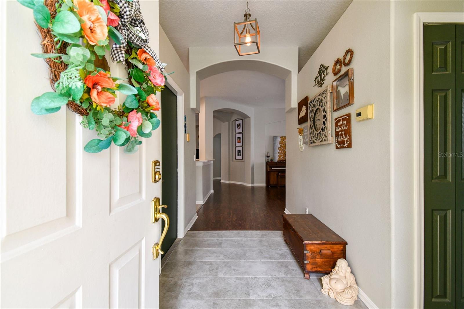 Beautiful, sought-after three bedroom PLUS den home in popular Meadow Pointe. Open floor plan with tall ceilings and plenty of windows create a light and bright atmosphere. The large kitchen has been fully renovated and upgraded to feature white 42" shaker-style cabinetry, quartz countertops, tile backsplash, stainless steel undermount sink with one touch faucet, Maytag stainless steel appliances to include French door refrigerator, built-in microwave, dishwasher and five burner gas range. The kitchen also includes a large breakfast bar that can seat six, spacious casual dining area, recessed lights and pantry. Other upgrades to this lovely home include: 12x24 ceramic tile in kitchen, casual dining and second bathroom, quality laminate flooring in the great room, dining room, den/study, entry and hallway, upgraded vanity and shower tile in the second bathroom, decorative arches and niches and more. The primary bathroom features a double vanity, garden tub, walk-in shower, private water closet and spacious walk-in closet. Sit out on the enlarged and pavered lanai overlooking the private and fenced yard. Meadow Pointe is the Bay areas largest master-planned community featuring tremendous amenities including a swimming pool with water slide, splash pad, gym, playground, courts, sand volleyball plus walking, running and biking trails throughout the community. A-rated elementary, middle and high school within walking distance. A short drive to shopping, dining, recreation, USF, several area hospitals, Shoppes at Wiregrass, Premium Outlet Mall and a 30 minute drive to downtown Tampa. Pride of ownership is evident. Hurry!