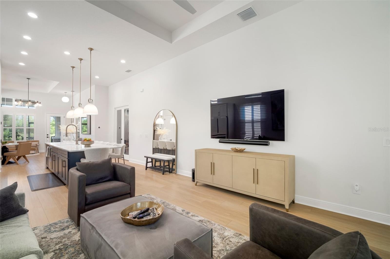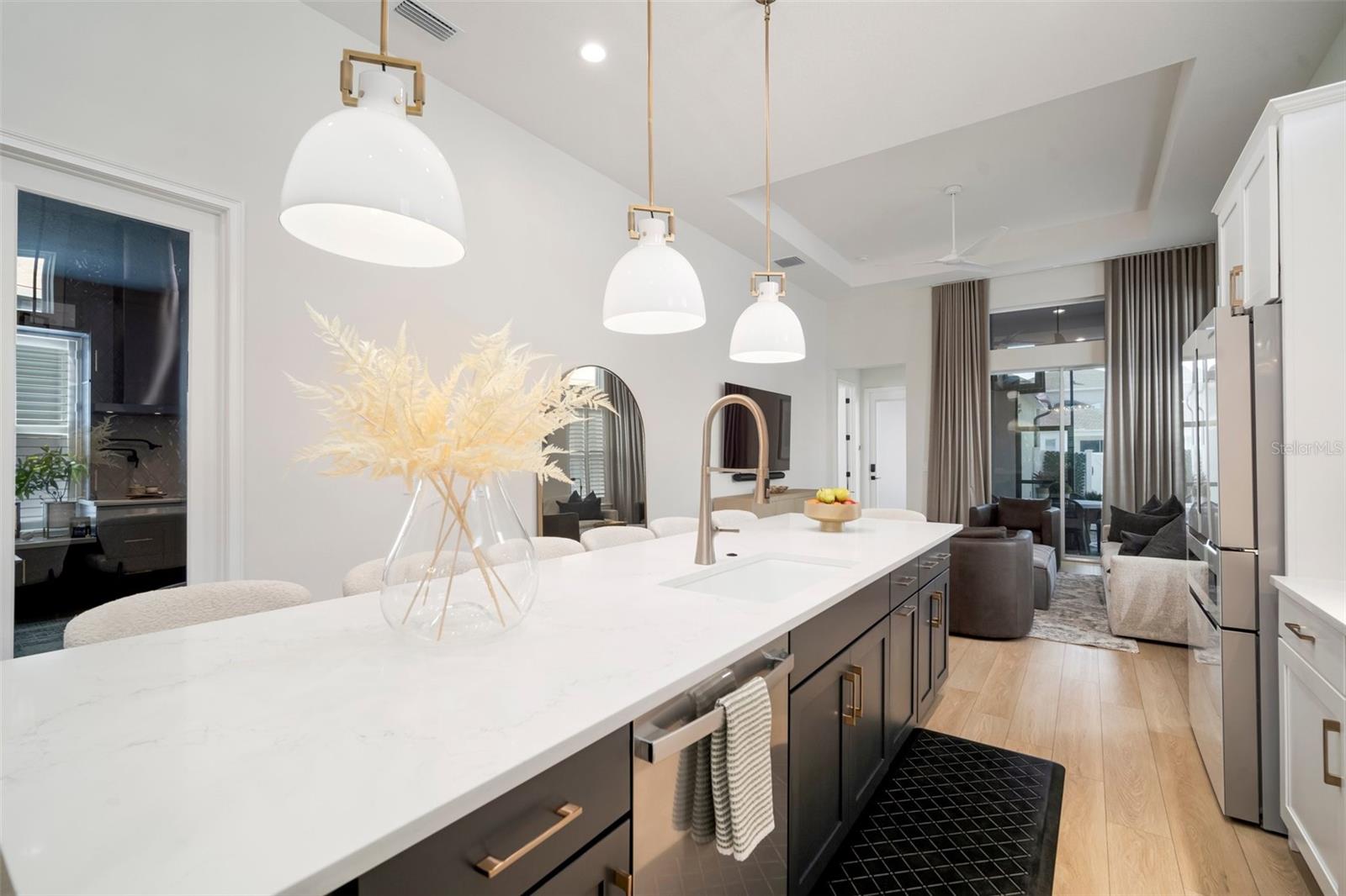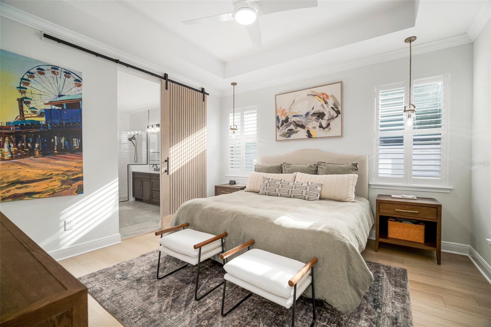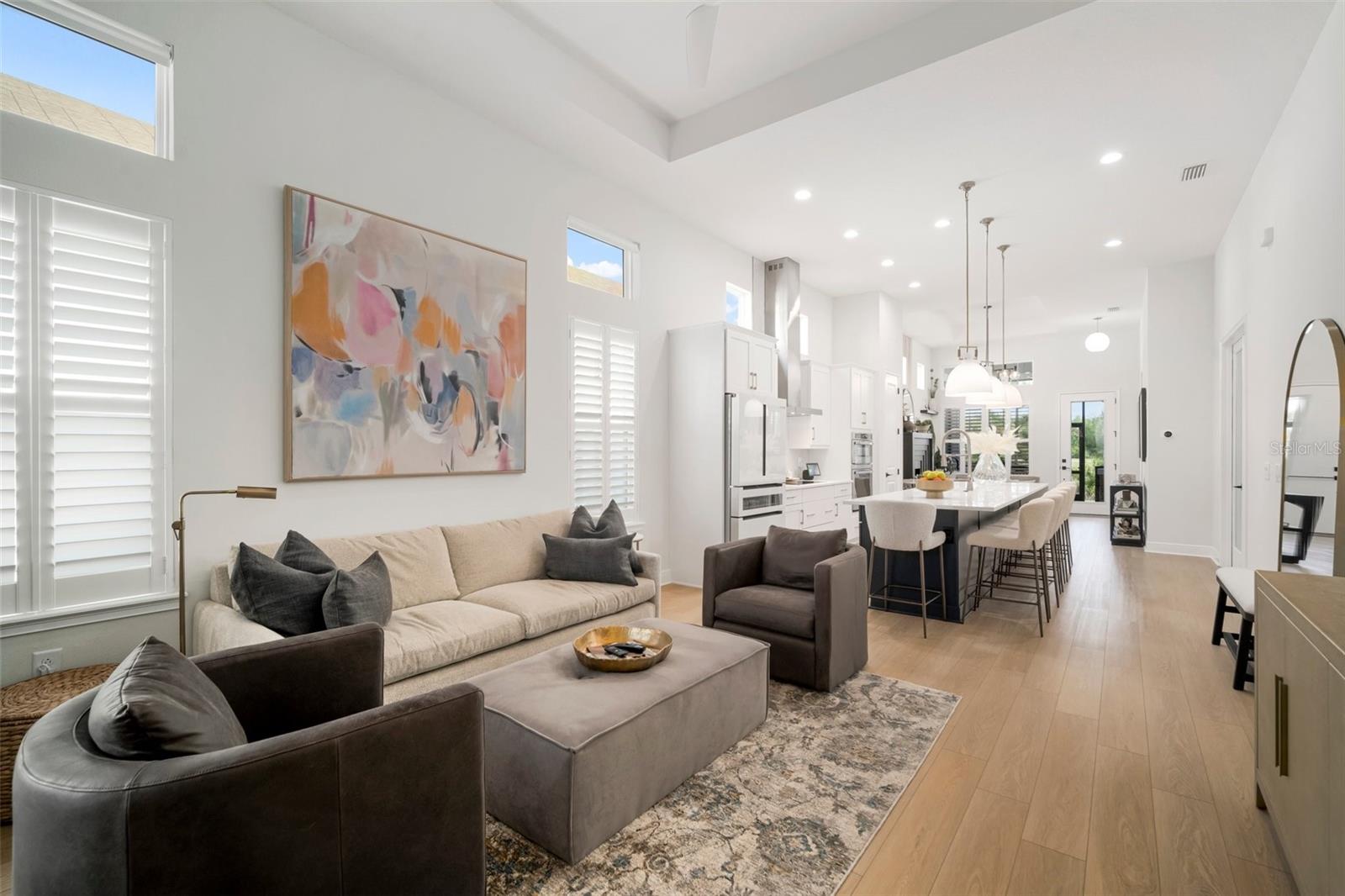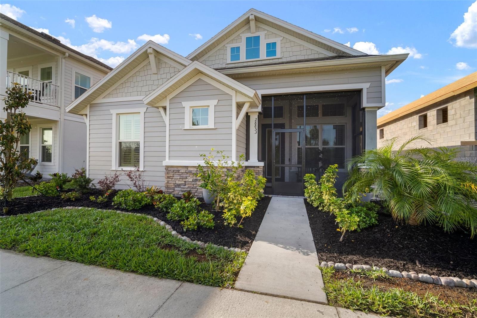 MOVE-IN READY! Priced Below Appraisal! Take advantage of over $80k in upgrades on a new construction home without the build time. This stunning ICI Homes one-story Lantana plan offers nearly 1,800 square feet of exceptional living space and is only 1 year old. From the moment you step inside, you’ll be captivated by the 12-foot ceilings in the main living areas, complemented by transom windows that bathe the home in warm Florida sunlight. Tray ceilings in the great room, flex space, and owner’s suite elevate the elegance of the design. The deluxe kitchen is a chef’s dream, featuring an oversized island, waterfall quartz countertops, 42” cabinets, a cooktop with a pot filler, a double oven and convection microwave, and under-cabinet lighting. Custom pull-out shelving throughout adds convenience and style, while the Bosch refrigerator completes this beautiful space. The owner’s suite provides a luxurious retreat with its spacious layout, custom barn door entry to the primary bathroom, double vanity sinks, and a spa-inspired walk-in shower with upgraded glass walls. Relaxation continues outdoors with the extended covered lanai and screened-in front porch, perfect for enjoying Florida evenings. Additional features include a Bio Flame fireplace, accent wall in the secondary bedroom, upgraded lighting fixtures, and automated blinds with floor-to-ceiling window treatments and plantation shutters. Storage is abundant, with custom closets throughout the home, built-in cabinetry in the office, secondary bedroom, and dining area, as well as custom cabinetry and a storage ladder system in the laundry room. Practical upgrades such as an EV charging-ready setup, garage shelving, water softener, vinyl privacy fence, and home warranty further enhance your peace of mind. Community amenities include a pool, playground, and dog park, while the home’s location in Persimmon Park, Wesley Chapel, ensures access to top-notch shopping, dining, entertainment, schools, and medical facilities. This incredible home is ready for you to move in and make it your own—don’t miss out on this rare gem!