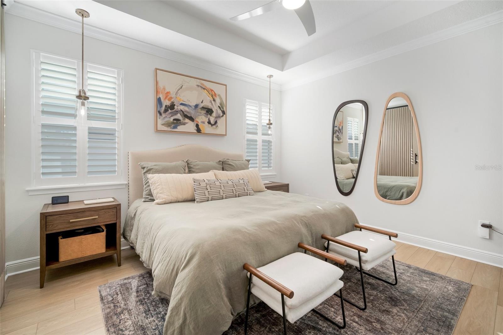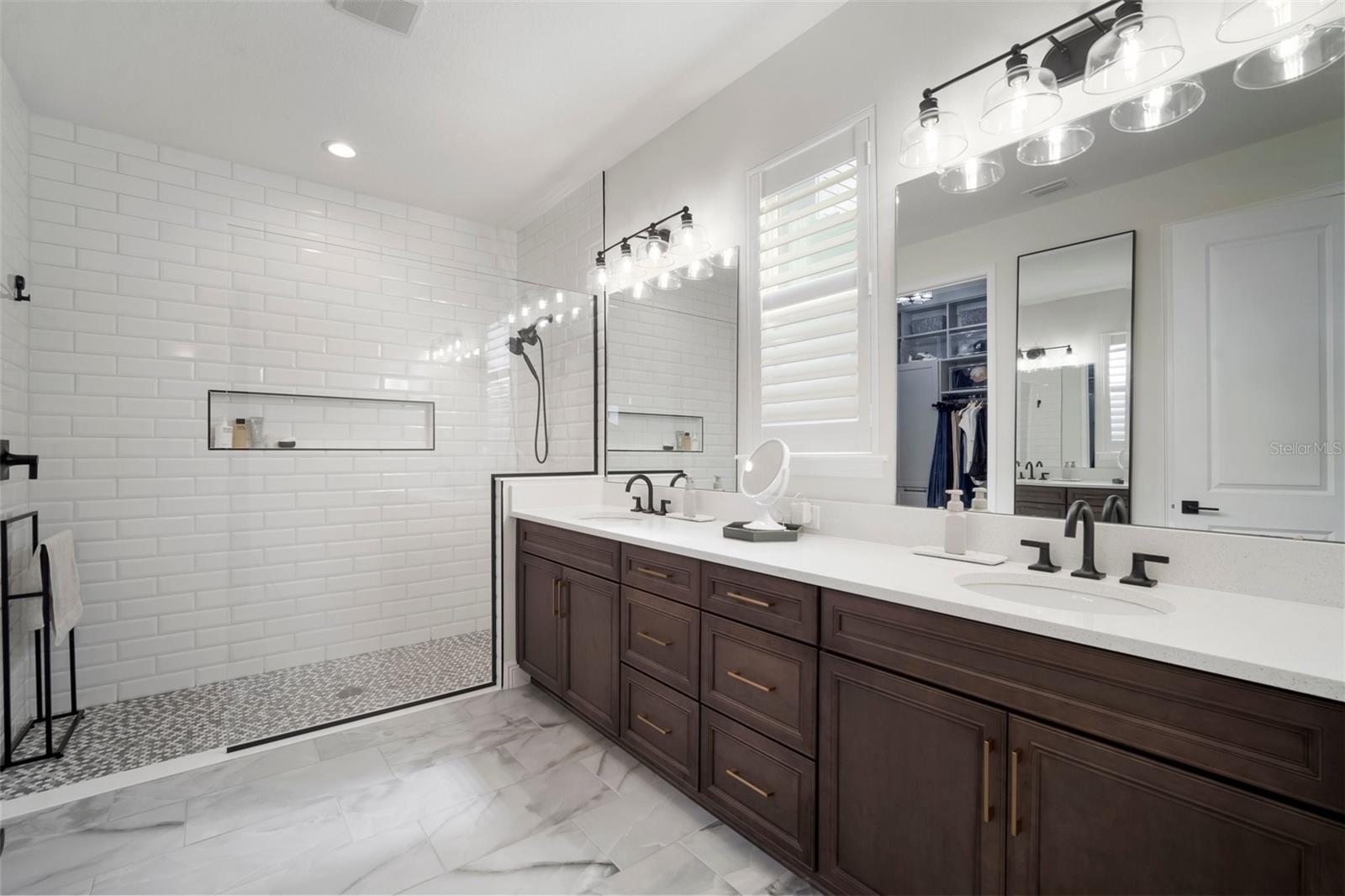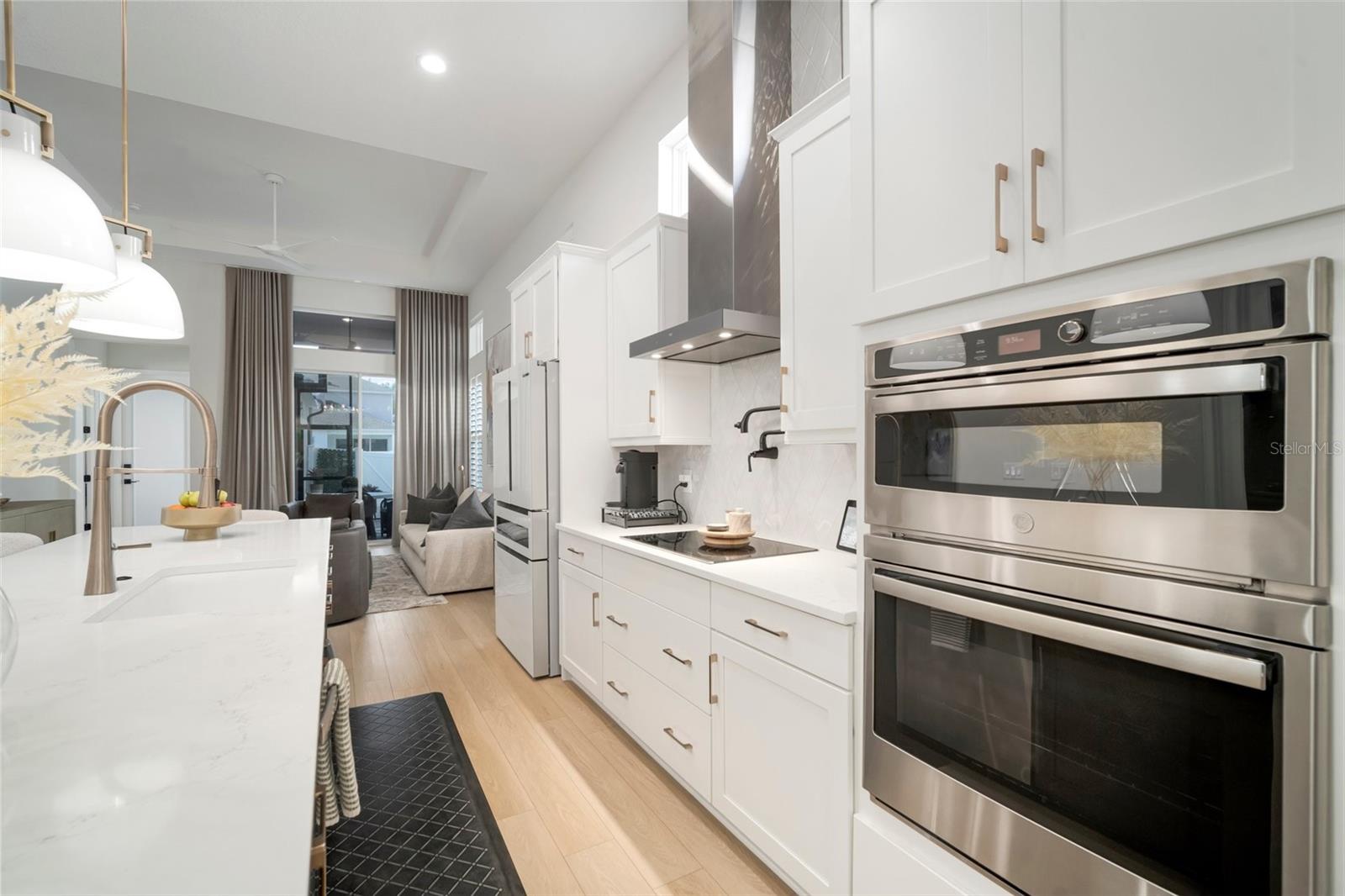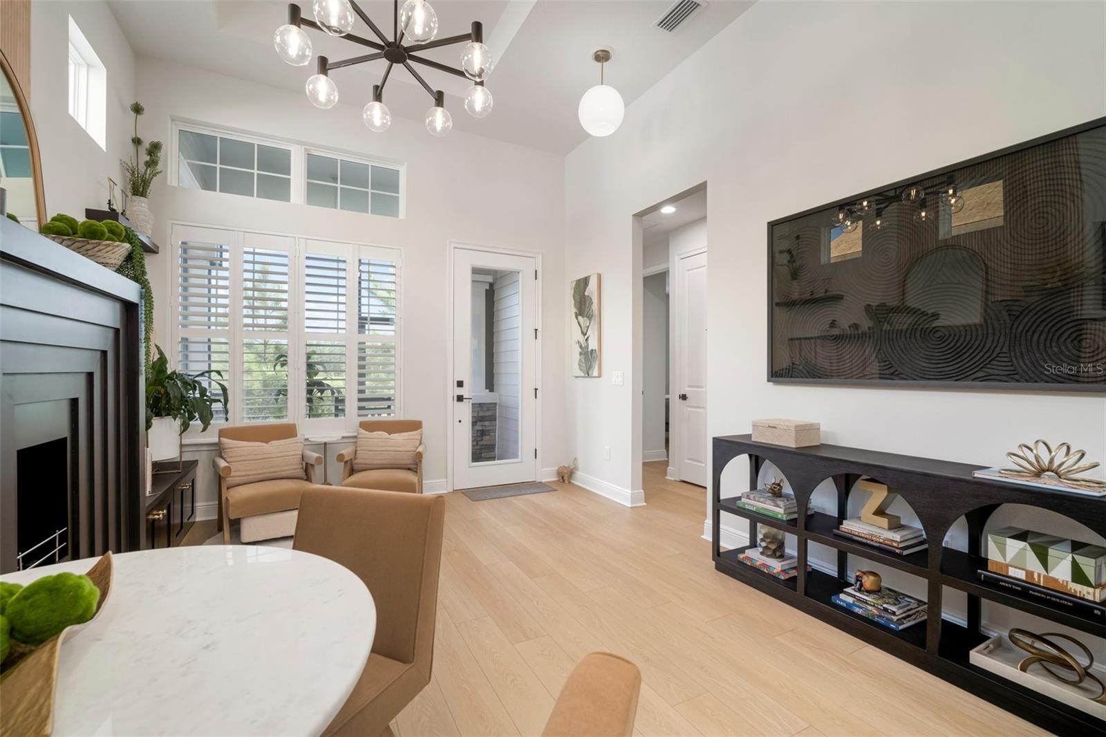 MOVE-IN READY! Priced Below Appraisal! Take advantage of over $80k in upgrades on a new construction home without the build time. This stunning ICI Homes one-story Lantana plan offers nearly 1,800 square feet of exceptional living space and is only 1 year old. From the moment you step inside, you’ll be captivated by the 12-foot ceilings in the main living areas, complemented by transom windows that bathe the home in warm Florida sunlight. Tray ceilings in the great room, flex space, and owner’s suite elevate the elegance of the design. The deluxe kitchen is a chef’s dream, featuring an oversized island, waterfall quartz countertops, 42” cabinets, a cooktop with a pot filler, a double oven and convection microwave, and under-cabinet lighting. Custom pull-out shelving throughout adds convenience and style, while the Bosch refrigerator completes this beautiful space. The owner’s suite provides a luxurious retreat with its spacious layout, custom barn door entry to the primary bathroom, double vanity sinks, and a spa-inspired walk-in shower with upgraded glass walls. Relaxation continues outdoors with the extended covered lanai and screened-in front porch, perfect for enjoying Florida evenings. Additional features include a Bio Flame fireplace, accent wall in the secondary bedroom, upgraded lighting fixtures, and automated blinds with floor-to-ceiling window treatments and plantation shutters. Storage is abundant, with custom closets throughout the home, built-in cabinetry in the office, secondary bedroom, and dining area, as well as custom cabinetry and a storage ladder system in the laundry room. Practical upgrades such as an EV charging-ready setup, garage shelving, water softener, vinyl privacy fence, and home warranty further enhance your peace of mind. Community amenities include a pool, playground, and dog park, while the home’s location in Persimmon Park, Wesley Chapel, ensures access to top-notch shopping, dining, entertainment, schools, and medical facilities. This incredible home is ready for you to move in and make it your own—don’t miss out on this rare gem!