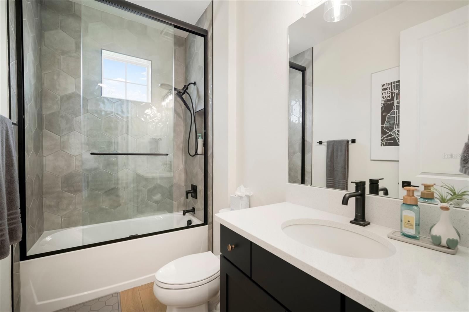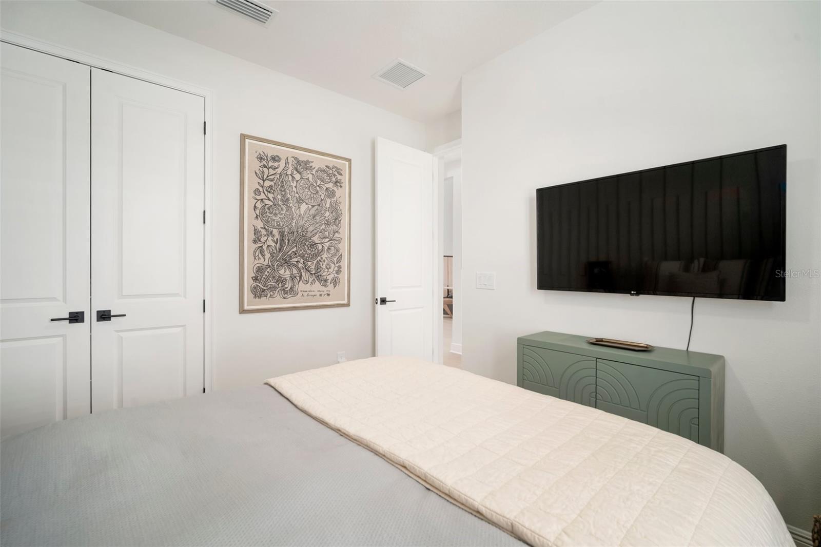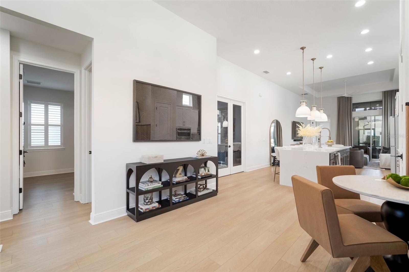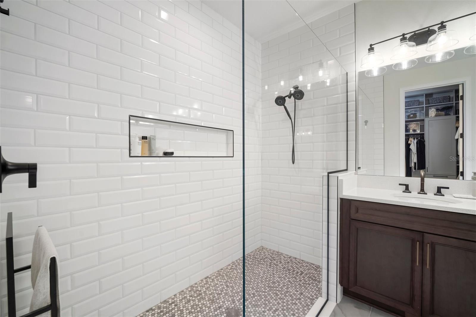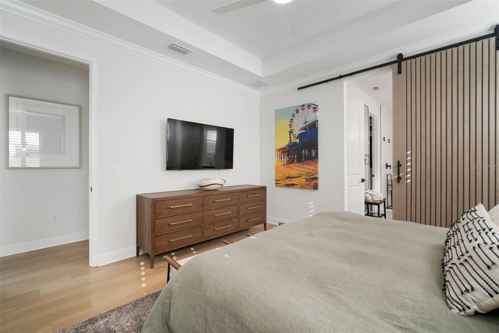 MOVE-IN READY! Priced Below Appraisal! Take advantage of over $80k in upgrades on a new construction home without the build time. This stunning ICI Homes one-story Lantana plan offers nearly 1,800 square feet of exceptional living space and is only 1 year old. From the moment you step inside, you’ll be captivated by the 12-foot ceilings in the main living areas, complemented by transom windows that bathe the home in warm Florida sunlight. Tray ceilings in the great room, flex space, and owner’s suite elevate the elegance of the design. The deluxe kitchen is a chef’s dream, featuring an oversized island, waterfall quartz countertops, 42” cabinets, a cooktop with a pot filler, a double oven and convection microwave, and under-cabinet lighting. Custom pull-out shelving throughout adds convenience and style, while the Bosch refrigerator completes this beautiful space. The owner’s suite provides a luxurious retreat with its spacious layout, custom barn door entry to the primary bathroom, double vanity sinks, and a spa-inspired walk-in shower with upgraded glass walls. Relaxation continues outdoors with the extended covered lanai and screened-in front porch, perfect for enjoying Florida evenings. Additional features include a Bio Flame fireplace, accent wall in the secondary bedroom, upgraded lighting fixtures, and automated blinds with floor-to-ceiling window treatments and plantation shutters. Storage is abundant, with custom closets throughout the home, built-in cabinetry in the office, secondary bedroom, and dining area, as well as custom cabinetry and a storage ladder system in the laundry room. Practical upgrades such as an EV charging-ready setup, garage shelving, water softener, vinyl privacy fence, and home warranty further enhance your peace of mind. Community amenities include a pool, playground, and dog park, while the home’s location in Persimmon Park, Wesley Chapel, ensures access to top-notch shopping, dining, entertainment, schools, and medical facilities. This incredible home is ready for you to move in and make it your own—don’t miss out on this rare gem!