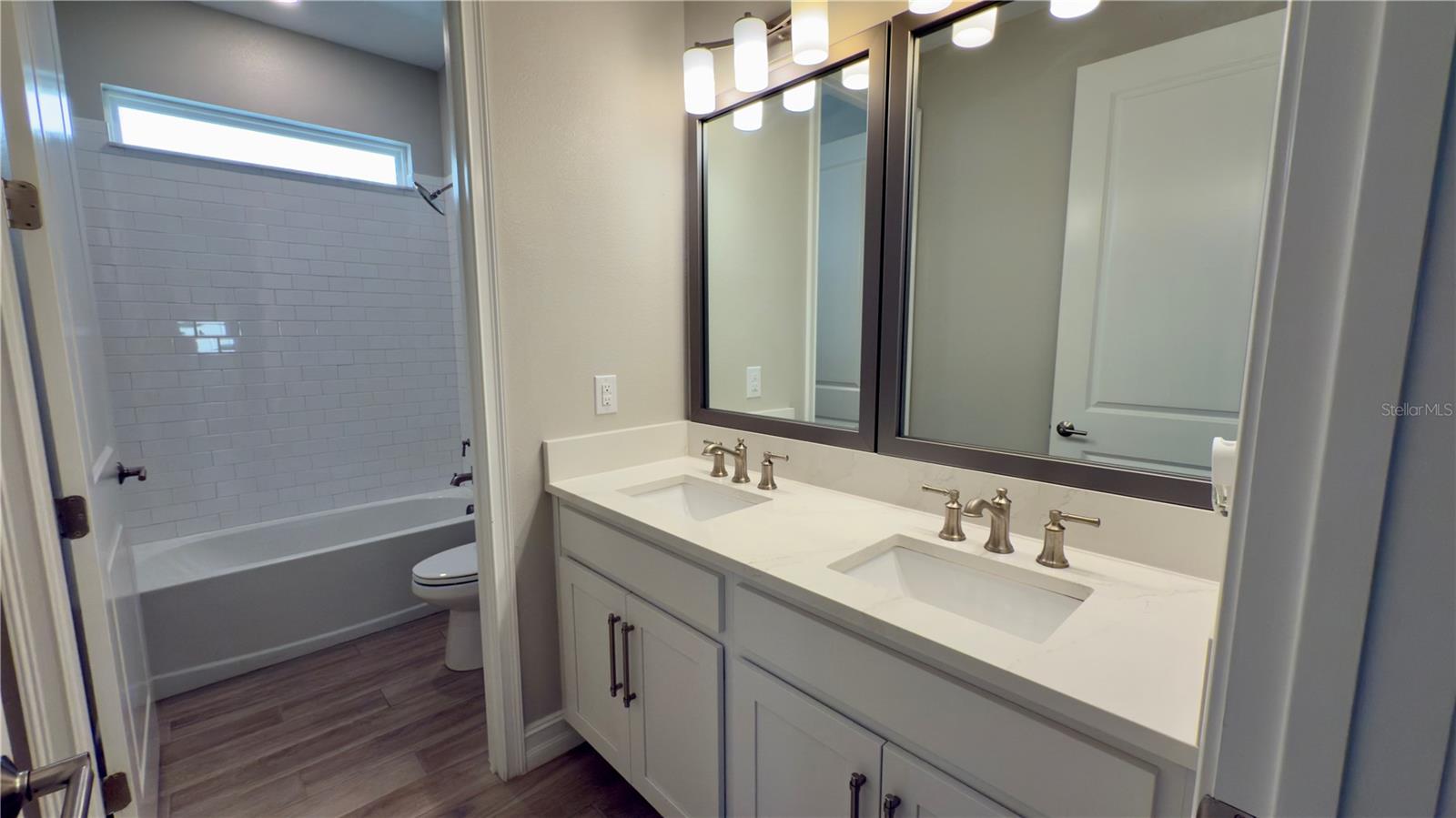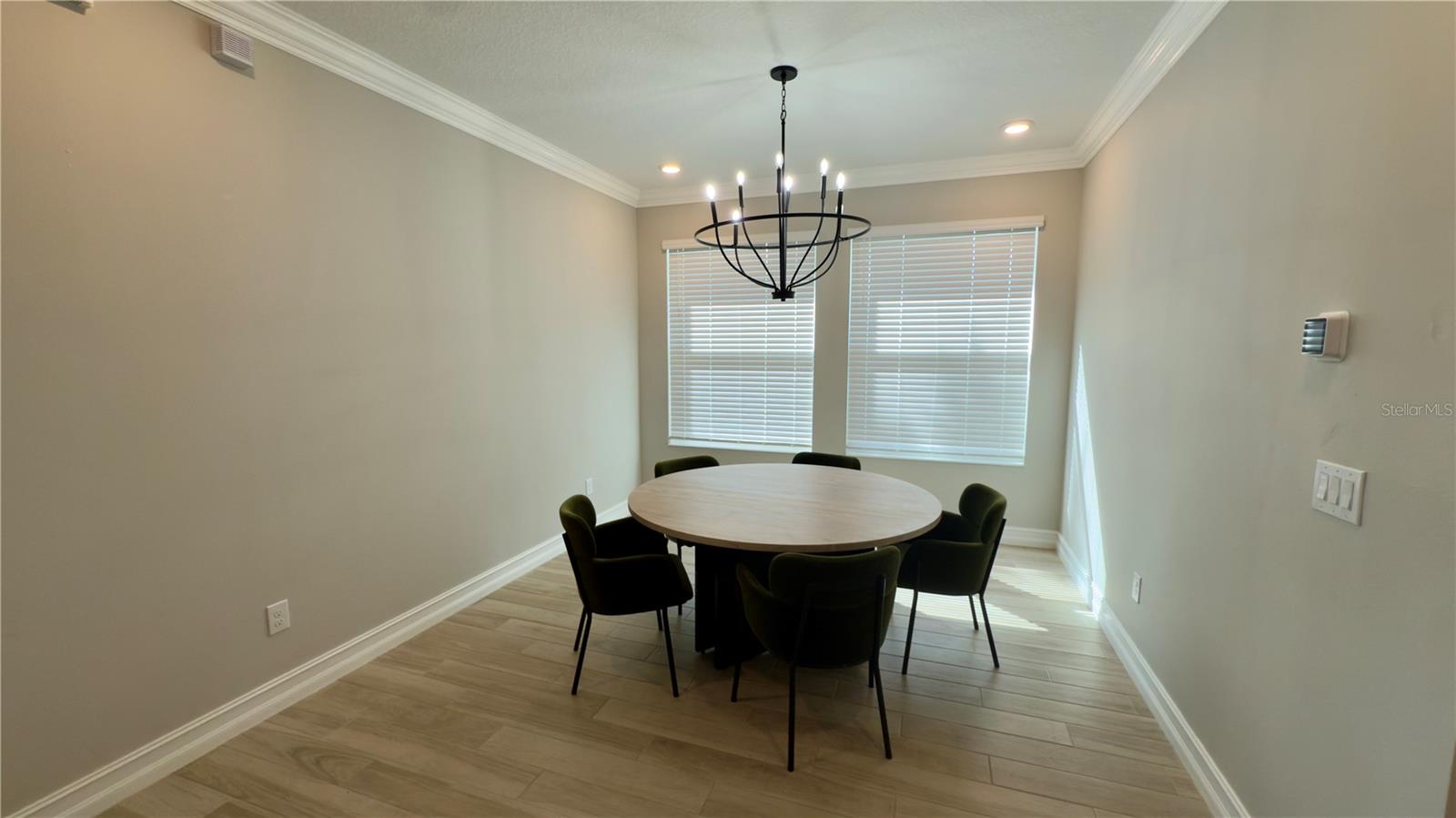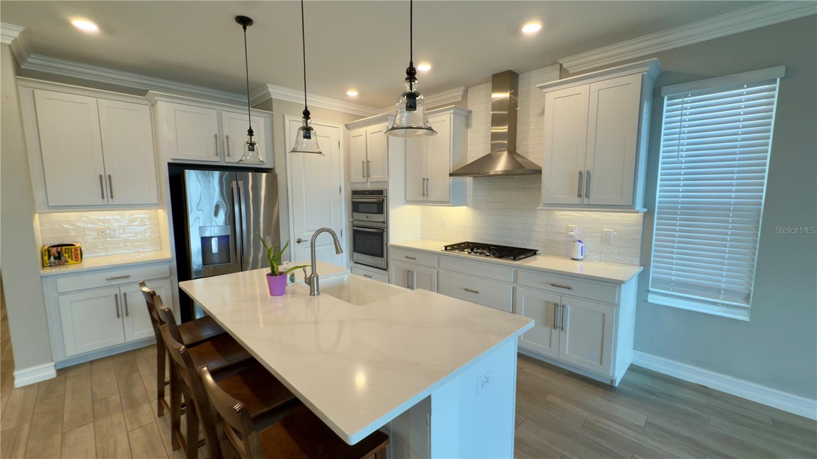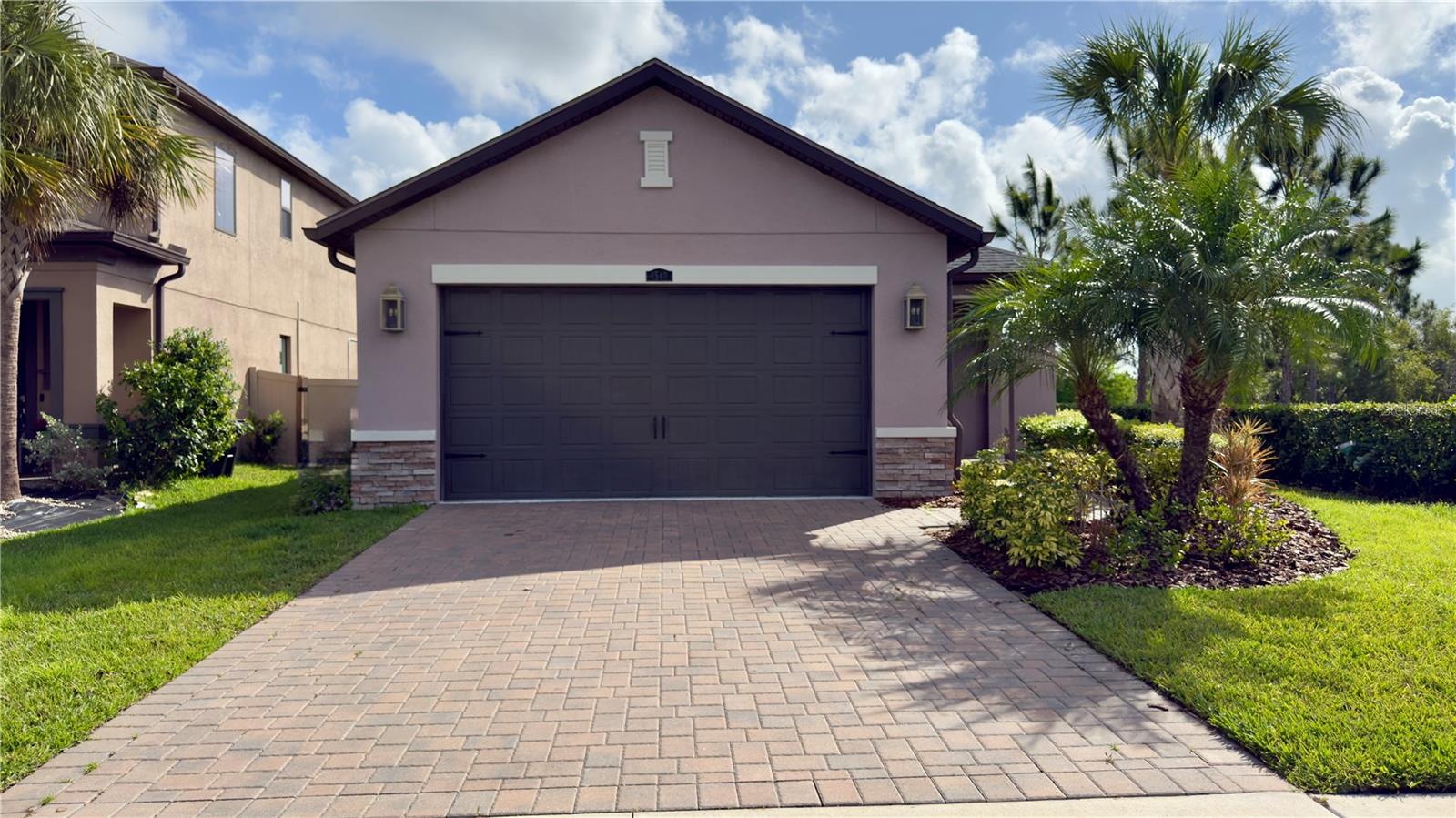 Welcome to this modern contemporary 3 bedroom, 2-bathroom home nestled on a beautiful corner lot located in the highly sought community of Estancia. This gorgeous home overlooks a serene conservation pond for relaxing privacy. As you walk up the paver line driveway up to the covered front door, the decorative glass front door opens to the bright & open floor plan. The kitchen features stainless steel appliances, kitchen island with a large deep sink, quartz countertops, under mount cabinet lighting, designed backsplash, closet pantry with built in shelving & pendant lights. The kitchen+ great room combo is perfect for entertaining. The great room has 3 way sliding doors that open up to a large 16X10 screened lanai with a view looking out to the pond. Master bathroom comes with dual vanities/sinks, glass seamless large walk-in shower with custom bench seat & walk in closet with built in shelving. Home is a split plan. Other features include wood/vinyl flooring throughout the home, lots of crown molding & tray ceilings & hurricane shutters. Community features include a luxury community pool, kiddie pool, splash zone, clubhouse, fitness center, dog park, walking trail, playground & tennis court. Close to the schools, lots of shopping areas including 3 malls, restaurants, hospitals & mutiple entertainment places. Home is in move in condition.