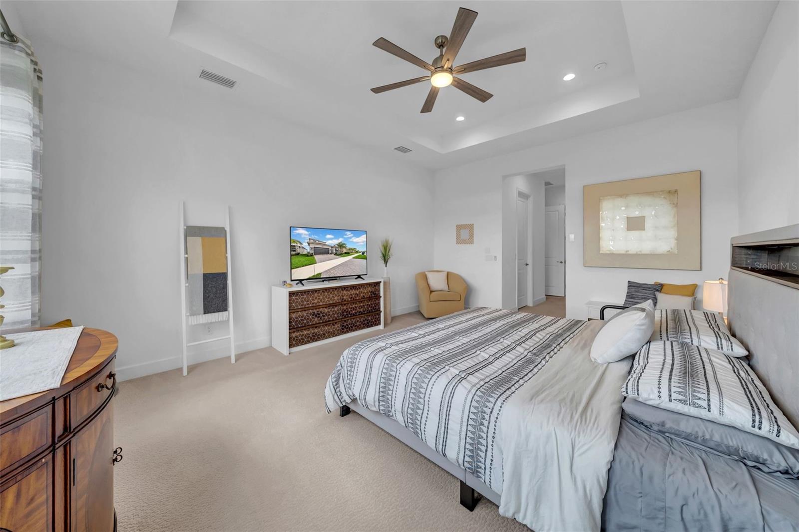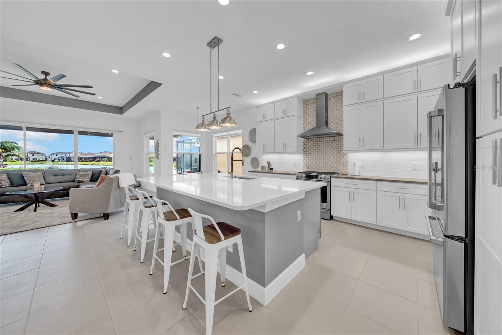 Now offering $10,000 in seller concessions! Welcome to this stunning 4-bedroom, 3.5-bathroom home in the highly sought-after Winding Ridge community in Wesley Chapel. Situated on a premium lot perfect for a pool with serene water views, this home offers an open-concept layout designed for both comfortable living and grand entertaining. The heart of this home is the gourmet kitchen, featuring an oversized island, quartz countertops, stainless steel appliances, and custom cabinetry. The spacious living and dining areas flow seamlessly, enhanced by expansive windows that capture breathtaking waterfront views. The luxurious owner’s suite is a private retreat, boasting dual walk-in closets, a spa-like ensuite bathroom with dual vanities, a soaking tub, and a walk-in shower. A guest suite with an ensuite bathroom provides additional comfort, ideal for multi-generational living or hosting visitors. A standout feature of this home is the private upstairs bonus room, offering flexibility as a media room, playroom, or home office. The covered lanai is perfect for unwinding, with panoramic water views creating an idyllic setting for morning coffee or evening relaxation. The Winding Ridge community offers a resort-style clubhouse with a state-of-the-art fitness center, an expansive pool with cabanas and a splash park, lighted tennis courts and pickleball courts, and 24-hour manned gated entry for privacy and security. With no CDD fees and a low HOA that includes exterior landscaping, residents enjoy luxury living. Conveniently located near The Shops at Wiregrass, Tampa Premium Outlets, dining, golf courses, and entertainment venues, this home provides easy access to I-75, Downtown Tampa, Tampa International Airport, and local beaches. The community is also close to Advent Health Wesley Chapel, BayCare Hospital, Pasco Hernando State College, and top-rated schools. Don’t miss the chance to own this exceptional home in one of Wesley Chapel’s finest communities. Schedule your private tour today!