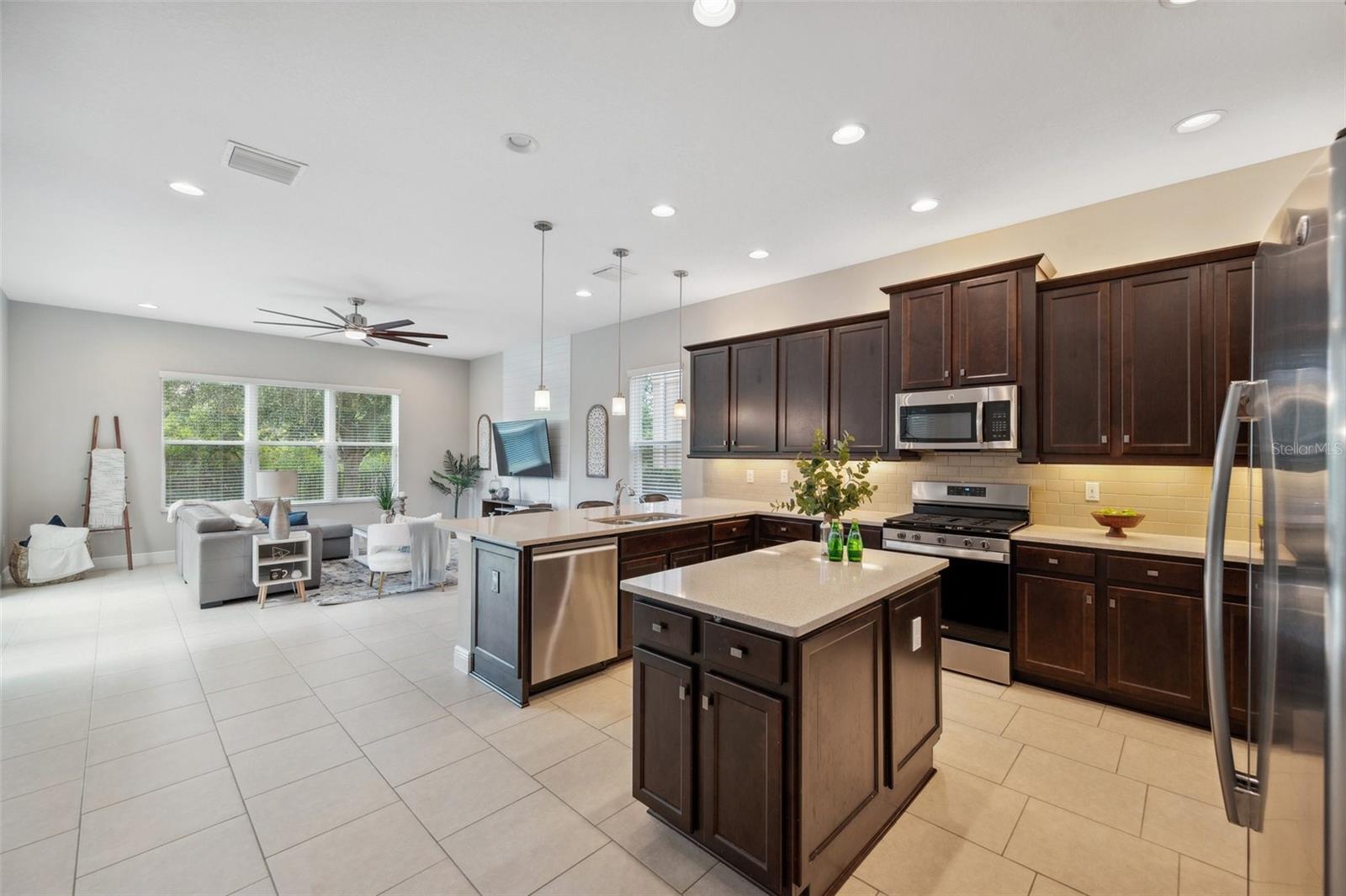 One or more photo(s) has been virtually staged. Discover a home that truly checks every box! It's spacious, stylish, & perfectly positioned in one of Wesley Chapel’s most sought-after gated communities. Located in The Ridge at Wiregrass Ranch, this exceptional residence offers nearly 4,100 square feet of living space (over 5,000 sq ft total) designed for comfort, connection, & everyday ease. With 5 bedrooms, 5 full bathrooms, a flex room (ideal for a 6th bedroom, home office, or gym), & an expansive loft, there’s room for everyone to live, work, & play in comfort. Situated on a private conservation homesite, the property greets you with a brick-paved driveway & walkway, lush landscaping, & stunning double glass-inlay front doors that create a grand & inviting first impression. Inside, the main level features offset tile flooring throughout, soaring ceilings, & abundant natural light. The flex room is positioned next to a full bath & a walk-in storage closet which could be perfect for guests, multi-generational living, or work-from-home flexibility. The formal living room is anchored by a custom stone-accented fireplace, creating a cozy, elegant space for gathering or relaxing. The formal dining room is finished with wainscoting detail, adding charm & architectural interest. The chef’s kitchen is the heart of the home, complete with quartz countertops, stylish subway tile backsplash, a center island, breakfast bar, casual dining area, & a brand new natural gas range & dishwasher. The open concept layout flows seamlessly into the spacious family room, designed to accommodate large gatherings or quiet nights in. Upstairs, you’ll find an engineered hardwood staircase with wrought iron spindles, leading to the beautifully updated second floor featuring luxury vinyl plank flooring throughout. The oversized loft offers endless potential; media room, game room, home gym, play room. The choice is yours. The home features three en suite bedrooms upstairs, including the luxurious primary suite with double door entry, spa style bath, & walk-in closets. Two additional bedrooms share a fifth full bath, giving everyone their own private space. Notable upgrades include: Brand-new upstairs A/C unit, Whole-home rain gutters, Custom Stone Accented Fire Place, Wainscoting, Shiplap Accent Wall, Double Door Glass Inlay Doors, Engineered hardware staircase with wrought iron spindles. Newer Luxury Vinyl Plank Flooring completes the Second Level, Custom laundry room with Quartz Counters, Cabinetry & a Farmhouse sink, Interior Freshly Painted, Screened patio with peaceful conservation views, perfect for morning coffee or evening wine. All of this just a short stroll to the community’s show stopping clubhouse, featuring a resort-style zero-entry pool, lap pool, clay tennis courts, pickleball, basketball, sand volleyball, waterslide, splash zone, fitness center, playground, game room, & gathering spaces for events. Located just minutes from top-rated Wiregrass schools, The Shops at Wiregrass, AdventHealth, & I-75. This home delivers not only space & function, but the lifestyle you’ve been searching for. This is more than a home! It’s where your next chapter begins. Schedule your private tour today. Lawn care Included in HOA. Please video walk-through & 3D Tour.