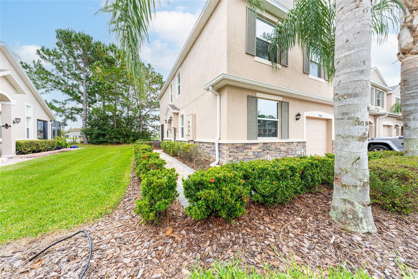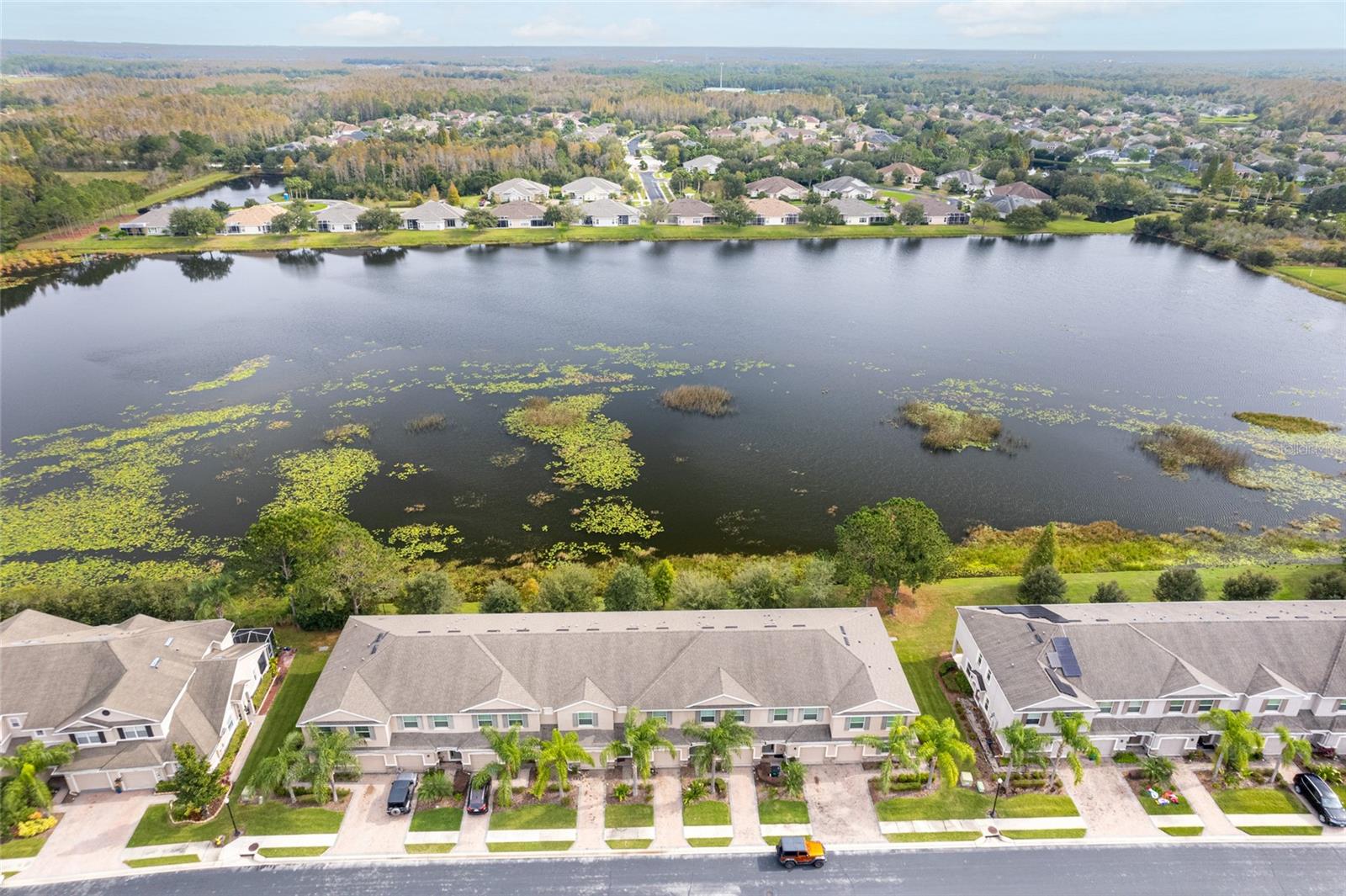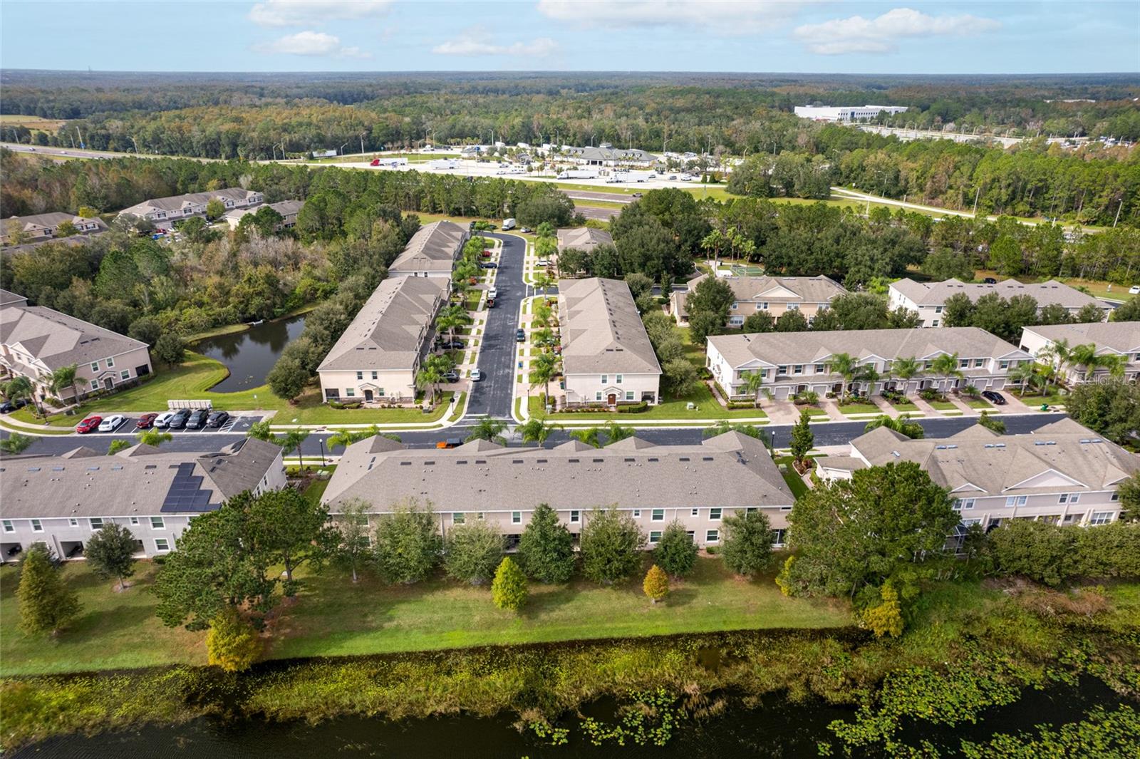 Largest End Unit, with a Main floor Office ( can be converted into a 4th bedroom) 2016 built in the GATED community of Seven Oaks! Priced to sell. This corner home backs on to a POND and boasts over 2,000 square feet of living space featuring a main floor den, upstairs loft and 3 generous sized bedrooms, 2 ½ baths. Bright open concept layout with a welcoming foyer that greets you to a separate Living & Dining area, screened Lanai, and large separate Office. Enjoy beautiful Florida sunsets in your covered private lanai backing on to a pond. The modern kitchen overlooks the family room and boasts stainless steel appliances, breakfast bar, granite countertops, and a large walk in pantry. Upstairs opens up to a spacious LOFT area, utility closet with washer/dryer included and three bedrooms that are a perfect size with generous sized closets. The secondary bathroom is complete with tile floors, shower/tub combo, and vanity sink with granite.The Owner's suite has more than enough space for oversized King-size furniture and a massive walk-in closet. The en-suite master has a dual vanity sink, linen closet, large walk-in shower complete with an elongated window and separate water closet. Upgraded and ready to move in. Dont miss. Book your showing today. Highly sought after Seven Oaks community with amenities including a 17 Acre Sports Complex with 24 hour Fitness Room, Cafe, Resort Style Swimming Pool with Water Slide, Toddler Pool, Theater Room, Playground Tennis and Basketball Courts, Soccer Field Close to restaurants, shopping, major highways, outlet mall, entertainment and hospitals. Seven Oaks is located conveniently across from Advent Heath Hospital, and next to the Baycare Hospital. Call us or call your agent to book a showing. Don't miss this one! **One or more photo(s) has been virtually staged.