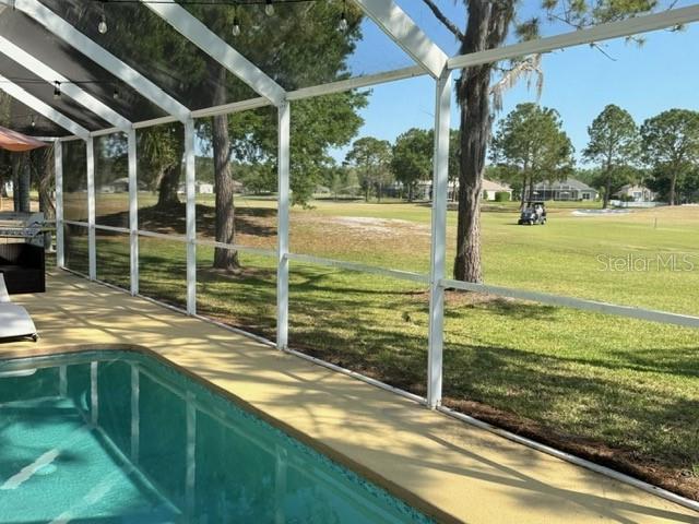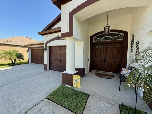 Florida Living at Its Finest! This stunning 4-bedroom, 3-bathroom plus office home is a true gem, boasting a spacious 3-car garage—one bay thoughtfully converted into a private office with AC and workshop area. From the moment you arrive, the large driveway sets the tone for the elegance within. Step inside to discover high ceilings and bamboo and tile flooring throughout. The spacious kitchen features 42" cabinets, stainless-steel appliances, an oversized pantry, breakfast bar, built-in desk, and an open floor plan perfect for entertaining. Flow seamlessly into the grand family room, framed by double sliding doors that provide breathtaking views of the golf course and sparkling pool. The primary suite is a sanctuary, boasting split vanities, a tall shower, soaking tub, sitting area, and a custom California walk-in closet. Sliding doors open directly onto the covered patio and lanai, complete with outdoor fans—an ideal spot for hosting guests or unwinding by the gorgeous screened-in pool overlooking the golf course fairway. This home is equipped with a water softener and is nestled within the desirable gated community of LEXINGTON OAKS offering resort-style amenities, including a Golf Club with a Bar & Grill, Clubhouse, Fitness Center, Playground, Parks, an 18-hole golf course, Tennis, Pickleball, Basketball, Volleyball, and Soccer. Just minutes from top shopping destinations, dining, and I-75, this exceptional home provides convenient access to the airport, downtown Tampa and Gulf beaches. This is an absolute must-see—don’t miss out on this incredible opportunity!