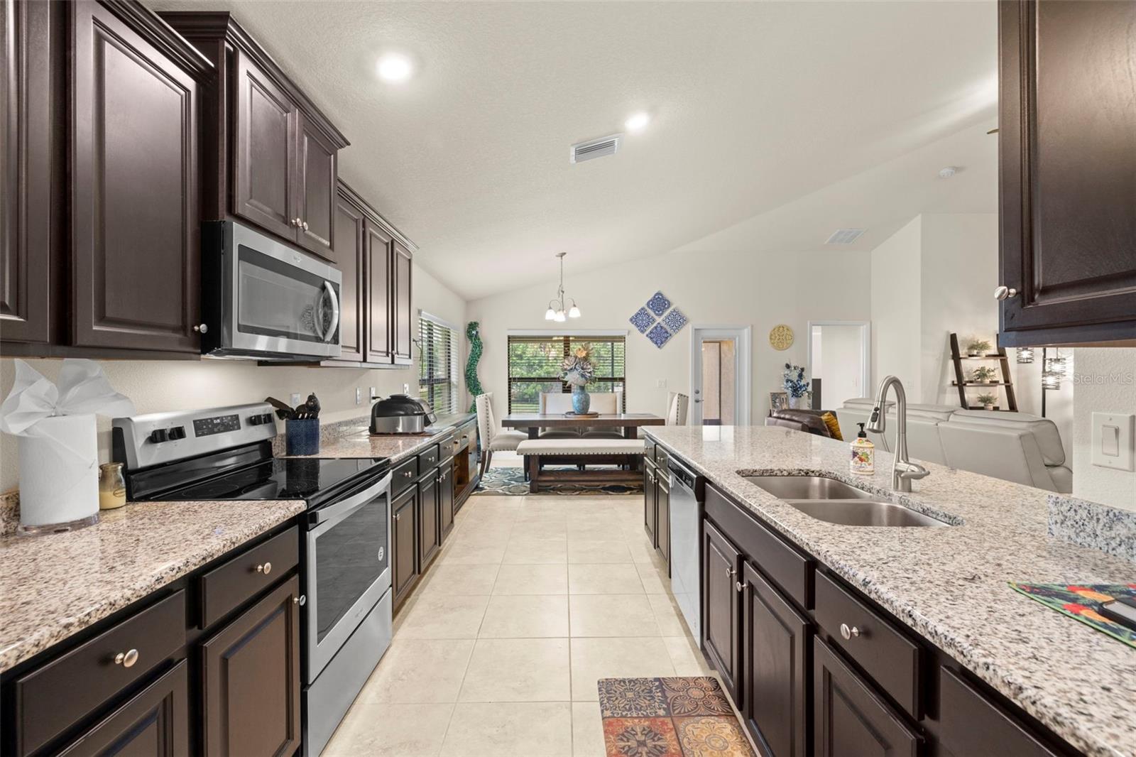 Welcome to this immaculately maintained MOVE-IN READY one story home! This STUNNING 3-Bedroom 2-Bathroom 3 Car Garage Home is situated on an oversized lot (.20+ Acre) in the desirable community of Country Walk in Wesley Chapel! This beautiful floor plan brings MODERN living combined with ample space and features vaulted and volume ceilings. You will appreciate the manicured landscaping and the cozy covered front porch~ The HOA fees are LOW and INCLUDE INTERNET and CABLE. This home offers a generous sized backyard great for any outdoor activities and fun! The kitchen showcases ample cabinet storage, STAINLESS STEEL Whirlpool Appliances, Granite Countertops & Center Island with Breakfast Bar. The Private Primary Suite is spacious and vibrant with TRAY CEILINGS, complete with a Garden Soaking Tub, separate shower with Glass Door Entry and Double-Sink Vanity. The master suite walk-in closet has EXPANSIVE STORAGE. Enjoy relaxing at the screened lanai overlooking the beautiful backyard space! Additional Features/Upgrades/Updates: Double Pane Windows, Window Blinds, Dual Basin Kitchen Stainless Sink with updated Faucet, Pantry Storage, Tray Ceiling, Ceiling Fans, Recessed Lighting, Full Sized Whirlpool Washer and Dryer, Rainbird Irrigation & Attic Ladder Access. Perfectly placed in the prime corner of Wesley Chapel’s Meadow Pointe Blvd and SR 54, this home offers living in a VIBRANT community, known for its convenient location and modern amenities to include: Clubhouse, 2 Pools, Fitness Center, Playground and Pavilion, Multi-Purpose Field, Dog Park, Basketball Court, Tennis and Pickleball Courts. Close to major highways like I-75 and I-275, making commutes easy and providing quick access to downtown Tampa. Residents enjoy a VARIETY of shopping, dining, and entertainment options with nearby destinations such as Wiregrass Mall, The Grove, KRATE at the Grove and Tampa Premium Outlets.
