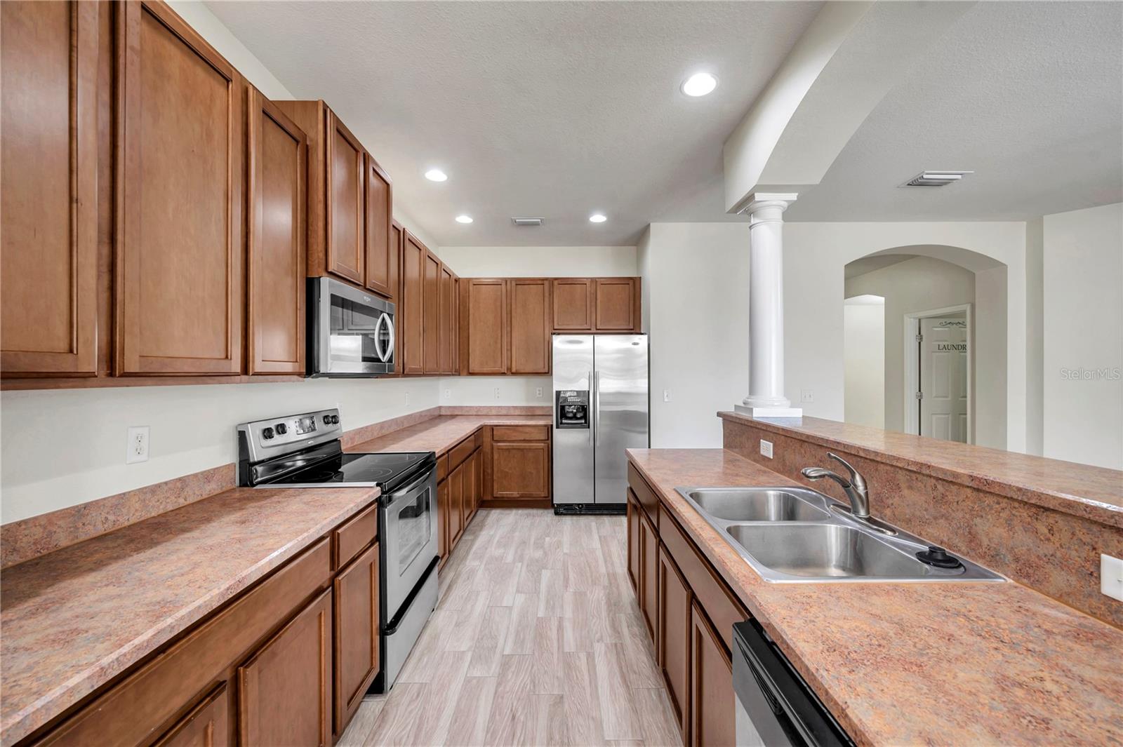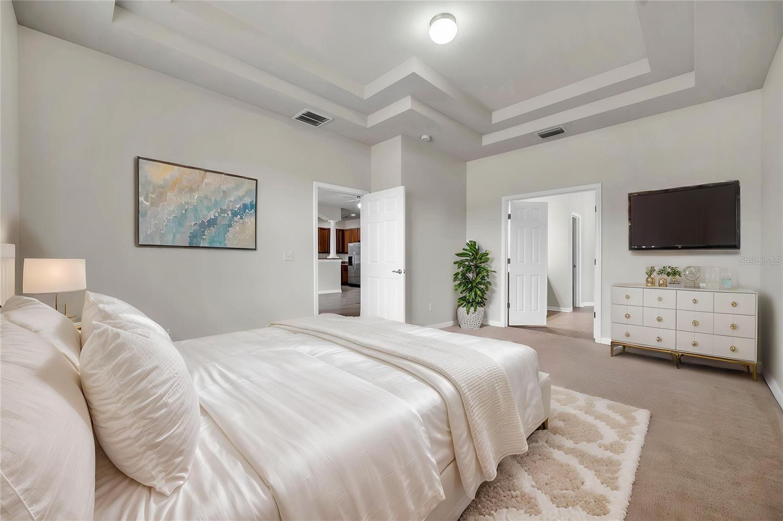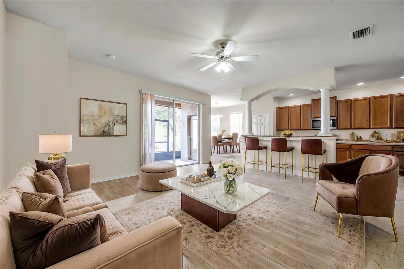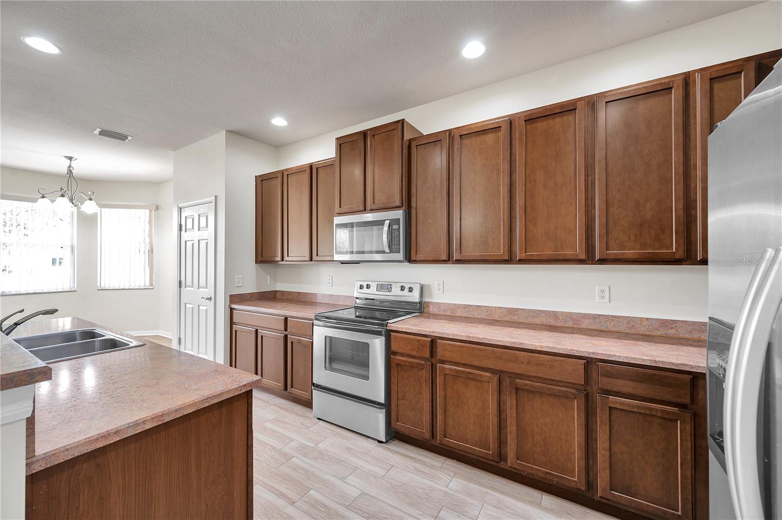 Welcome to your new AFFORDABLE and charming family dream home in the highly sought-after and peaceful community of BROOKFIELD ESTATES in Wesley Chapel, with LOW HOA fees, NO CDD Fee and NO FLOOD Hazard Insurance needs!!! Two pictures are virtually staged for your view. This beautiful and rare gem home with HIGH CEILING offers a generous 1,946 sqft of one-story living space that features a spacious 3-BED, 2-BATH, FLEX room and OVERSIZED 2 car garage with storage area. This MOVE-IN READY home was recently upgraded with NEW ROOF 2023, NEW GARAGE MOTOR with Outside Keypad 2023, NEW HVAC System 2024, NEW INTERIOR PAINT 2025 NEW Elegant GARAGE EPOXY FLOOR 2025, NEW Bathroom Light Fixtures 2025 and Water Softener pipes. It is waiting for you to make it your own!!The private Master bedroom has a modern design with TRAY CEILING and FRENCH DOORS that open to an end-suite bathroom with dual sinks, roman soaking tub, and separate shower for a luxurious retreat, that leads to a SPACIOUS WALKING-CLOSET. The kitchen is a chef's dream with SS appliances, closet pantry, counter bar, PLENTY OF 42” CABINETS with easy to clean countertops and space for preparing meals, ideal for family gatherings! A seamless OPEN-CONCEPT floor plan with PORCELAIN wood-like tile floors and CEILING FAN, connects the living and kitchen areas. Multiple windows allow NATURAL LIGHT to flood the space, creating a warm and inviting atmosphere that also lets you enjoy nature from within the comfort of your home while having breakfast, lunch, dinner or simply a nice cup of coffee. Step outside to your COVERED and SCREENED LANAI from the SLIDING Door in the living room area. The backyard leads to a PRIVATE FENCED ENTRANCE to the community’s park equipped with tables and chairs for grilling and chilling, a playground and open field , perfect for family outdoor activities and entertainment. KITCHEN and LAUNDRY APPLIANCES INCLUDED!! Conveniently located off SR 54 within distance from top rated schools, pediatricians, and the recently renovated New River Library just minutes from Publix, HomeDepot, Post Office, shopping centers Wiregrass Mall and Tampa Outlets, hospitals, restaurants, and entertainment . It also offers easy access to I-75, ST Road 56, US 301 and Morris Bridge. Approximately 40 min from Downtown Tampa, TPA International Airport and Tampa Bay's beautiful beaches and ~1 hr from Orlando, ST Pete and Clearwater. Don't miss the opportunity to make this stunning and affordable home yours!! Schedule a showing today!!!
