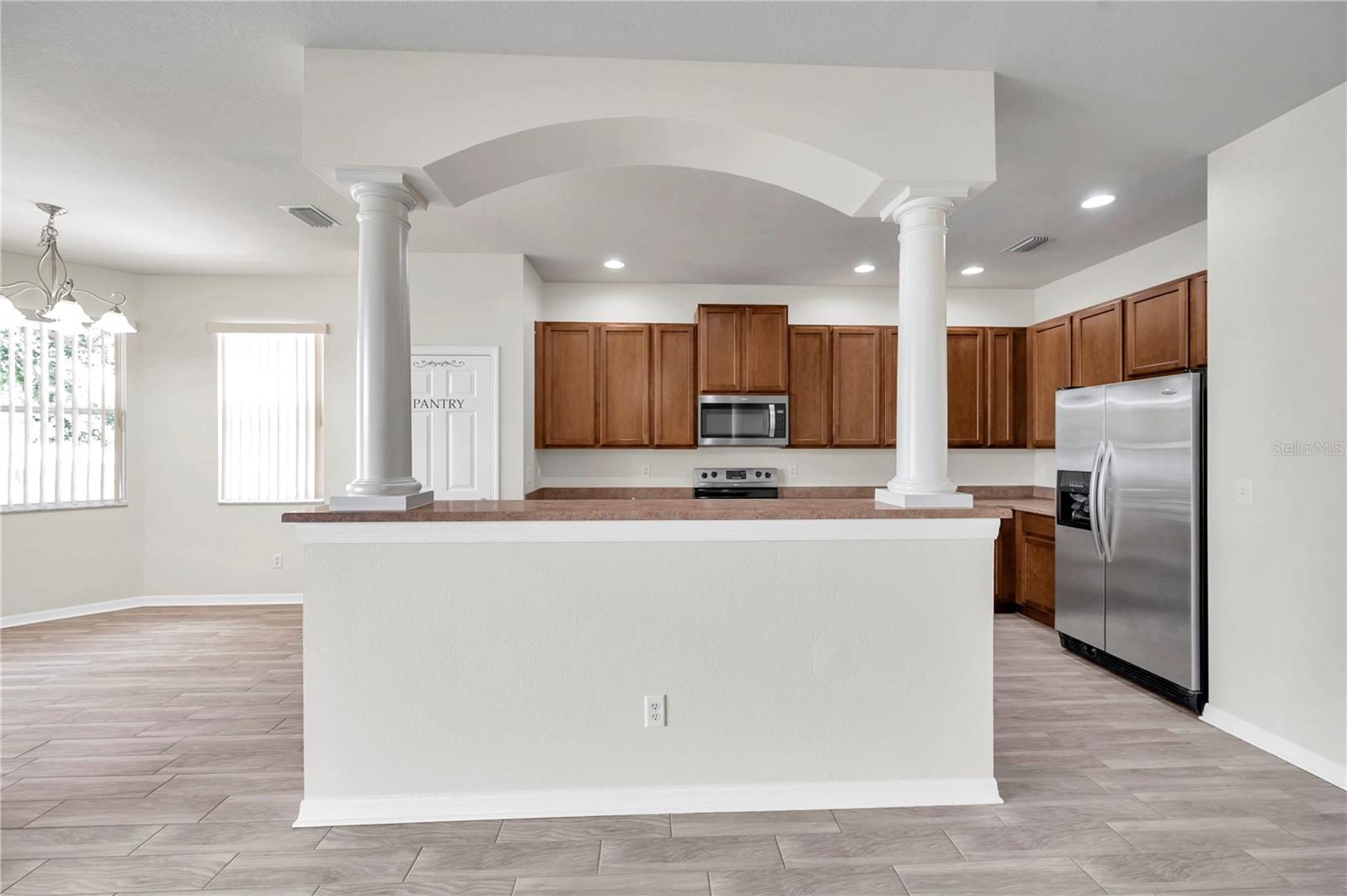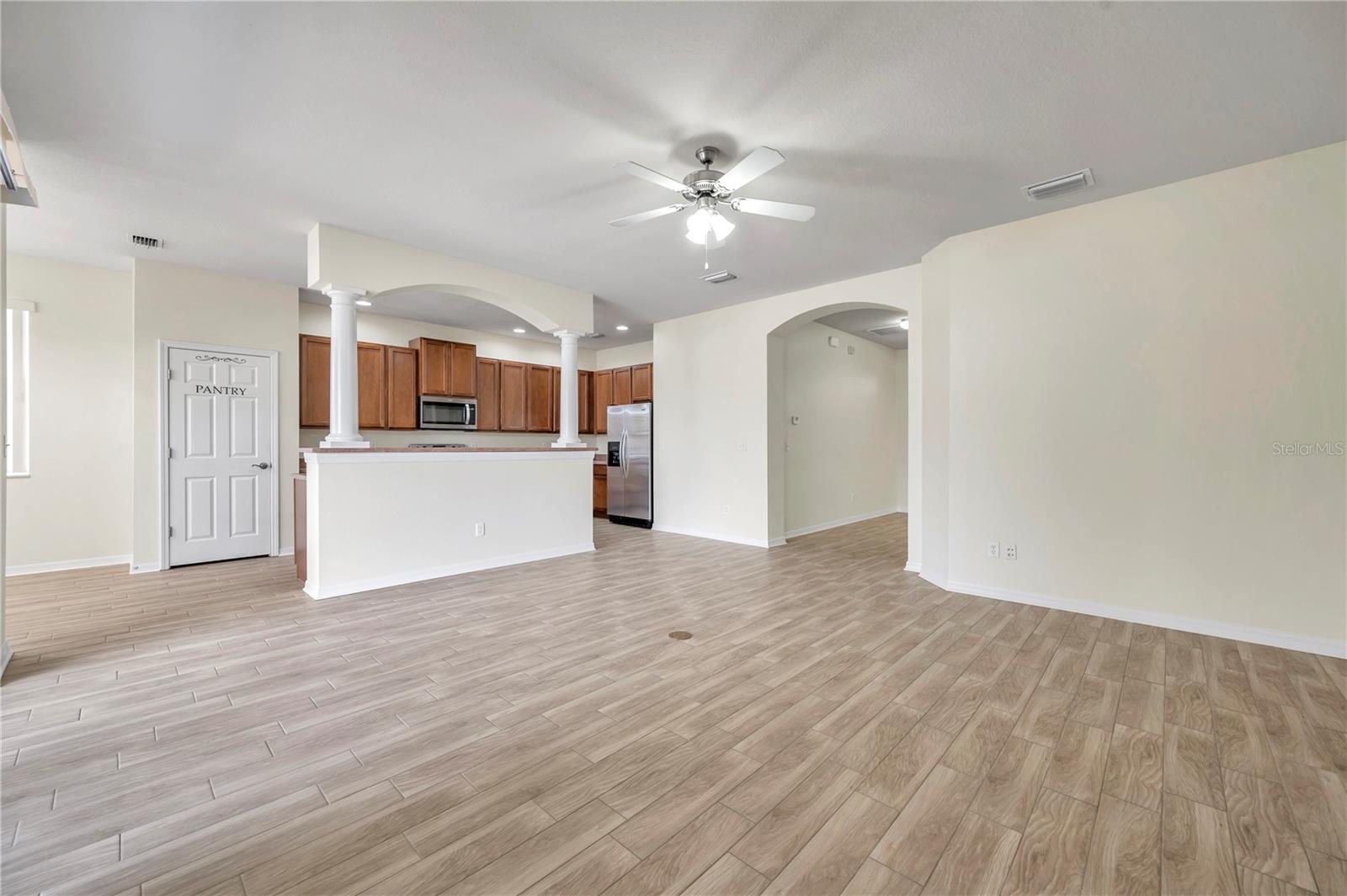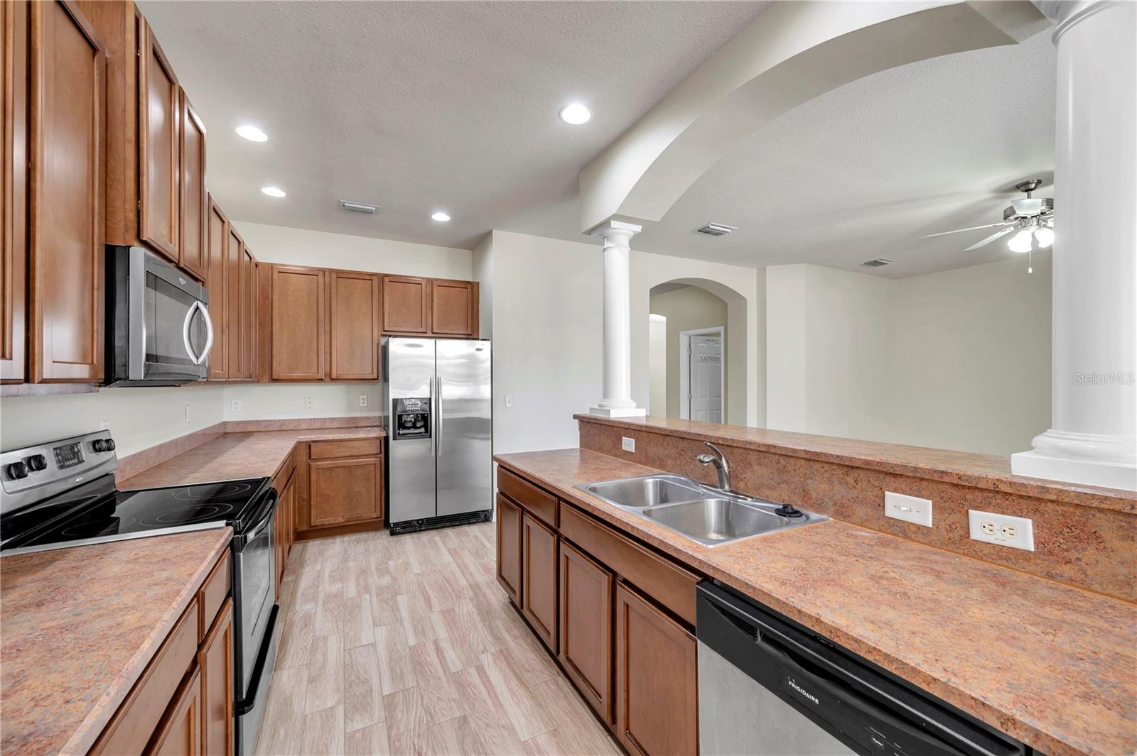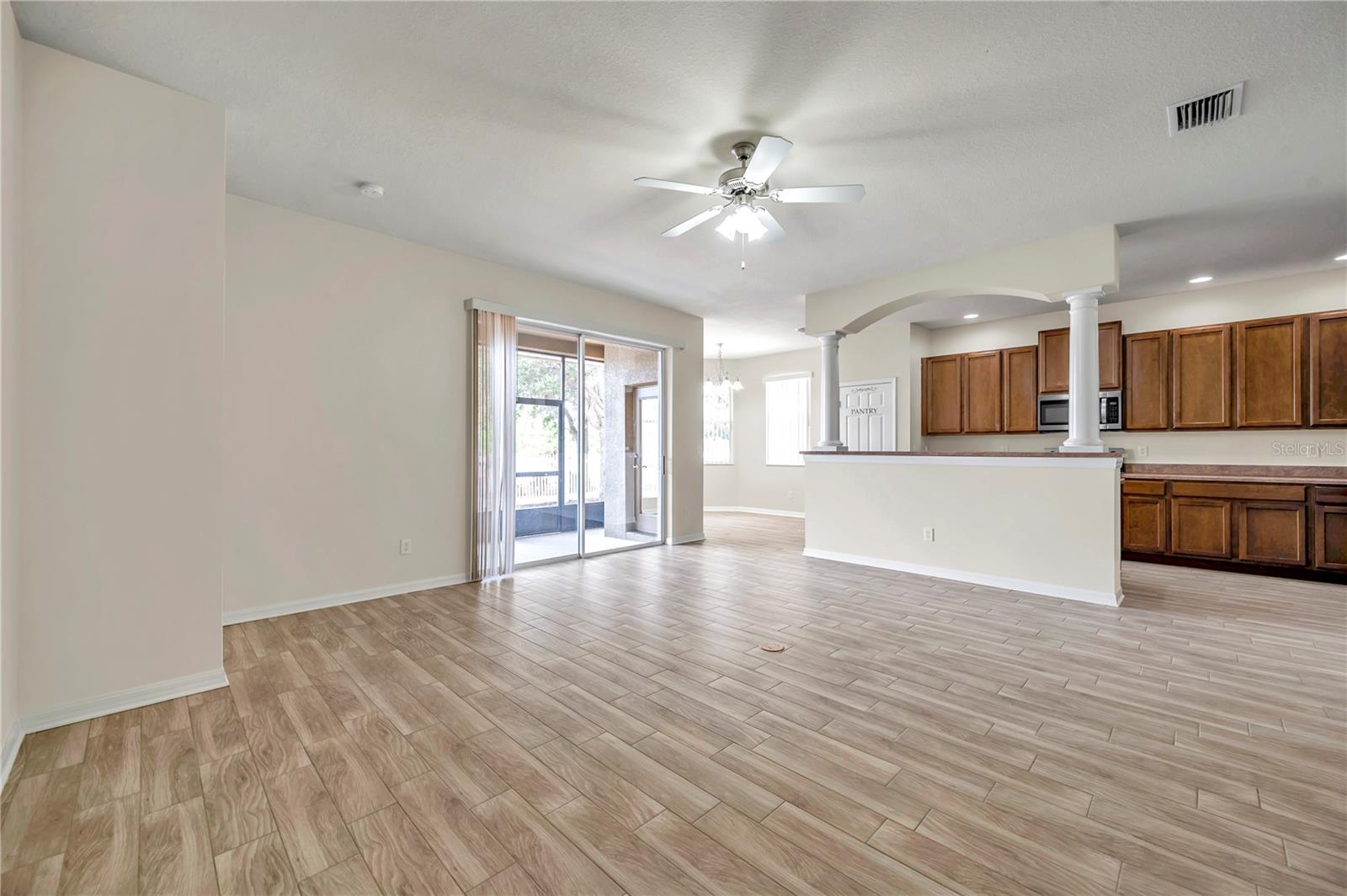 Welcome to your new AFFORDABLE and charming family dream home in the highly sought-after and peaceful community of BROOKFIELD ESTATES in Wesley Chapel, with LOW HOA fees, NO CDD Fee and NO FLOOD Hazard Insurance needs!!! Two pictures are virtually staged for your view. This beautiful and rare gem home with HIGH CEILING offers a generous 1,946 sqft of one-story living space that features a spacious 3-BED, 2-BATH, FLEX room and OVERSIZED 2 car garage with storage area. This MOVE-IN READY home was recently upgraded with NEW ROOF 2023, NEW GARAGE MOTOR with Outside Keypad 2023, NEW HVAC System 2024, NEW INTERIOR PAINT 2025 NEW Elegant GARAGE EPOXY FLOOR 2025, NEW Bathroom Light Fixtures 2025 and Water Softener pipes. It is waiting for you to make it your own!!The private Master bedroom has a modern design with TRAY CEILING and FRENCH DOORS that open to an end-suite bathroom with dual sinks, roman soaking tub, and separate shower for a luxurious retreat, that leads to a SPACIOUS WALKING-CLOSET. The kitchen is a chef's dream with SS appliances, closet pantry, counter bar, PLENTY OF 42” CABINETS with easy to clean countertops and space for preparing meals, ideal for family gatherings! A seamless OPEN-CONCEPT floor plan with PORCELAIN wood-like tile floors and CEILING FAN, connects the living and kitchen areas. Multiple windows allow NATURAL LIGHT to flood the space, creating a warm and inviting atmosphere that also lets you enjoy nature from within the comfort of your home while having breakfast, lunch, dinner or simply a nice cup of coffee. Step outside to your COVERED and SCREENED LANAI from the SLIDING Door in the living room area. The backyard leads to a PRIVATE FENCED ENTRANCE to the community’s park equipped with tables and chairs for grilling and chilling, a playground and open field , perfect for family outdoor activities and entertainment. KITCHEN and LAUNDRY APPLIANCES INCLUDED!! Conveniently located off SR 54 within distance from top rated schools, pediatricians, and the recently renovated New River Library just minutes from Publix, HomeDepot, Post Office, shopping centers Wiregrass Mall and Tampa Outlets, hospitals, restaurants, and entertainment . It also offers easy access to I-75, ST Road 56, US 301 and Morris Bridge. Approximately 40 min from Downtown Tampa, TPA International Airport and Tampa Bay's beautiful beaches and ~1 hr from Orlando, ST Pete and Clearwater. Don't miss the opportunity to make this stunning and affordable home yours!! Schedule a showing today!!!