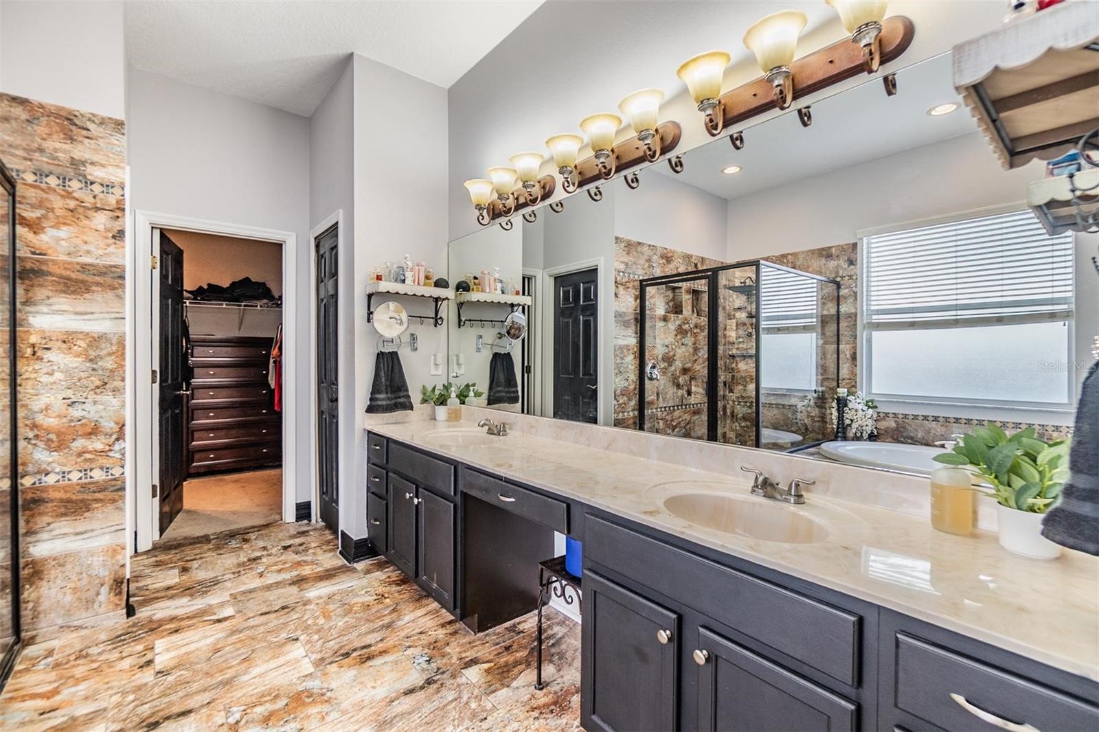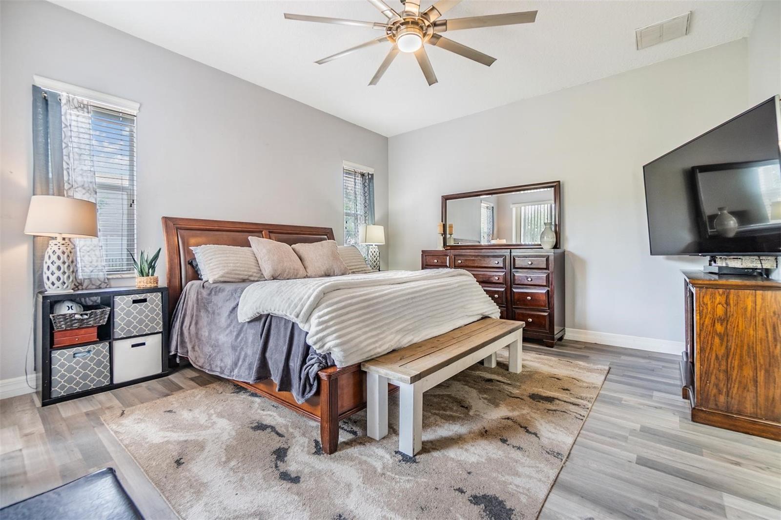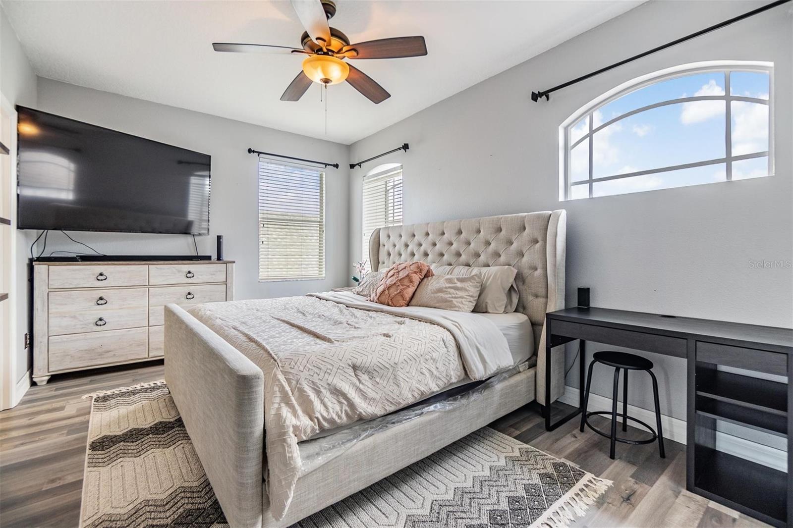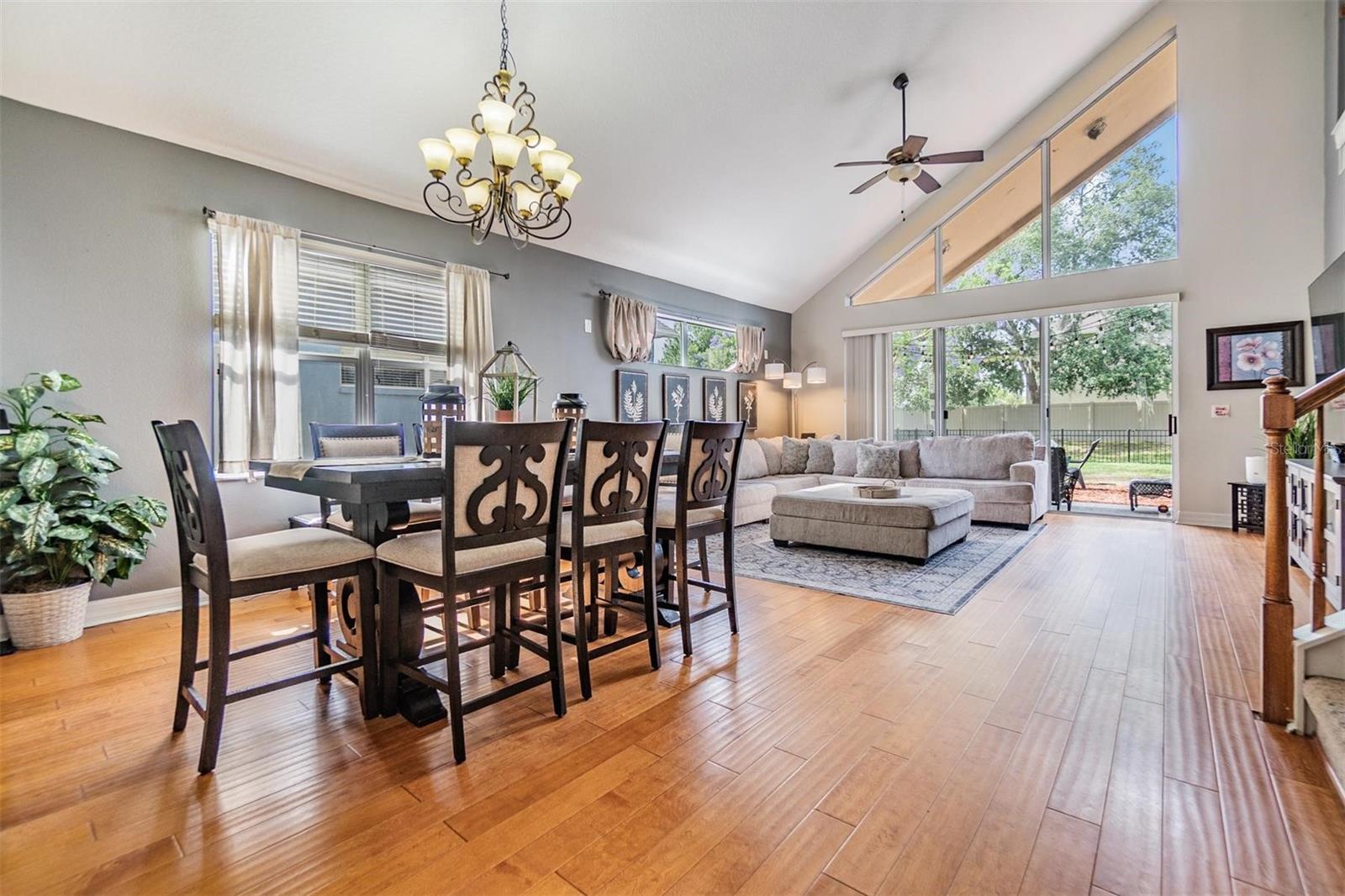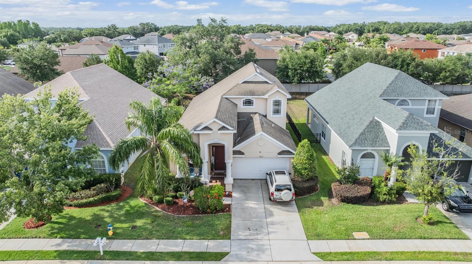 Absolutely stunning and remodeled, this 3 Bedroom, 2.5 Bathroom + Loft home with an oversized 2-car garage offers luxury, space, and value in the desirable Country Walk community! Featuring 22’ soaring cathedral ceilings, custom finishes, and a massive backyard, this home blends impressive design with low-maintenance living, perfect for modern lifestyles. Step into a dramatic entryway with elegant custom tile in the foyer and kitchen throughout and hardwood in the formal living and dining rooms. The beautifully crafted wood staircase sets the tone for quality and style. The gourmet kitchen is a showstopper, boasting Samsung stainless steel appliances, granite countertops, 42” cabinets, designer tile backsplash, bar seating, and a generous breakfast nook. The spacious primary suite is located on the main floor and features custom lighting, dual sinks, a garden tub, separate shower, and walk-in closet. Upstairs, you'll find two additional bedrooms connected by a Jack-and-Jill bathroom, plus an open loft ideal for an office, den, or playroom. Enjoy peace of mind with CDD fees included in taxes and HOA covering lawn maintenance, irrigation, and exterior maintenance. This rare opportunity gives you the benefits of a detached single-family home with the convenience of villa-style maintenance. Don’t wait—schedule your private showing today!