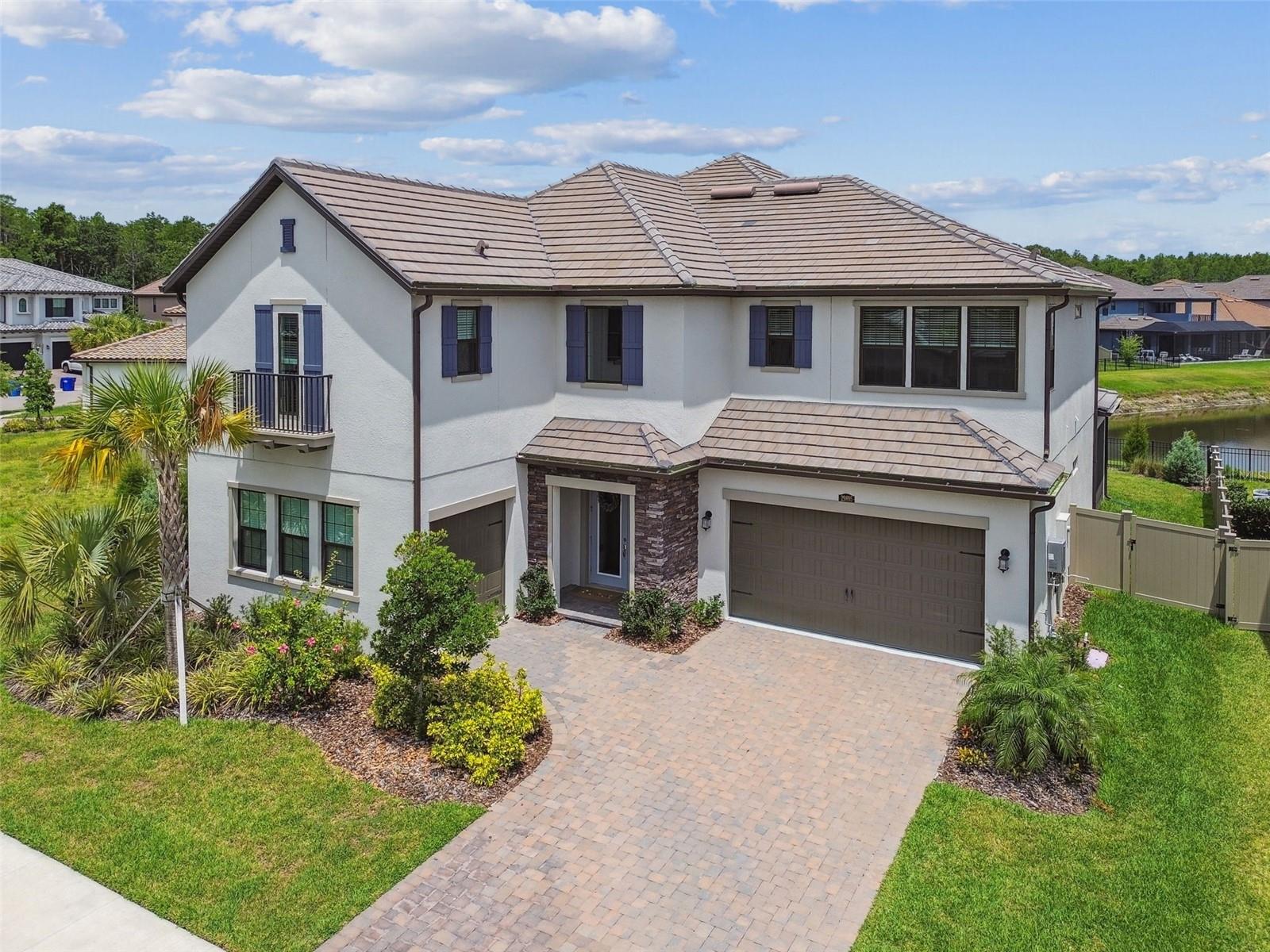 SELLERS ENCOURAGE BRINGING ANY REASONABLE OFFER!!!!!! Built in 2023 and elevated with over a DOZEN PREMIUM UPGRADES, this remarkable home situated on an oversized lot was thoughtfully crafted to deliver effortless elegance, seamless indoor-outdoor living, and modern convenience—all in one unforgettable package. Where luxury meets lifestyle—this is the one you’ve been waiting for. Perfectly situated on an oversized corner lot in the exclusive, gated enclave of Ravello at Estancia, this grand 5-bedroom, 4-bath residence seamlessly blends refined design with exceptional functionality. From the moment you arrive, the curb appeal is undeniable. Elegant stone façade accents, meticulously upgraded landscaping, and a brick paver driveway create a warm, welcoming impression. The spacious 3-car garage combines beauty with practicality, featuring a sleek epoxy floor finish and garage wired for EV hookup. Inside, a flexible layout adapts to every lifestyle: a private home office or den, formal dining room, and generous bonus/game room offer versatile spaces for work, play, or relaxation. At the heart of the home is a gourmet kitchen designed to inspire—complete with a farmhouse sink, stylish pendant lighting, a butler’s pantry/beverage bar, and an expansive café-style dining area. The second floor OWNER'S SUITE is a private sanctuary, thoughtfully designed for both luxury and comfort. Enjoy direct access to a private balcony, perfect for quiet mornings or winding down in the evening. An oversized walk-in closet offers custom storage potential is a true showstopper. Indulge in the stand-alone soaking tub, or unwind in the expansive walk-in shower with frameless glass and designer fixtures. DUAL QUARTZ-TOPPED vanities, elegant tilework, and PREMIUM FINISHES complete this serene, elevated space—making it the perfect place to relax, recharge, and retreat from the day. Throughout the home, thoughtful upgrades enhance both comfort and efficiency: 3M HEAT-REDUCING FILM on west-facing windows, wrought iron staircase railings, OUTDOOR KITCHEN HOOKUPS (gas, plumbing, and electrical), and water treatment system hookup in the garage. Enjoy FRESH INTERIOR PAINT (2025) and HURRICANE SHUTTERS, giving the home the feel of a brand-new build with every modern convenience already in place. Slide open the doors to the first of two screened lanais—perfect for al fresco dining, entertaining, or simply enjoying Florida’s signature breezes. Upstairs, a second screened lanai offers a peaceful retreat with added privacy and a private fire escape—an uncommon and thoughtful touch. The fully fenced and gated side yard—an owner-upgraded highlight—offers rare versatility: enough space to add a custom pool while still preserving a lush, grassy play area. It’s an ideal setup for families, pets, and gatherings alike. Located in a top-rated school district and part of Estancia—one of Wesley Chapel’s most sought-after communities—residents enjoy resort-style amenities including a clubhouse, zero-entry heated pool with lap lanes and water slide, tennis, pickleball, and basketball courts, playgrounds, parks, and miles of scenic walking trails. All just minutes from premier shopping, dining, and I-75, with downtown Tampa and Tampa International Airport less than 30 miles away. This is more than a home—it’s a lifestyle upgrade. Schedule your private tour today and experience the unmatched experience of Estancia living.