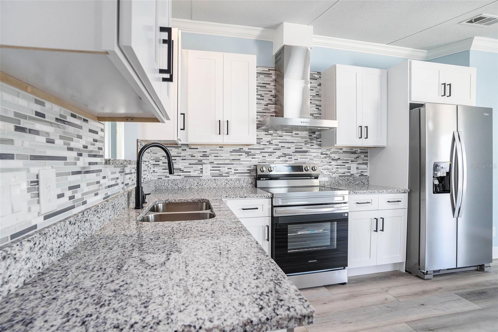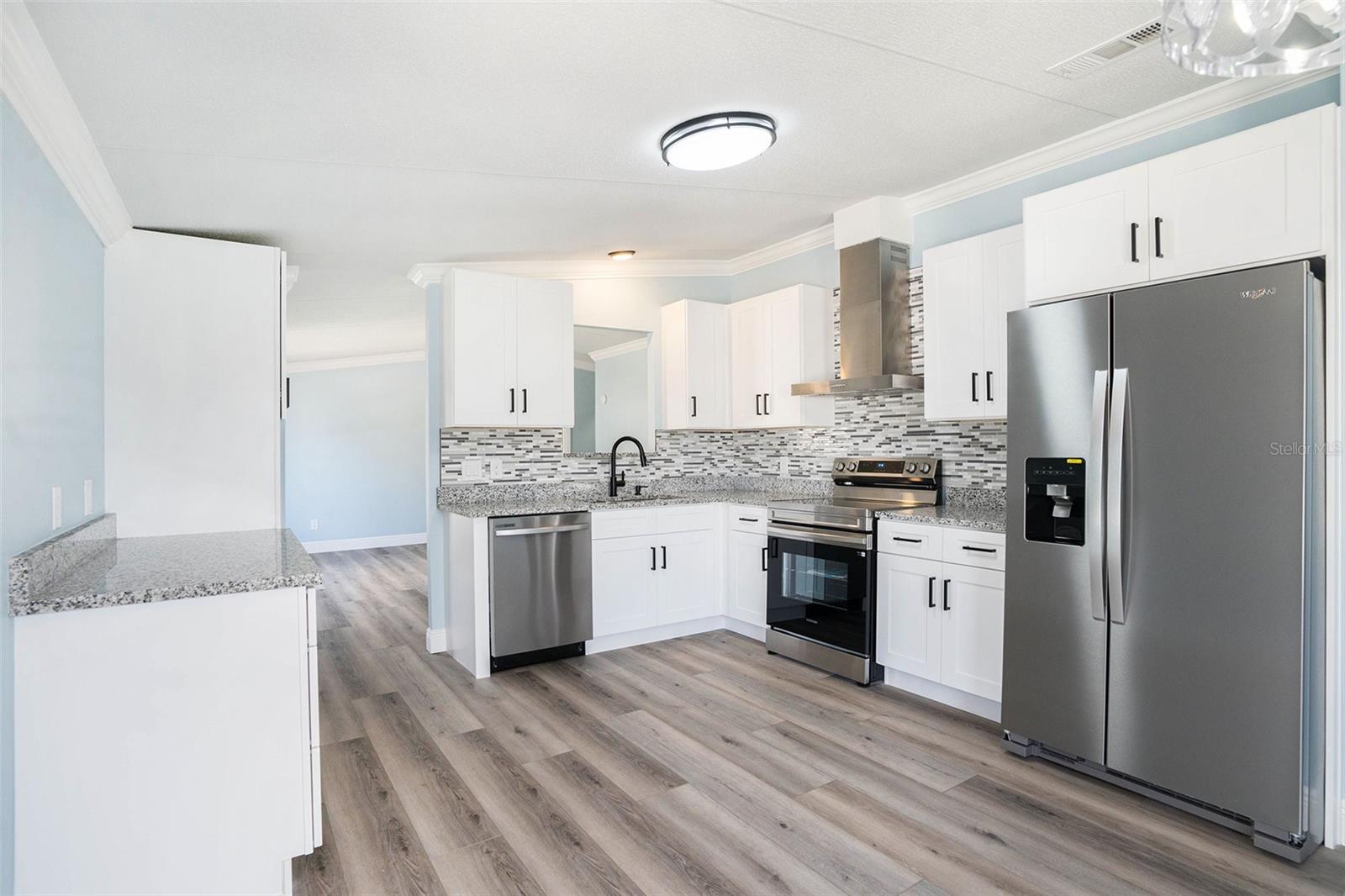 This spacious 3-bedroom, 2-bath mobile home is perfectly located between Zephyrhills and Wesley Chapel, offering a convenient location. There is ample parking to accommodate an RV. Upon entering the house, you'll be impressed by the spacious floor plan. Terrance Park Phase 3 is not part of the 55-and-older community. The master bedroom on one side of the home features a large bathroom with a double vanity and a walk-in shower. On the opposite side, two additional bedrooms share a full bath. The spacious kitchen has plenty of wood cabinets, granite countertops, stainless-steel appliances, and a breakfast area. Adjacent to the kitchen is a laundry room leading to a back patio. The whole property is freshly painted outside and inside, and the lighting and fixtures are new. The roof is 2015, the air conditioning unit is 2021, and the water heater and plumbing are new. The backyard is fenced for privacy, perfect for weekend BBQs and outdoor activities. This well-appointed home provides all the essential features for comfortable living. Located near Wiregrass Mall, shopping stores, a Park, and three hospitals. One hour from the beach, Tampa International Airport. We encourage you to schedule a viewing soon, as properties like this tend to attract significant interest and may remain unavailable for long.