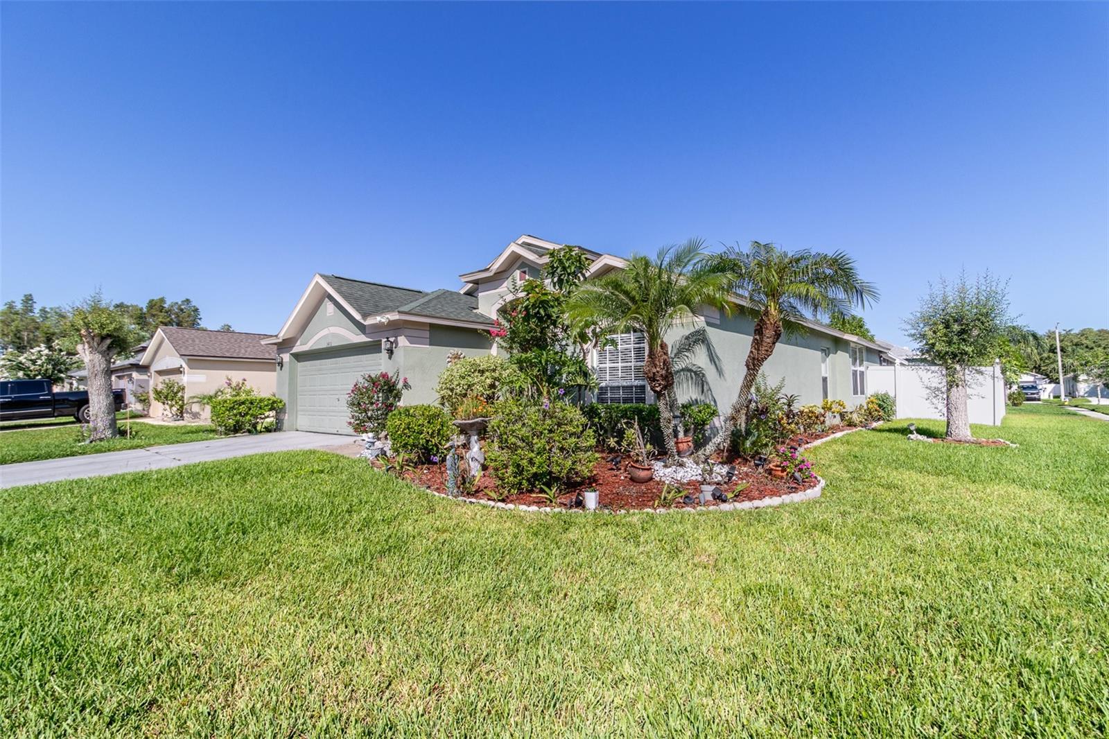 This stunning 3-bedroom, 2-bathroom residence includes a versatile flex room and sits on a spacious corner lot with a fully fenced yard, offering both privacy and plenty of space for outdoor fun. Enjoy Florida living year-round on the screened-in patio—an ideal spot for entertaining guests or unwinding with family without worrying about bugs. Step inside to a bright, open floor plan designed for comfortable living and effortless entertaining. The living room is filled with natural light, creating a warm and inviting atmosphere. The chef’s kitchen features elegant granite countertops, stainless steel appliances, and abundant counter and storage space to inspire your culinary creations. The generous primary bedroom boasts a luxurious en-suite bathroom complete with a large shower and dual sinks. Two additional bedrooms share a well-appointed full bathroom, perfect for family or guests. Outside, the large backyard provides endless opportunities for barbecues, playtime, or simply relaxing in your private outdoor oasis. Meadow Pointe is known for its serene surroundings, excellent amenities, and welcoming community atmosphere. Don’t miss your chance to own this beautiful home — schedule your showing today!
