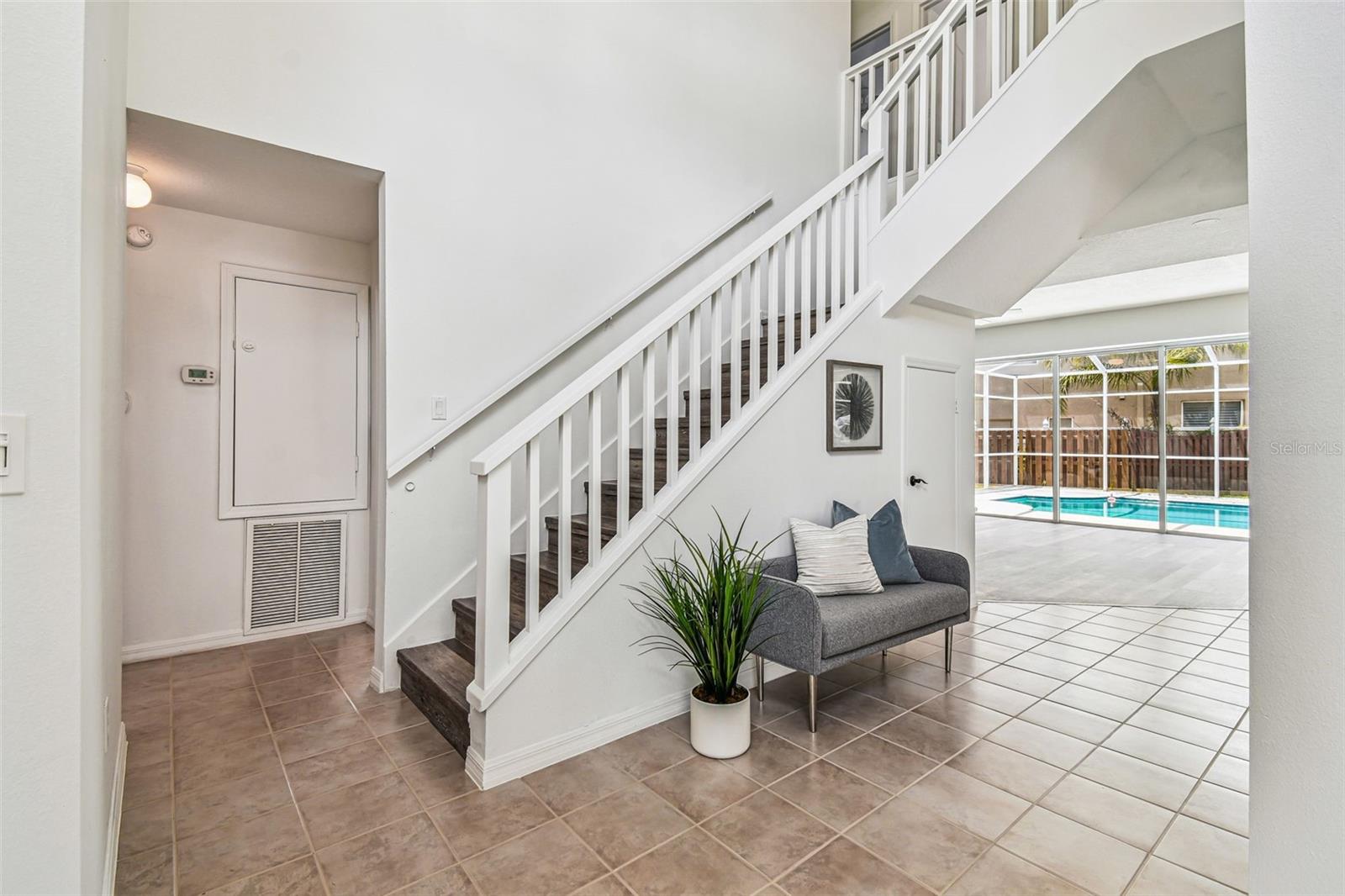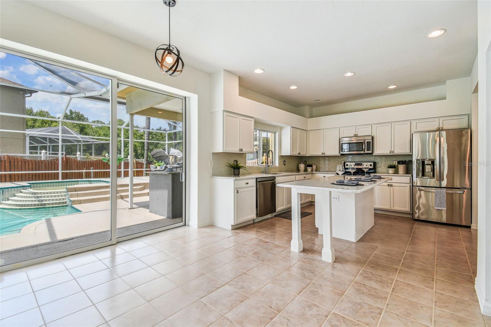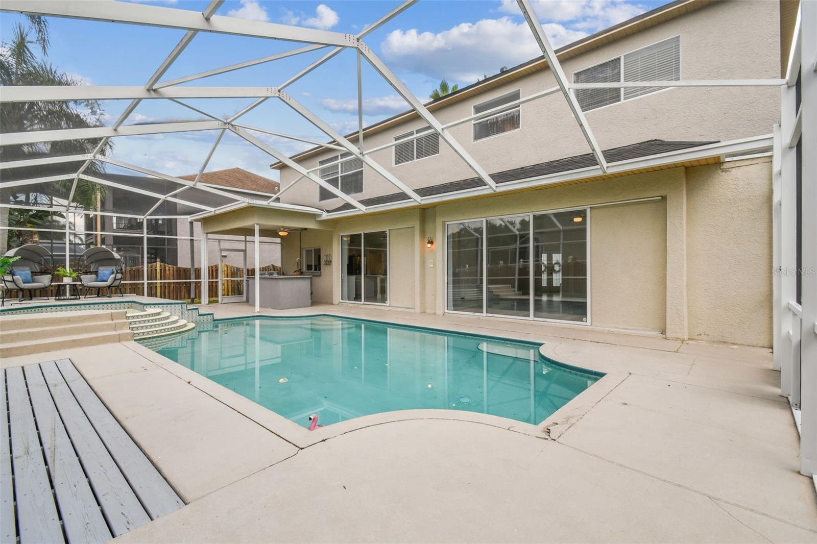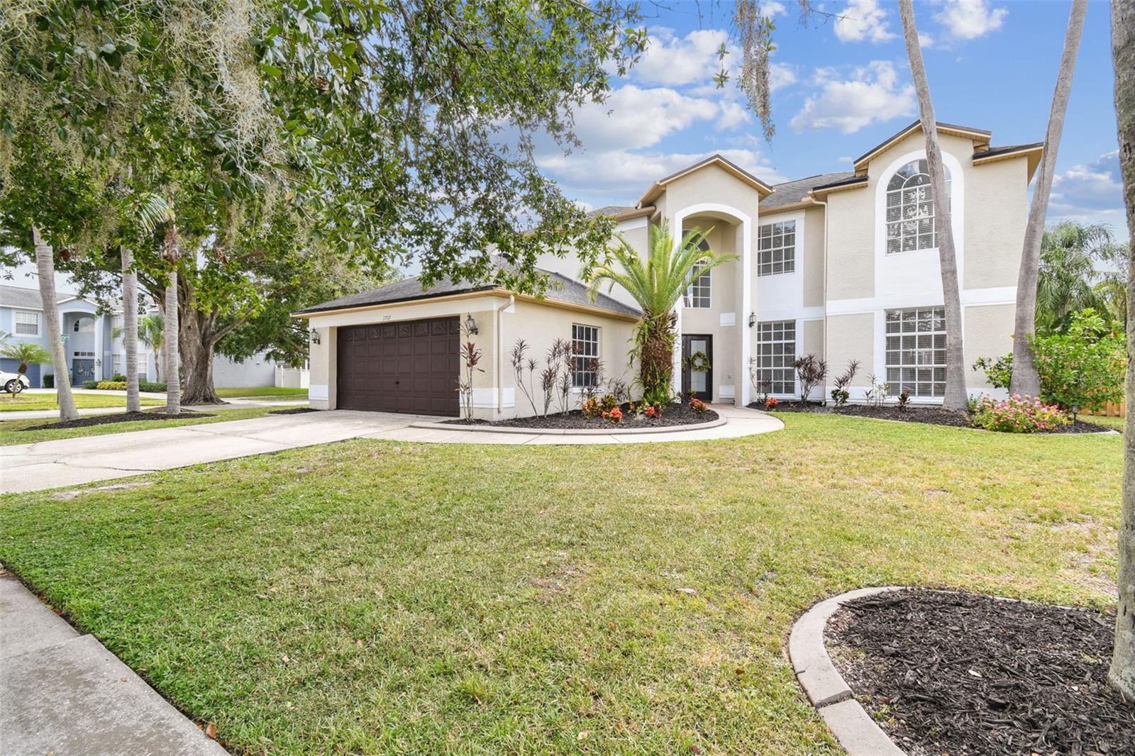 One or more photo(s) has been virtually staged. Welcome to this beautifully move-in ready updated 5-bedroom, 3-bath, two-story POOL/SPA home in the highly sought-after, family-friendly Northwood community—known for its peaceful streets, mature landscaping, and welcoming atmosphere. Perfectly positioned on a premium corner lot backing to a tranquil pond, this home offers privacy, plenty of natural light, and inviting indoor/outdoor living spaces ideal for entertaining or unwinding. Recent updates & upgrades include: NEW interior paint throughout, NEWLY painted cabinets, NEW LVP flooring and NEW carpet, NEWLY painted exterior trim, FRESH landscaping. DOWNSTAIRS: Step into two spacious living areas, a formal dining room, a private office, and a gourmet kitchen complete with quartz countertops, wet bar, stainless steel appliances and two pantries. Large sliders open to the expansive screened pool and spa, OUTDOOR KITCHEN & GRILL, and covered lanai—perfect for game days, birthday celebrations, or quiet mornings by the water. UPSTAIRS: The split-bedroom layout features an owner’s suite oasis with his-and-hers walk-in closets, set apart from the additional bedrooms for privacy yet close enough to keep loved ones nearby. Additional highlights: Very well-maintained roof (8 years old), Office on main floor. Laundry room, Outdoor kitchen and mature landscaping. Prime Location: Easy access to I-75, I-275, and Veterans Expressway. Minutes to Tampa Premium Outlets, Wiregrass Mall, Costco, Publix, Target, and more. Close to Florida Hospital, top medical care, and outdoor recreation at Suncoast Trail and Flatwoods Park. This exceptional home offers space, style, and location—schedule your private tour today before it’s gone!