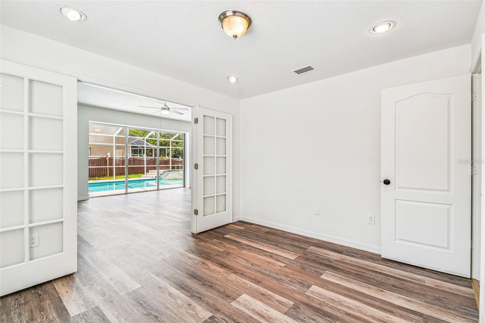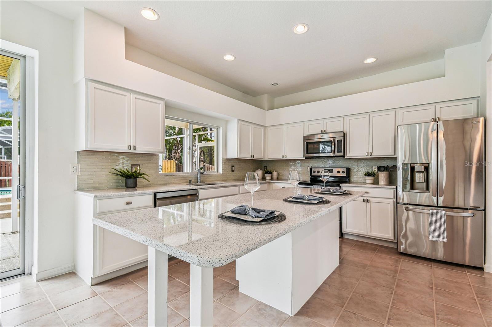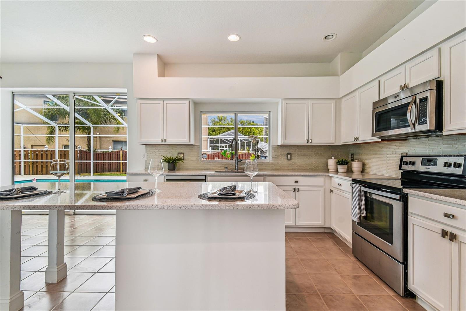 One or more photo(s) has been virtually staged. Welcome to this beautifully move-in ready updated 5-bedroom, 3-bath, two-story POOL/SPA home in the highly sought-after, family-friendly Northwood community—known for its peaceful streets, mature landscaping, and welcoming atmosphere. Perfectly positioned on a premium corner lot backing to a tranquil pond, this home offers privacy, plenty of natural light, and inviting indoor/outdoor living spaces ideal for entertaining or unwinding. Recent updates & upgrades include: NEW interior paint throughout, NEWLY painted cabinets, NEW LVP flooring and NEW carpet, NEWLY painted exterior trim, FRESH landscaping. DOWNSTAIRS: Step into two spacious living areas, a formal dining room, a private office, and a gourmet kitchen complete with quartz countertops, wet bar, stainless steel appliances and two pantries. Large sliders open to the expansive screened pool and spa, OUTDOOR KITCHEN & GRILL, and covered lanai—perfect for game days, birthday celebrations, or quiet mornings by the water. UPSTAIRS: The split-bedroom layout features an owner’s suite oasis with his-and-hers walk-in closets, set apart from the additional bedrooms for privacy yet close enough to keep loved ones nearby. Additional highlights: Very well-maintained roof (8 years old), Office on main floor. Laundry room, Outdoor kitchen and mature landscaping. Prime Location: Easy access to I-75, I-275, and Veterans Expressway. Minutes to Tampa Premium Outlets, Wiregrass Mall, Costco, Publix, Target, and more. Close to Florida Hospital, top medical care, and outdoor recreation at Suncoast Trail and Flatwoods Park. This exceptional home offers space, style, and location—schedule your private tour today before it’s gone!