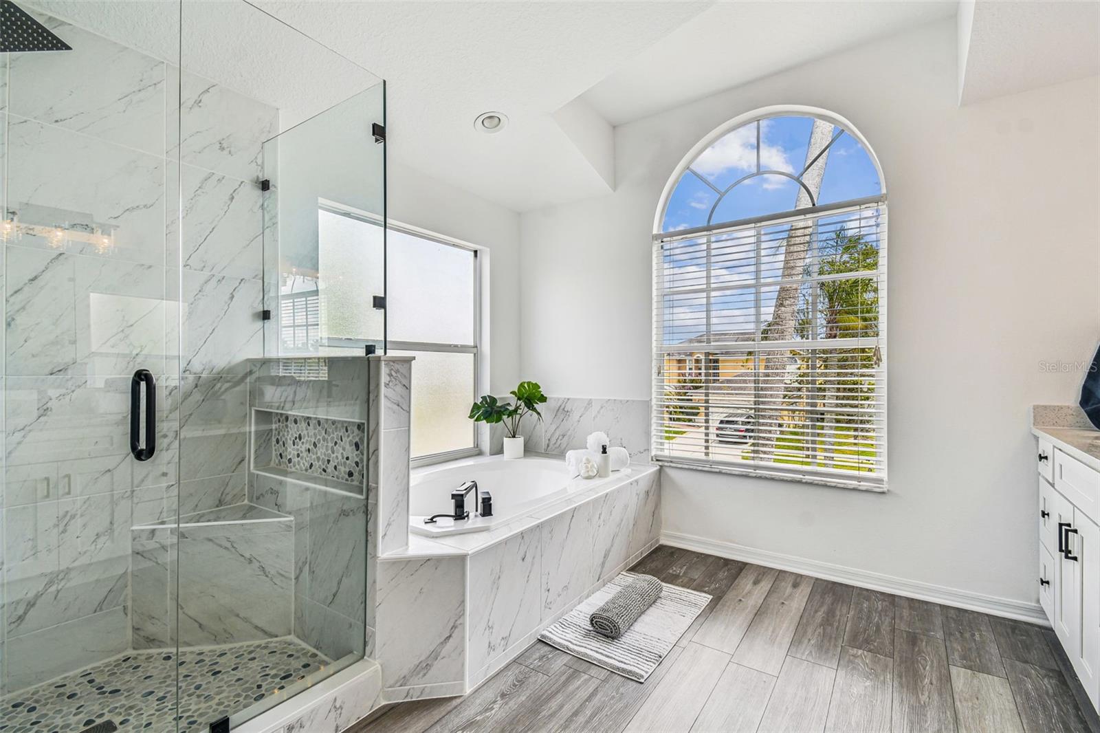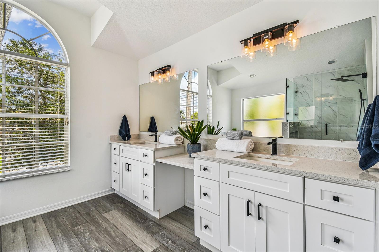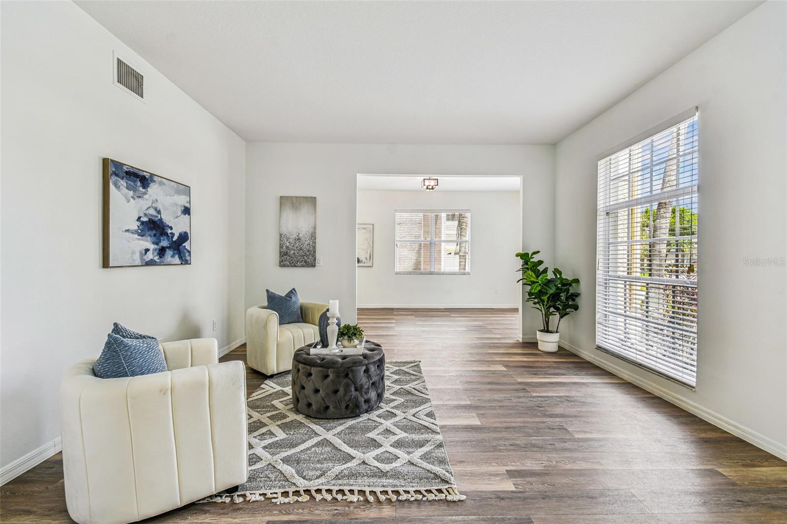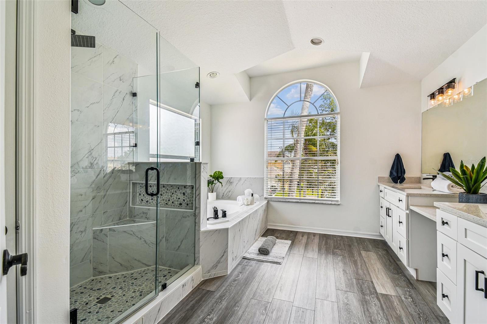 One or more photo(s) has been virtually staged. Welcome to this beautifully move-in ready updated 5-bedroom, 3-bath, two-story POOL/SPA home in the highly sought-after, family-friendly Northwood community—known for its peaceful streets, mature landscaping, and welcoming atmosphere. Perfectly positioned on a premium corner lot backing to a tranquil pond, this home offers privacy, plenty of natural light, and inviting indoor/outdoor living spaces ideal for entertaining or unwinding. Recent updates & upgrades include: NEW interior paint throughout, NEWLY painted cabinets, NEW LVP flooring and NEW carpet, NEWLY painted exterior trim, FRESH landscaping. DOWNSTAIRS: Step into two spacious living areas, a formal dining room, a private office, and a gourmet kitchen complete with quartz countertops, wet bar, stainless steel appliances and two pantries. Large sliders open to the expansive screened pool and spa, OUTDOOR KITCHEN & GRILL, and covered lanai—perfect for game days, birthday celebrations, or quiet mornings by the water. UPSTAIRS: The split-bedroom layout features an owner’s suite oasis with his-and-hers walk-in closets, set apart from the additional bedrooms for privacy yet close enough to keep loved ones nearby. Additional highlights: Very well-maintained roof (8 years old), Office on main floor. Laundry room, Outdoor kitchen and mature landscaping. Prime Location: Easy access to I-75, I-275, and Veterans Expressway. Minutes to Tampa Premium Outlets, Wiregrass Mall, Costco, Publix, Target, and more. Close to Florida Hospital, top medical care, and outdoor recreation at Suncoast Trail and Flatwoods Park. This exceptional home offers space, style, and location—schedule your private tour today before it’s gone!