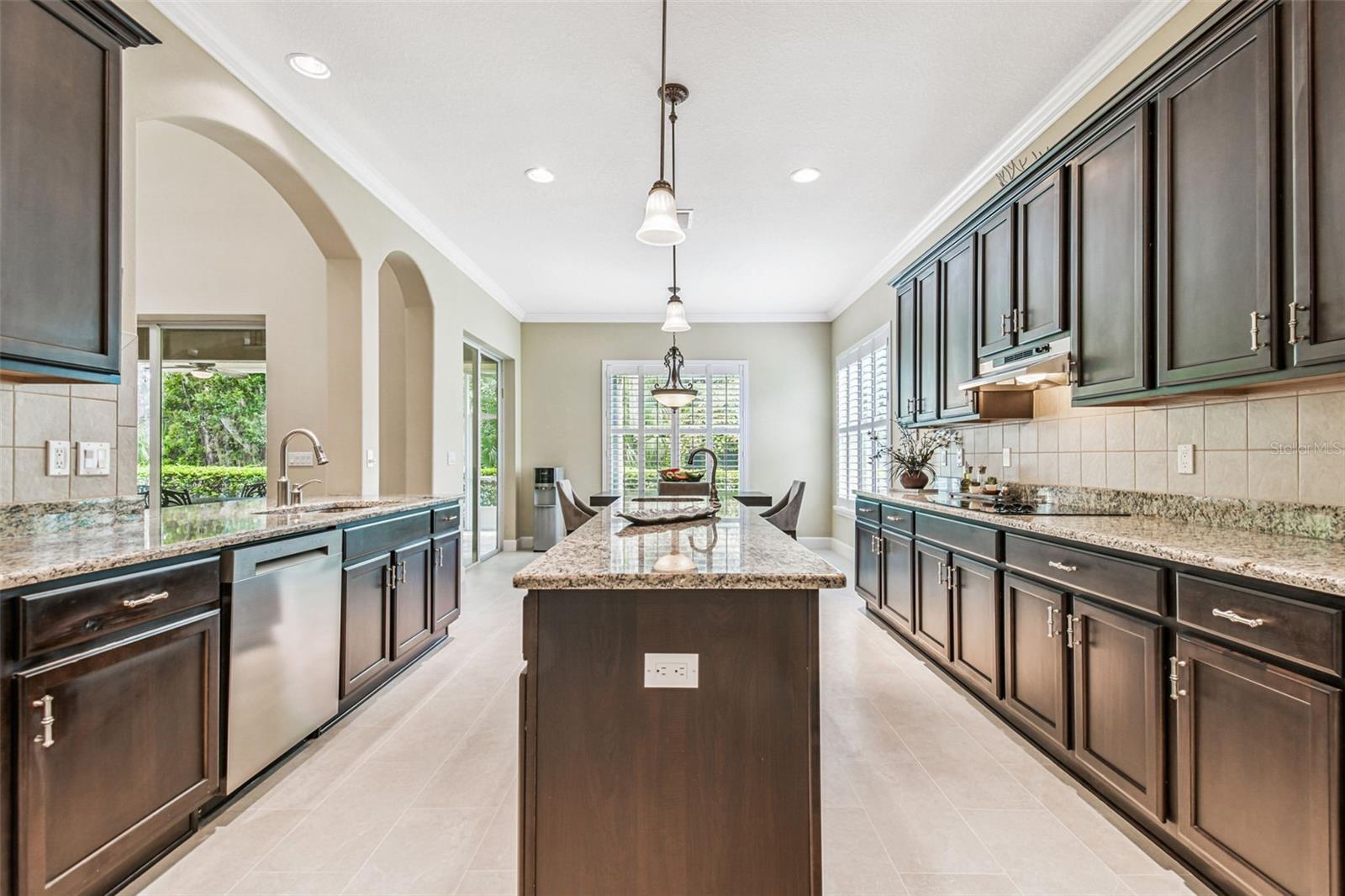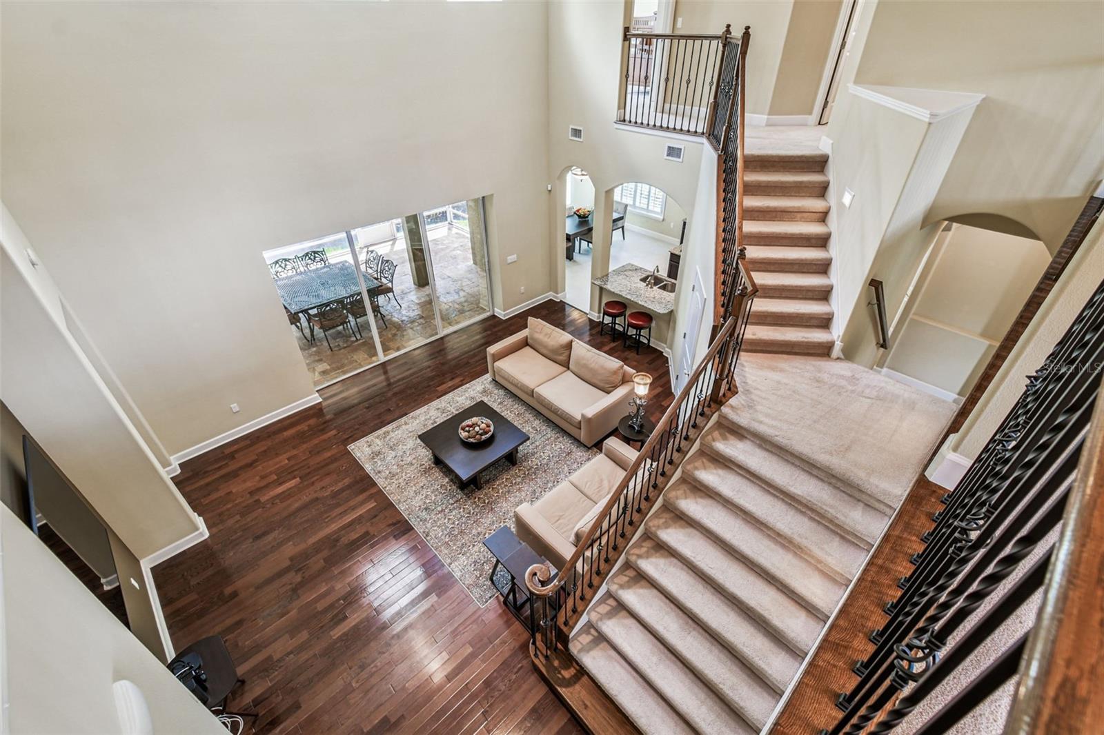 Seven Oaks. Gorgeous cul-de-sac home on magnificent conservation lot in gated Watermark, Seven Oaks most prestigious village. This 4 bedroom, 3 ½ bath, 3 car split garage residence also has a loft, theater room, bonus room and an oversized, covered and screened lanai. The soaring ceilings provide for a very open feeling. The large kitchen with an island has upgraded stainless steel appliances, eat in area, walk-in pantry, overlooking the huge family room. The oversized first floor primary suite has views of conservation, dual sinks, walk-in closet, shower and separate tub. The family room is open to the second floor providing an abundance of natural light, and has two oversized bedrooms, one with access to large balcony, a bath with double sinks, a loft, theater and large bonus room. This home has many upgrades, including but not limited to guest bedroom on first floor, extensive wood floors, extensive plantation shutters, upgraded tile, large dining room & living room combination, screened travertine lanai with a half bath, split garages, sprinkler system, alarm system, gutters, acrylic coated garage floors, and a stately entrance with a front porch. Located in Wesley Chapel just off I-75 and Highway 56, Seven Oaks is a 2,000-acre residential community set among grandfather oaks, pine trees, miles of nature trails, and pristine conservation areas. Seven Oaks is a master planned community with a variety of neighborhoods. Seven Oaks features tree-lined entranceways, neighborhood parks, and a multi-million-dollar community center with all the amenities including 3 pools (one with a double loop slide), theater, gym, café, sports fields, tennis and much more. This home is located only minutes from shopping, I-75, hospitals, restaurants, recreation, VA, USF, Moffitt, and entertainment. Come see for yourself this exquisite residence, sit down, relax and call it home! Please see Matterport 3D tour.