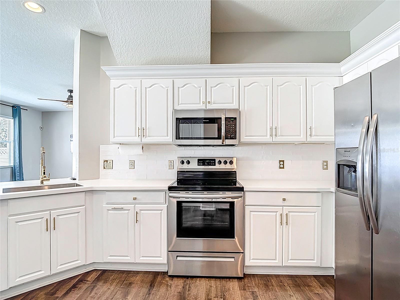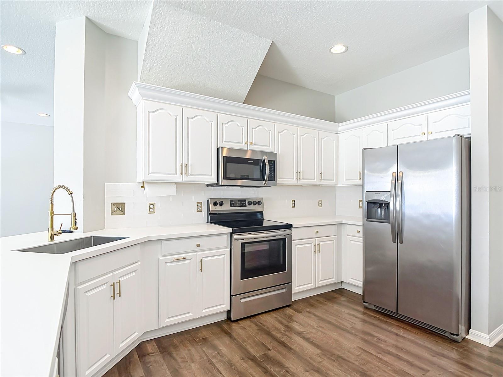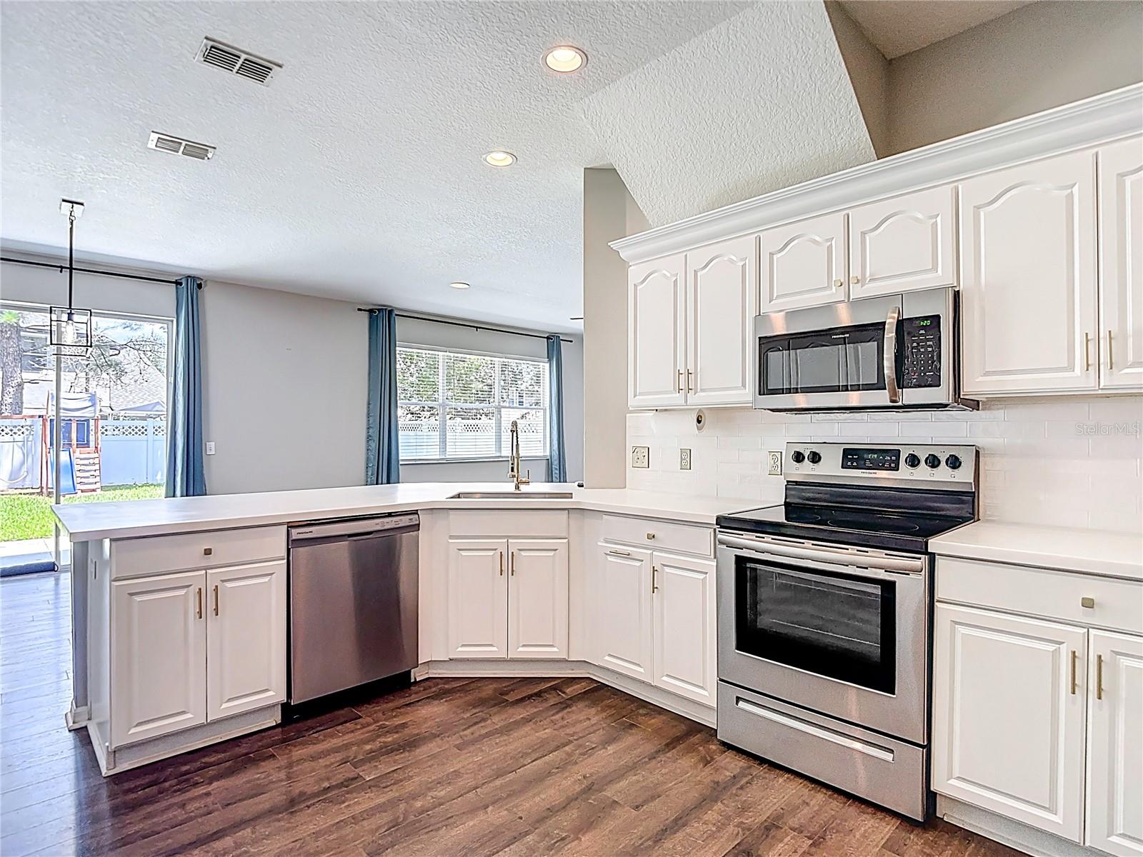 SELLER OFFERING A 5K TOWARD CLOSING COSTS OR RATE BUYDOWN WITH A REASONABLE OFFER! Lovely and completely remodeled 3/2.5/2 in the established community of Seven Oaks! This sought after subdivision is located in the heart of Wesley Chapel and close to everything. Open floor plan with living/dining room combo. Both the kitchen AND bathrooms have recently been updated. NEW countertops in kitchen, cabinets with gold fixtures/faucet, stainless steel appliances and NEW backsplash, laminate flooring throughout. Backyard is completely fenced in with plenty of room for pets or play. Recessed lights, and plenty of windows to let in the natural light. Primary bedroom with en suite showcasing a garden tub to relax and stand alone shower. Walk in closet offers plenty of closet space with a California closet system for added storage and to stay organized! Additional bedrooms are a generous size and updated second bath! FRESH EXTERIOR PAINT, NEW WATER HEATER, ROOF IS 2023, AC 2020, Home is WIFI equipped with Alexa switches, outdoor/indoor security camera and alarm will stay. Seven Oaks is the ultimate in residential living with multiple playgrounds, RESORT STYLE pools with splash pad, tennis and basketball courts and community clubhouse. This jewel does not need a thing and MOVE IN READY!