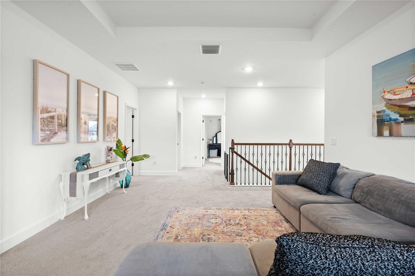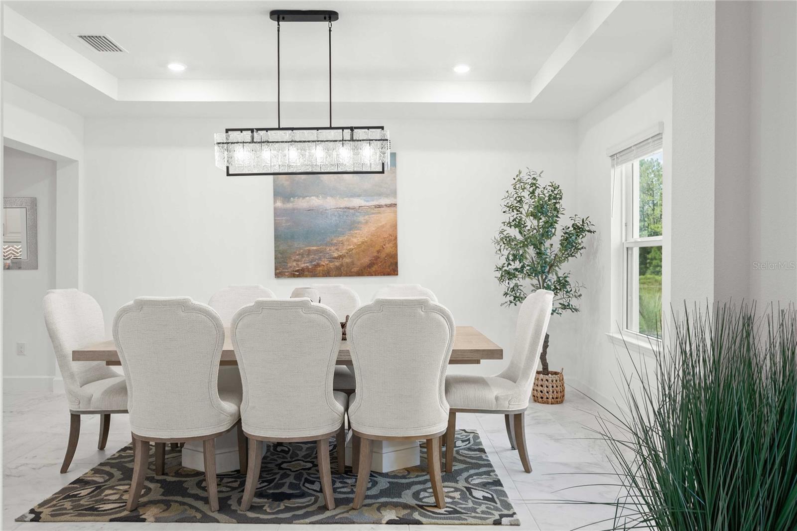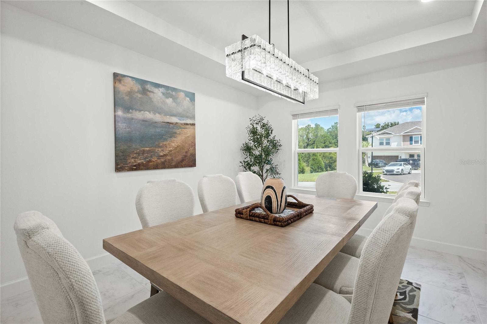 Prepare to be impressed by this stunning 6-bedroom, 4.5-bath home in the highly sought-after River Landing community. With an expansive 4,181 square feet, this energy-efficient property sits on a gorgeous private street, on a premium lot, at the end of a cul-de-sac, surrounded by ponds and conservation views, offering both beauty and tranquility. Step inside to discover the open floor plan, highlighted by soaring high ceilings and elegant 20 x 20 marble tile throughout the main floor. The heart of this home is the HUGE kitchen—featuring double islands, upgraded stainless high-end appliances, coordinating backsplash, a gas cooktop, an eat-in area, a breakfast bar, and a coffee bar/butler’s pantry with drink cooler—perfect for both daily living and entertaining. The home also includes a **tankless gas hot water heater**, ensuring endless hot water while enhancing energy efficiency. The primary suite on the main floor serves as a luxurious retreat, complete with a tray ceiling, dual vanities, two closets with built-in cabinetry, and an upgraded, large walk-in shower. You’ll also find an office/flex/study space with double doors, a formal dining room, and a convenient powder room on the main level. Upstairs, 5 generously sized bedrooms include two with private ensuite bathrooms, while a huge loft and a media/flex room with projector screen provide versatile options for relaxation and recreation. The backyard is fully enclosed with rod iron fencing, and the extended screened lanai is perfect for enjoying the magnificent view. A 3-car tandem garage offers plenty of storage. Upgraded iron and wood railings add a touch of sophistication to the gorgeous staircase. Residents of River Landing enjoy a true resort-style lifestyle with access to a sparkling pool and spa, a beautifully designed clubhouse known as The River Club, and a fully equipped fitness center. Outdoor enthusiasts will appreciate the tennis and pickleball courts, as well as the soccer and basketball areas, along with scenic walking, jogging, and biking trails. Families benefit from a playground and dog park, while neighbors can gather in lush parks and landscaped open spaces throughout the community. River Landing also offers added conveniences such as gated entry and even electric vehicle charging stations—all just minutes from Wesley Chapel’s shopping, dining, and entertainment. This extraordinary home truly has it all. Don’t miss the opportunity to make it yours—schedule your showing today!