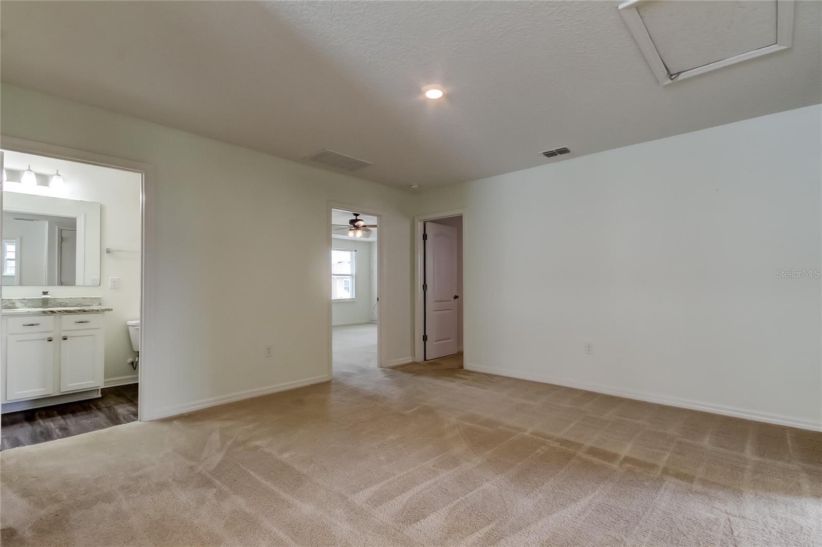This home qualifies for a $0 down-payment & no PMI conventional loan (not just for 1st time home buyers & no income limit!!). Competitive interest rate! Qualified buyers ask for details! Welcome to Lagoon Living in Epperson! This 6-bedroom + loft home offers space, style, and upgrades throughout. Fresh exterior paint, widened paver driveway, upgraded builder elevation, and tropical landscaping add great curb appeal. Inside, the open kitchen overlooks the dining and living areas and features 42" white cabinets with upgraded hardware, granite countertops, stainless steel appliances, custom backsplash, wood pantry shelving, and water filtration/softener with reverse osmosis. The interior is freshly painted with crown molding, accent walls, and luxury vinyl plank flooring. Flexible front room works as an office, playroom, or formal dining/living space, and there’s a downstairs bedroom with full bath—perfect for guests or multi-generational living. Upstairs you’ll find 5 bedrooms, all with custom closets, plus a loft. The owner’s suite has a tray ceiling, barn door, walk-in closet, and spa-style bath with dual vanities, soaking tub, and walk-in shower. Bathrooms have marble countertops. Outdoor living includes a covered lanai, extended paver patio, and spacious fenced yard. Added features: 50-amp power inlet box, transfer switch, and upgraded garage storage. Located in Epperson South, home of the nation’s first Crystal Lagoon with kayaking, paddle boarding, sandy beaches, live music, swim-up bar, dog parks, golf cart paths, and resident-only events. Close to great schools, shopping, dining, and just 35 minutes to downtown Tampa.