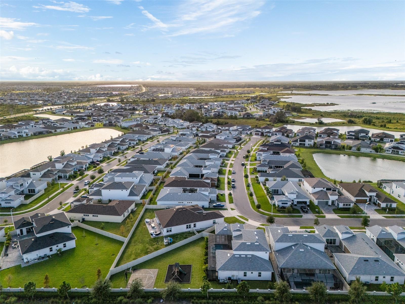 Experience luxury living in this expansive six-bedroom, 4.5-bath estate on an oversized lot in the sought-after Robin’s Cove section of the Epperson Lagoon community. This home is centered around a stunning pool with courtyard-style floor plan, providing a private oasis with seamless indoor and outdoor living space. The central pool features a heated spa, LED lighting and pencil jet fountain accents, while the detached pool house guest suite offers unparalleled flexibility for visitors, or a private home office. Go inside to discover an upgraded interior, defined by tall ceilings and elegant finishes, including crown molding, shiplap accent walls in key areas and tile accent walls in all baths. Entertainment is effortless with a striking feature wall with custom shelving, integrated surround sound speakers in the family room, primary suite and loft, along with a floating tray ceiling in the kitchen accompanied by accent lighting. Organized storage is plentiful with designated mudroom, shelving in the pantry, and custom built-out closets in every bedroom. Comfort is assured with motorized roller shades in primary rooms, and either shutters or custom drapery can be found on all windows. Outside, the property is a private resort featuring lush tropical landscaping, a massive fenced-in yard, and ample lanai space equipped with ceiling fans, built-in speakers and a TV connection for ultimate outdoor enjoyment. The entertainment continues with an included playground and a basketball court, while the garage features stylish epoxy flooring. Other features of this home include dual zoned air-conditioning systems, soffit lighting around the entire home’s exterior, along with tinted windows and sliders. This exceptional property is in the famous Epperson Ranch Crystal Lagoon neighborhood, which is comprised of 7.5 acres of clear blue water including sandy beaches, swim-up bar, and neighborhood features showcasing UltraFi, a community-wide internet and cable experience, Streetleaf solar streetlights, playgrounds, golf cart paths, miles of trails, green spaces and dog parks. This growing area is home to the sought-after Innovation Preparatory Academy and The Kirkland Ranch Academy of Innovation schools, plus a new Publix, Starbucks and Chick-fil-A, while also conveniently minutes from Interstate 75 providing ample shopping and dining options at Tampa Premium Outlets, Shops at Wiregrass, and The Grove & KRATE.