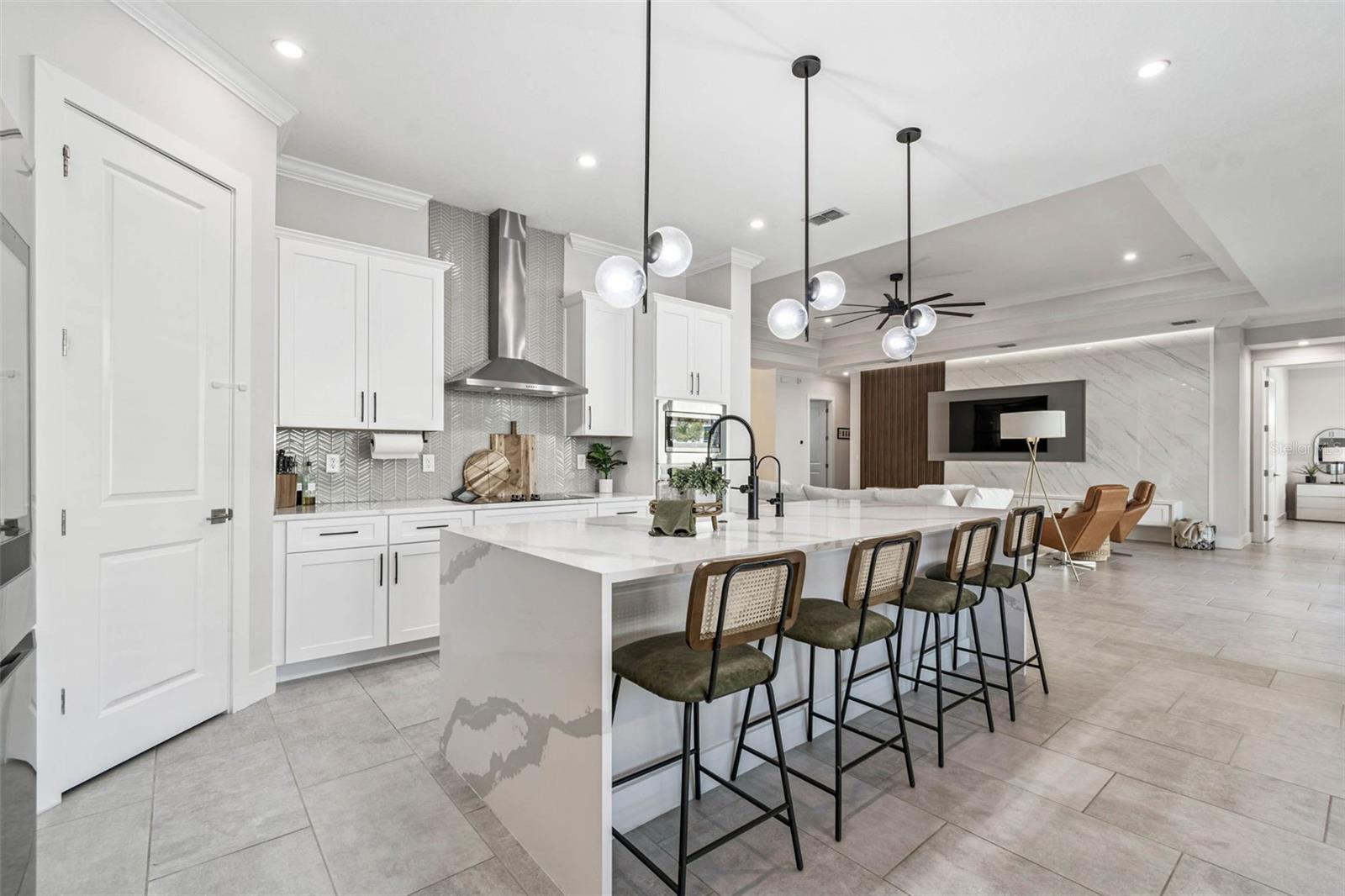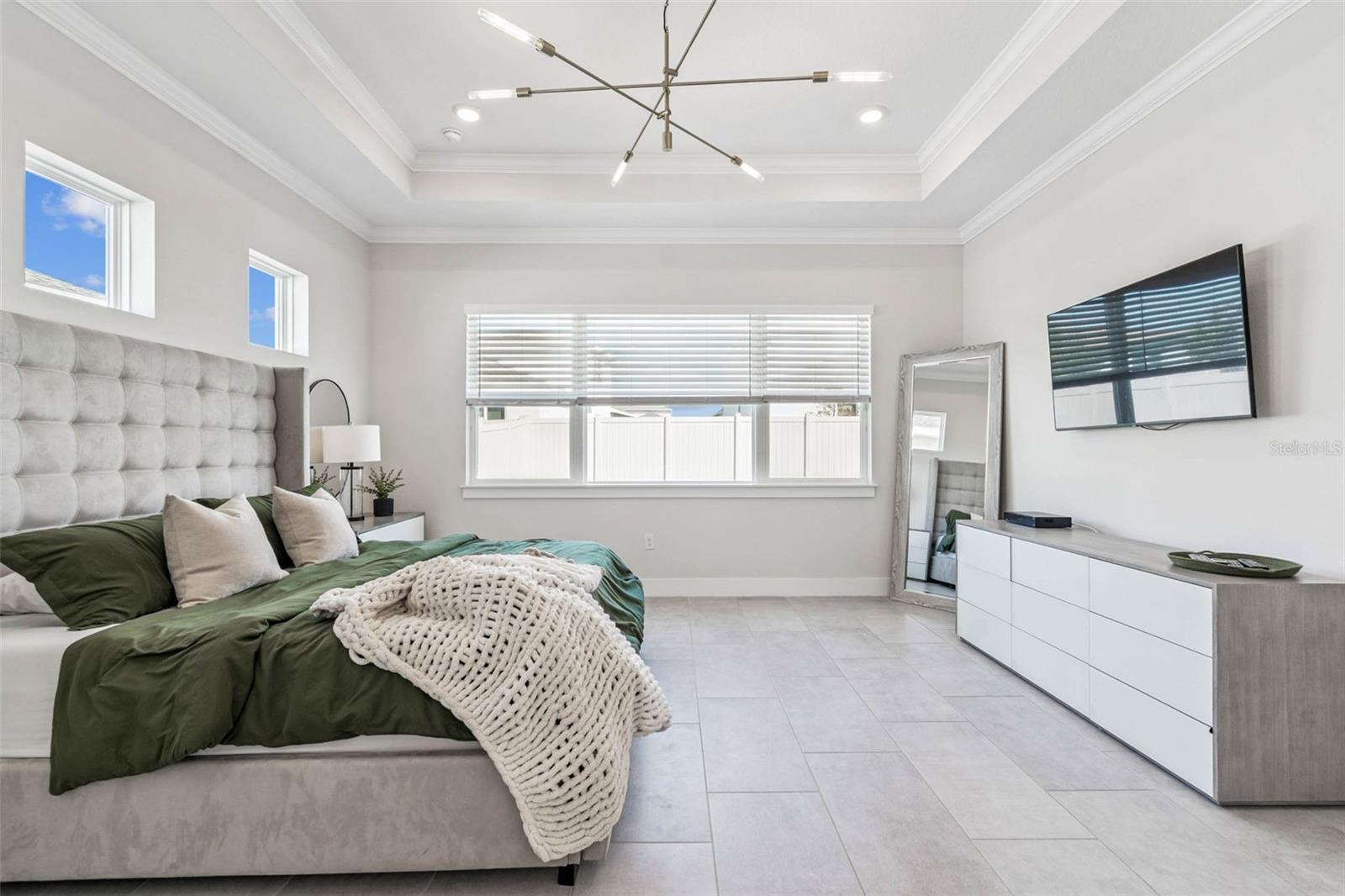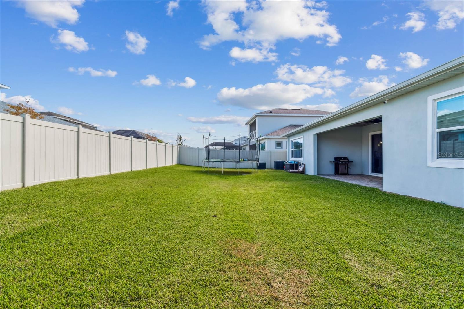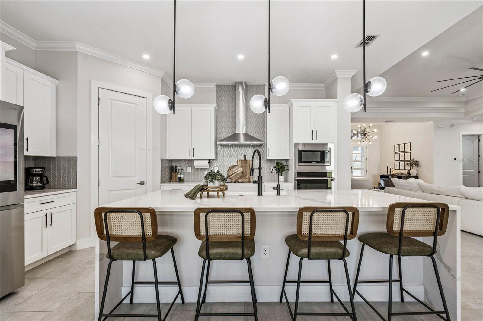Welcome to 9028 Ivy Stark Blvd, where luxury meets lifestyle in Wesley Chapel’s Epperson community. Built in 2021, this modern 4-bedroom, 3.5-bath home spans 3,214 sq. ft. on a spacious 0.23-acre lot. Step inside to soaring ceilings and an open, airy floor plan. The living room features a custom accent wall, flowing into a chef’s kitchen with quartz countertops, premium stainless steel appliances, and an oversized island made for entertaining. Work from home in style with a custom-built office space. The primary suite is a true retreat featuring dual walk-in closets, a soaking tub, and a sleek walk-in shower. One guest room has a private en-suite, while two others share a full bath. The laundry room connects to a two-car garage, while a separate single garage is currently used as a home gym and private golf cart space. Step outside to your fenced backyard oasis, a covered patio wrapped in wood paneling from wall to ceiling, perfect for dining or relaxing in the Florida sunshine. The spacious yard offers plenty of room to design your dream outdoor living space or add a custom pool. From your front door, enjoy lake views and nightly sunsets, with a playground just across the street. Live where others vacation, steps from the MetroLagoon, dog parks, trails, playgrounds, and top-rated schools. Enjoy resort-style pools, endless recreation, and the convenience of riding your golf cart to Publix. This is more than a home, it’s a lifestyle. Come experience 9028 Ivy Stark Blvd today!