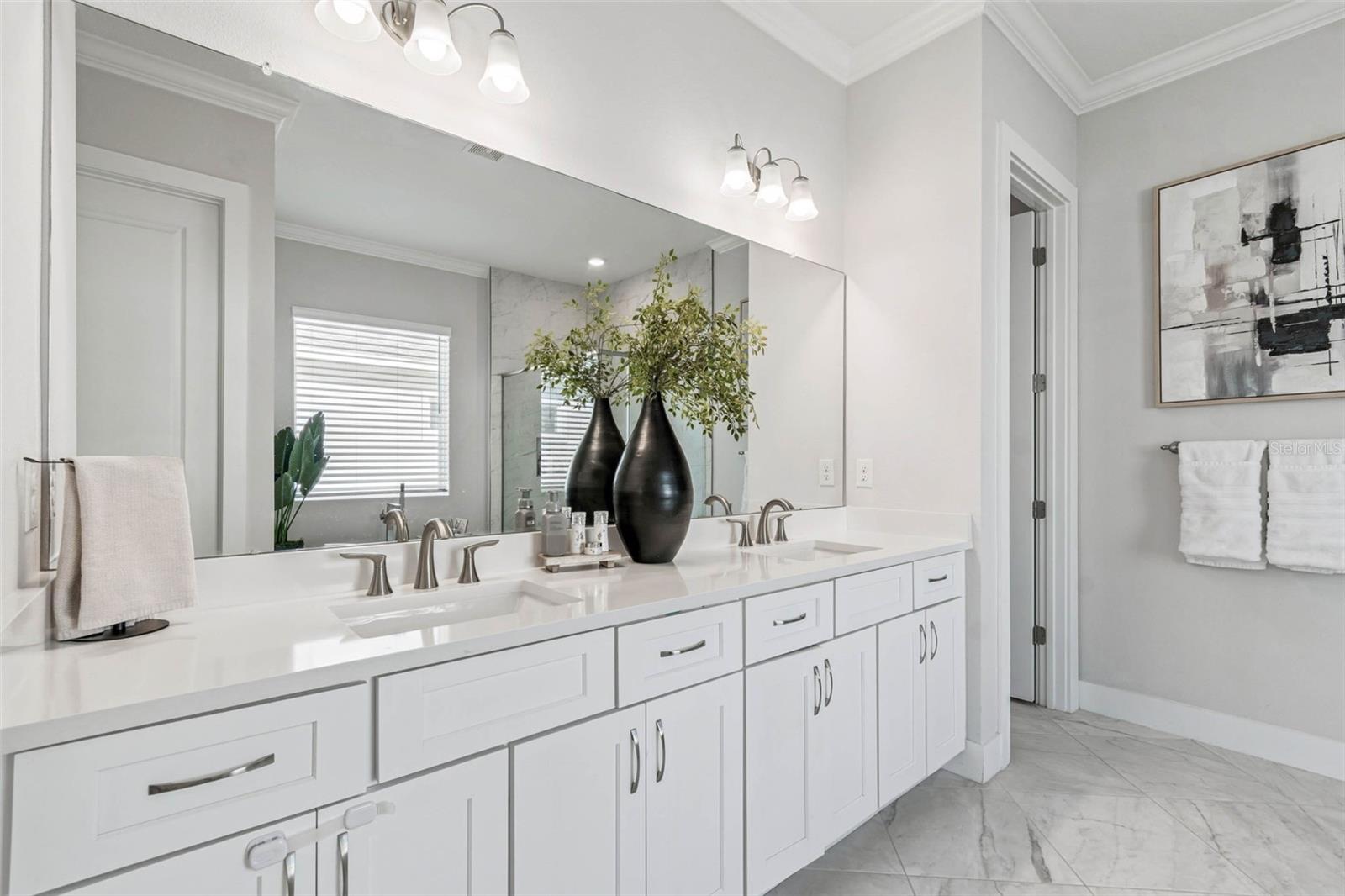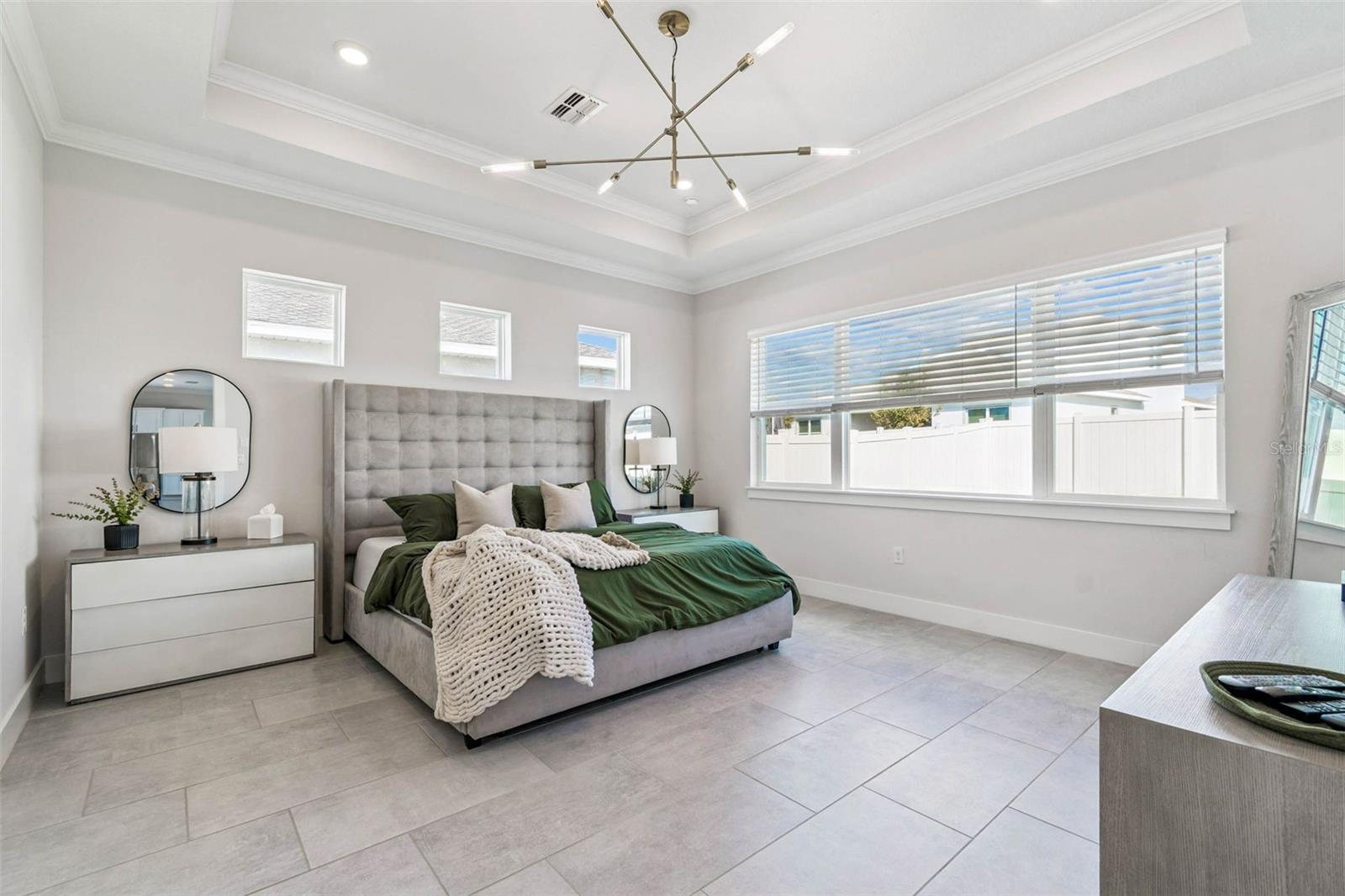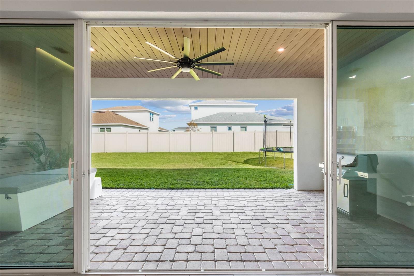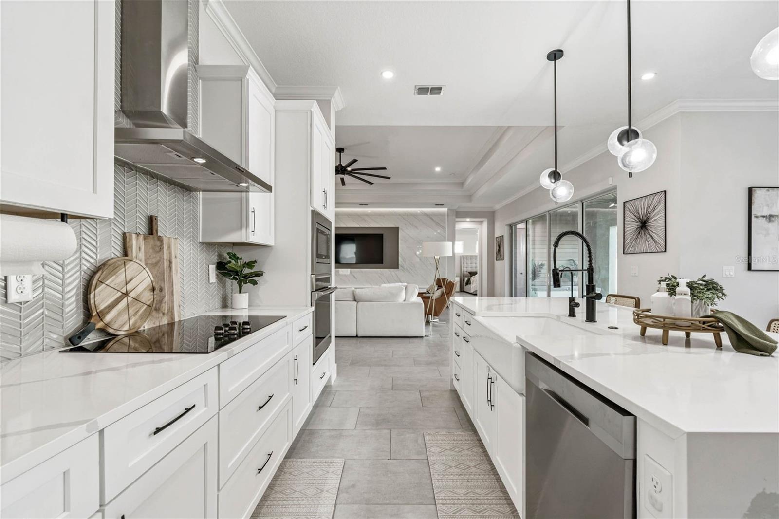 Welcome to 9028 Ivy Stark Blvd, where luxury meets lifestyle in Wesley Chapel’s Epperson community. Built in 2021, this modern 4-bedroom, 3.5-bath home spans 3,214 sq. ft. on a spacious 0.23-acre lot. Step inside to soaring ceilings and an open, airy floor plan. The living room features a custom accent wall, flowing into a chef’s kitchen with quartz countertops, premium stainless steel appliances, and an oversized island made for entertaining. Work from home in style with a custom-built office space. The primary suite is a true retreat featuring dual walk-in closets, a soaking tub, and a sleek walk-in shower. One guest room has a private en-suite, while two others share a full bath. The laundry room connects to a two-car garage, while a separate single garage is currently used as a home gym and private golf cart space. Step outside to your fenced backyard oasis, a covered patio wrapped in wood paneling from wall to ceiling, perfect for dining or relaxing in the Florida sunshine. The spacious yard offers plenty of room to design your dream outdoor living space or add a custom pool. From your front door, enjoy lake views and nightly sunsets, with a playground just across the street. Live where others vacation, steps from the MetroLagoon, dog parks, trails, playgrounds, and top-rated schools. Enjoy resort-style pools, endless recreation, and the convenience of riding your golf cart to Publix. This is more than a home, it’s a lifestyle. Come experience 9028 Ivy Stark Blvd today!
